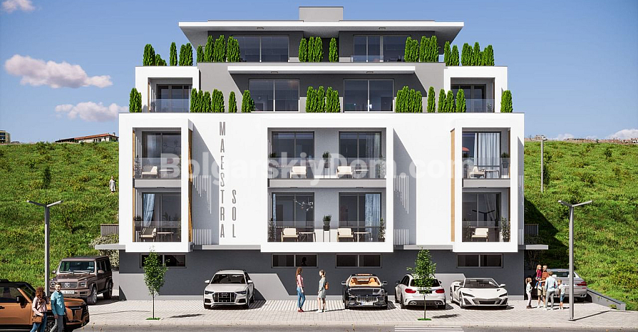 Комплекс Маэстра Сол имеет 21 парковочное место. Это высококлассное строительство с бутик-дизайном и качественными материалами. Апартаменты сдаются в соответствии с болгарскими строительными стандартами, на штукатурке и стяжке.