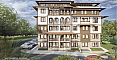 Это современное здание с лифтом, круглосуточной охраной и подземным паркингом. Ключевая особенность – отсутствие бассейна, что ориентирует комплекс на постоянное проживание. Апартаменты сдаются с отделкой под ключ. Ориентировочный срок сдачи — 2026 г.