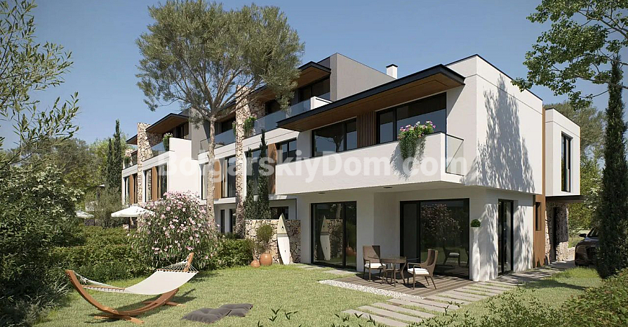 Комплекс состоит из шестиэтажного здания и частных домов на закрытой охраняемой территории с бассейном, парковкой и ландшафтными садами. Апартаменты и дома комплекса сдаются с отделкой под ключ. Начало строительства – Декабрь 2025 г. Завершение – 4 квартал 2027 г.