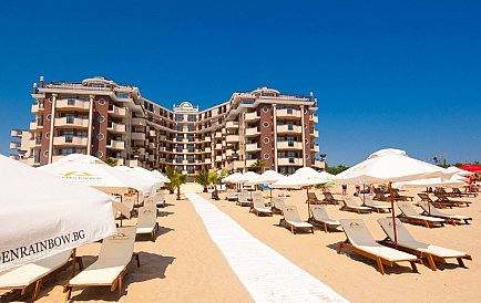Год постройки: 2009Golden Rainbow — элитный комплекс в центре Солнечного Берега, в 50 метрах от пляжа. Комплекс оборудован большим бассейном, пул-баром, джакузи, рестораном, супермаркетом, детской площадкой с аниматором и многим другим.