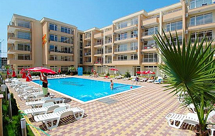 Год постройки: 2006Sunny Day 3 это живописный и уютный комплекс в центре курорта Солнечный Берег, огромная зеленная территория 14000 м2, открытый большой бассейн.