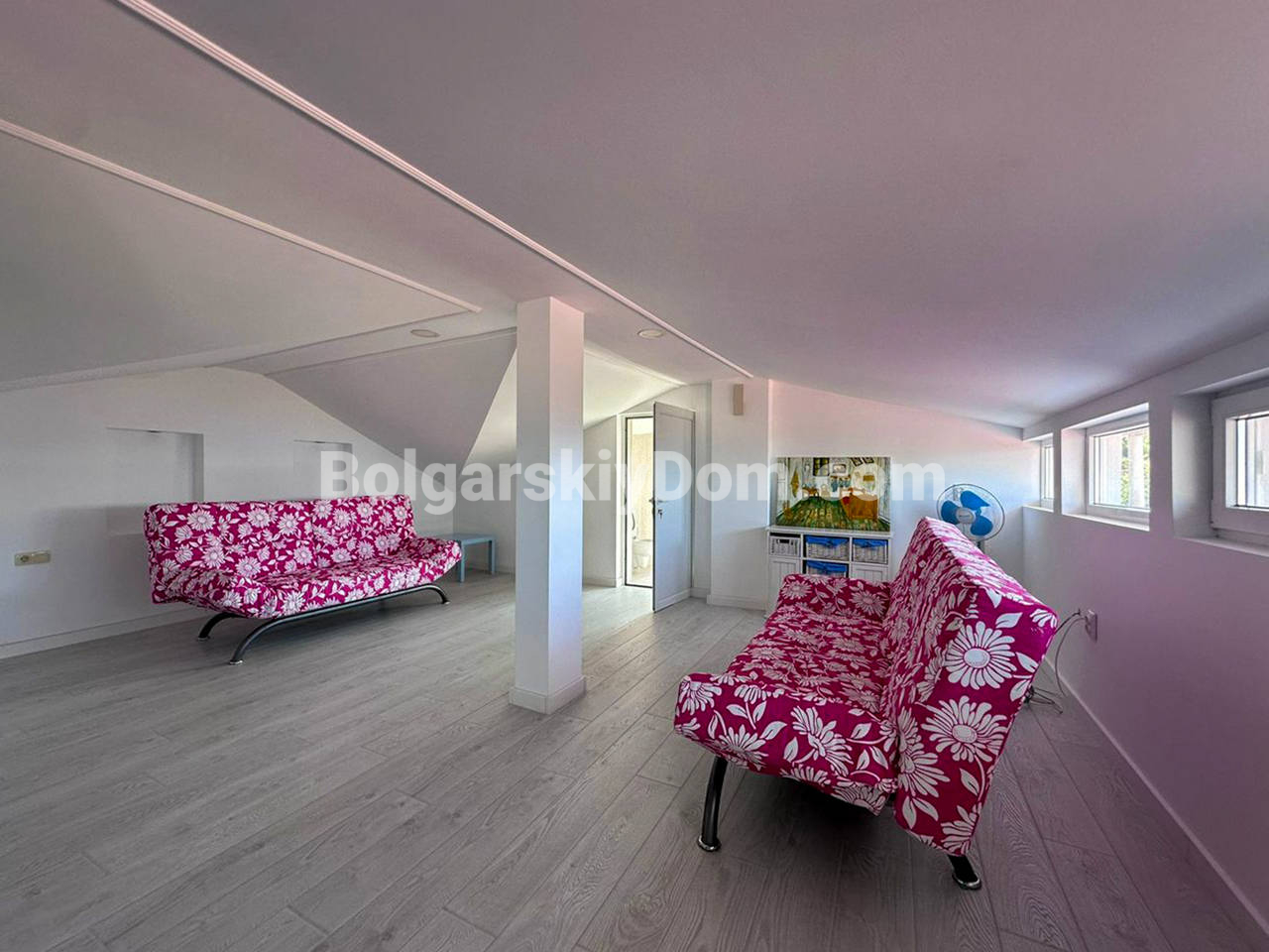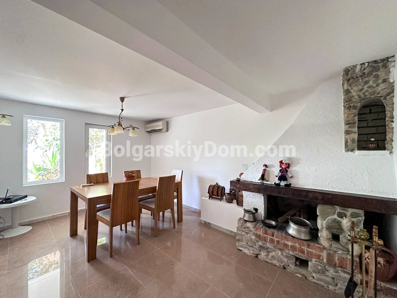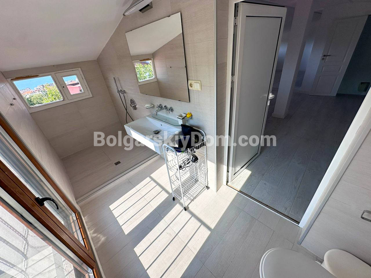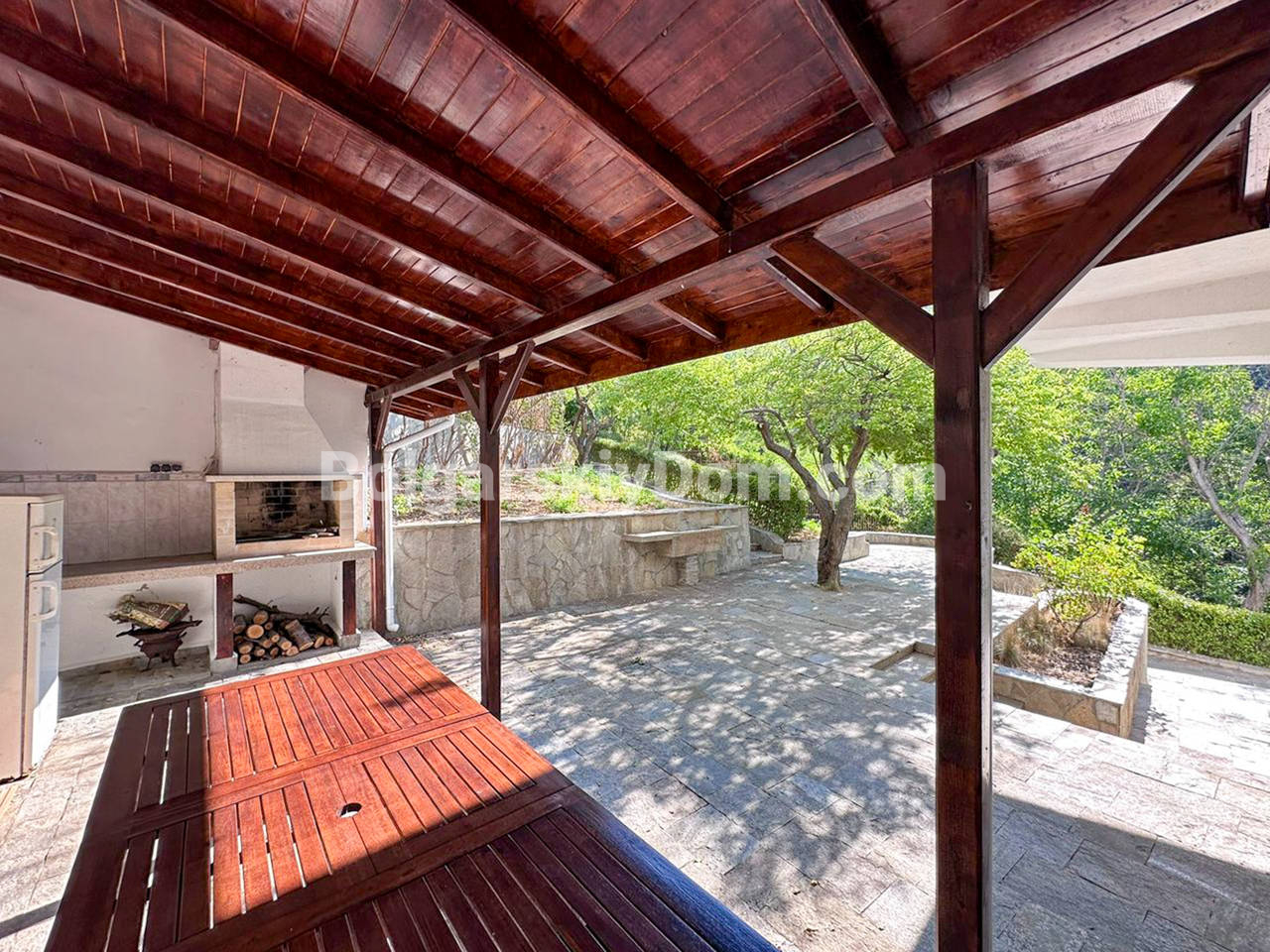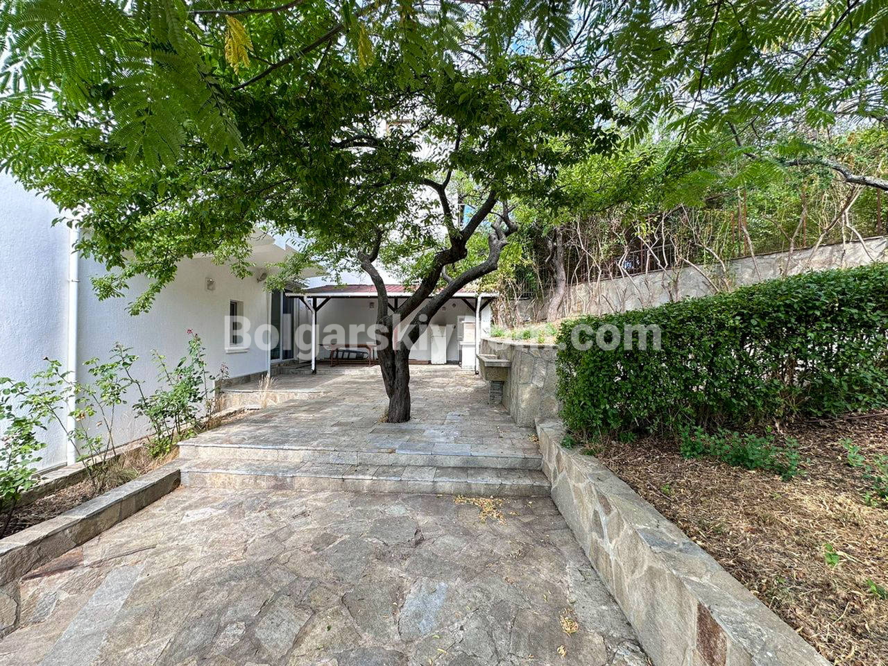 Планировка: Первый этаж (полуцоколь): Просторная прихожая, стильная комната с камином в староболгарском стиле — идеальное место для уютных вечеров. Также предусмотрена прачечная с душем — удобно и практично. Второй этаж: Две светлые спальни, уютная гостиная с зонированием (зона отдыха и столовая), два санузла и выход во внутренний двор с летней кухней и мангалом — мечта для любителей готовить на свежем воздухе. Третий этаж: Огромный многофункциональный зал с кухней, зоной отдыха и столовой. Дополнительная спальня и санузел. Из окна кухни — впечатляющий вид на горы. Четвёртый (мансардный) этаж: Г-образная просторная комната — отличное решение для детской, кабинета или гостевой, а также санузел с душем. Участок: Ухоженный двор с небольшим ландшафтным дизайном, много зелени, обзорная площадка с морским панорамным видом. На заднем дворе - вышеупомянутая летняя кухня. Имеются также два паркоместа: крытое и открытое.