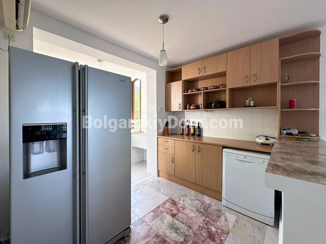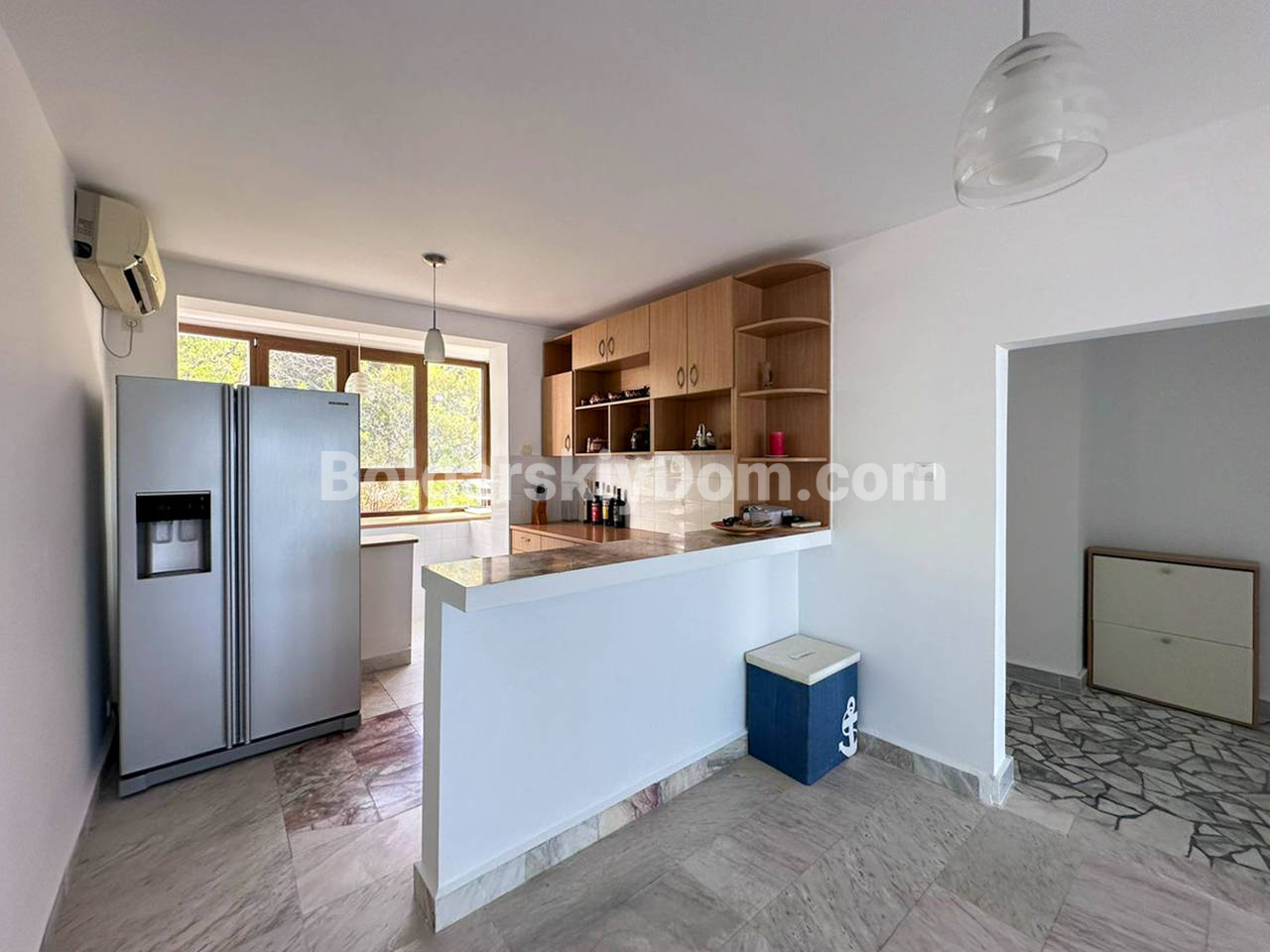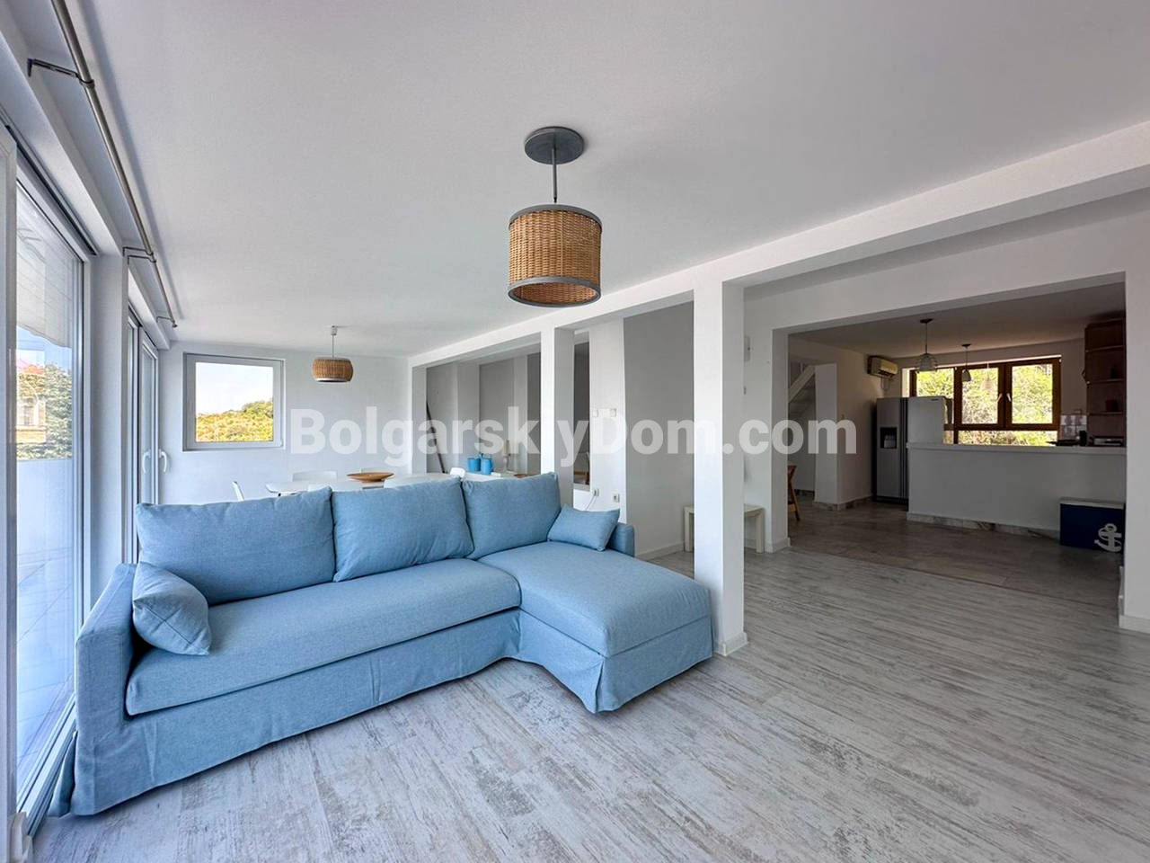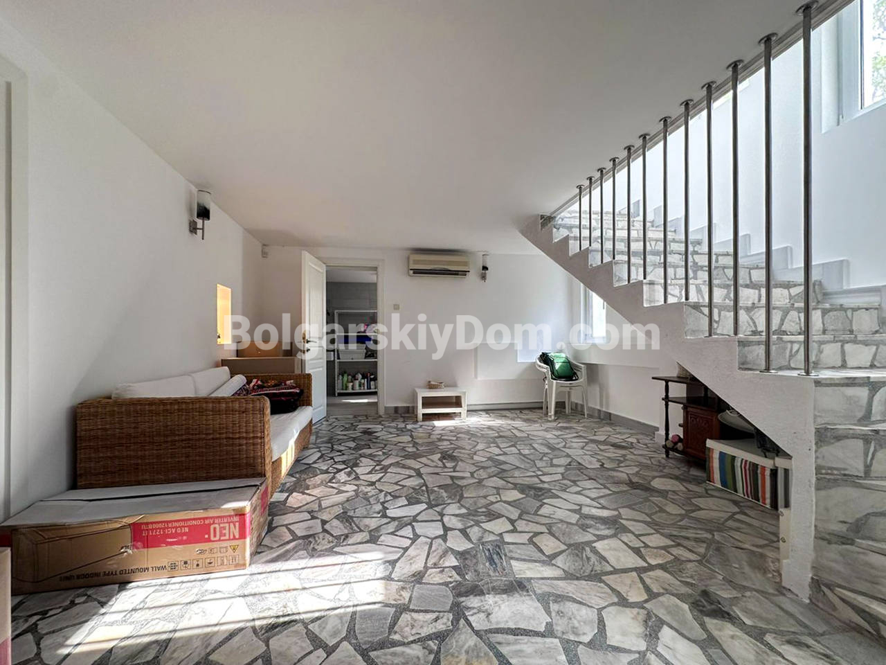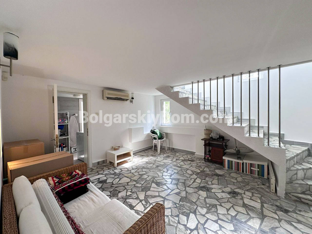 Планировка: Первый этаж (полуцоколь): Просторная прихожая, стильная комната с камином в староболгарском стиле — идеальное место для уютных вечеров. Также предусмотрена прачечная с душем — удобно и практично. Второй этаж: Две светлые спальни, уютная гостиная с зонированием (зона отдыха и столовая), два санузла и выход во внутренний двор с летней кухней и мангалом — мечта для любителей готовить на свежем воздухе. Третий этаж: Огромный многофункциональный зал с кухней, зоной отдыха и столовой. Дополнительная спальня и санузел. Из окна кухни — впечатляющий вид на горы. Четвёртый (мансардный) этаж: Г-образная просторная комната — отличное решение для детской, кабинета или гостевой, а также санузел с душем. Участок: Ухоженный двор с небольшим ландшафтным дизайном, много зелени, обзорная площадка с морским панорамным видом. На заднем дворе - вышеупомянутая летняя кухня. Имеются также два паркоместа: крытое и открытое.