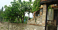 оградил участок по границе с дорогой) с фруктовыми деревьями, виноградником