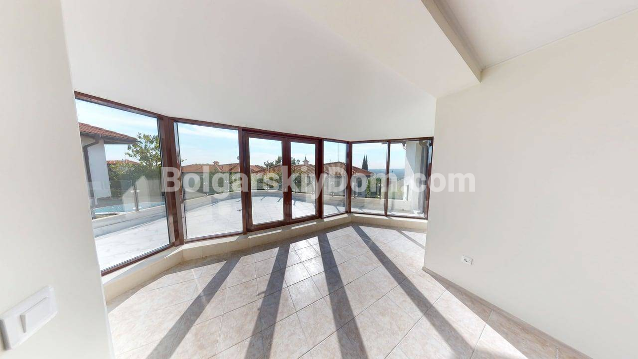 Новинка в категории автономной недвижимости! Команда Болгарского Дома предлагает к покупке роскошный двухэтажный дом площадью 225 кв.м. в поселке Кошарица, комплекс Бэй Вью Виллас. Дом находится в отличном состоянии и частично меблирован (кухня и санузлы готовы к использованию). Планировка включает просторные жилые зоны, четыре ванные комнаты и большую солнечную террасу. Преимущество этого лота - собственный благоустроенный двор с газоном, что является очень важной частью уединения и комфорта загородной жизни. Это готовое решение для постоянного места жительства.
