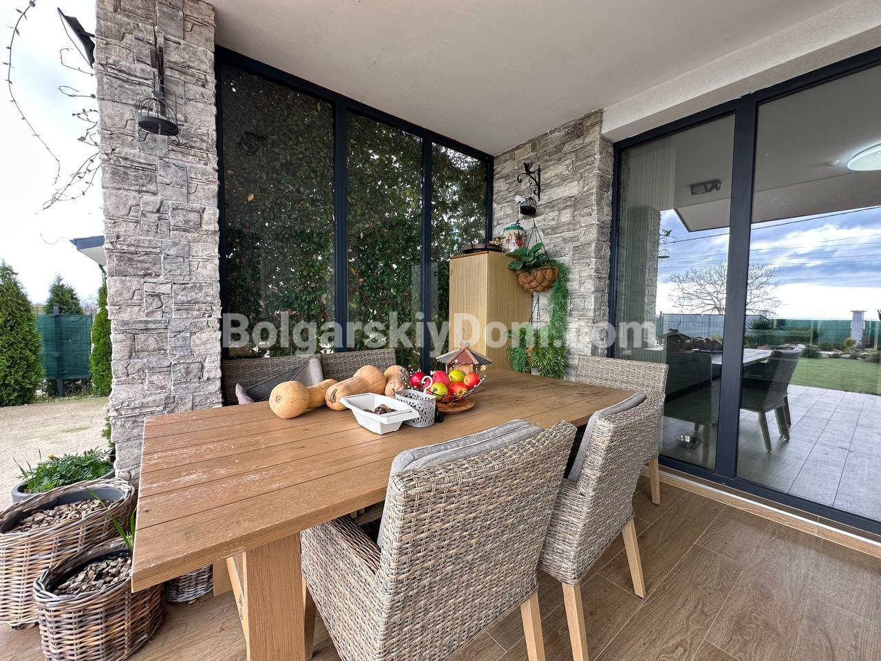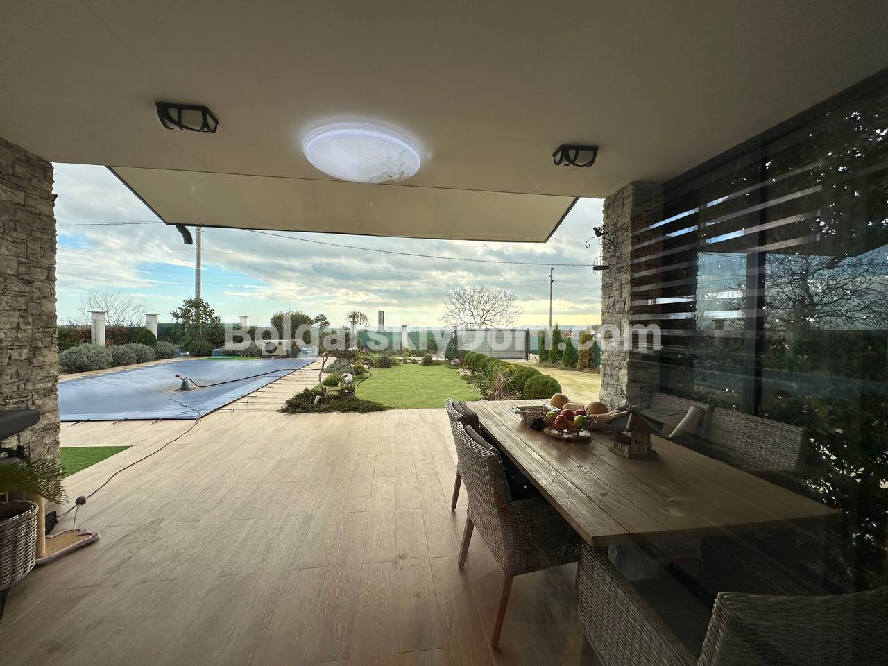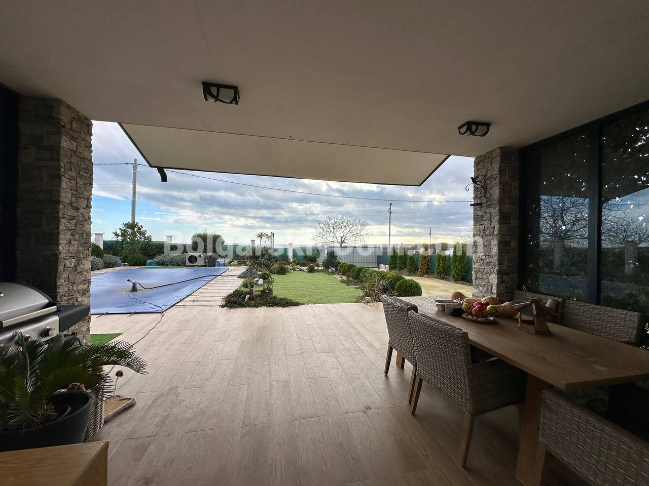 Новинка в каталоге автономной недвижимости! Современный дом 341 кв.м. с подогреваемым бассейном! Агентство Болгарский Дом предлагает в продажу недавно построенный (2020 г.) особняк в поселке Близнаци под Варной. Этот дом площадью 341 кв.м. про качество без компромиссов: впечатляющий дизайн и премиальные материалы, включая встроенное триплексное остекление. Комфорт в холодное время года обеспечивают теплые полы в гостиной и кухне, а также современный камин. В просторном дворе расположен бассейн с подогревом и энергосберегающим насосом, также есть навесо на два автомобиля.