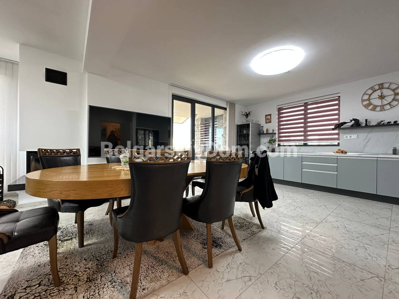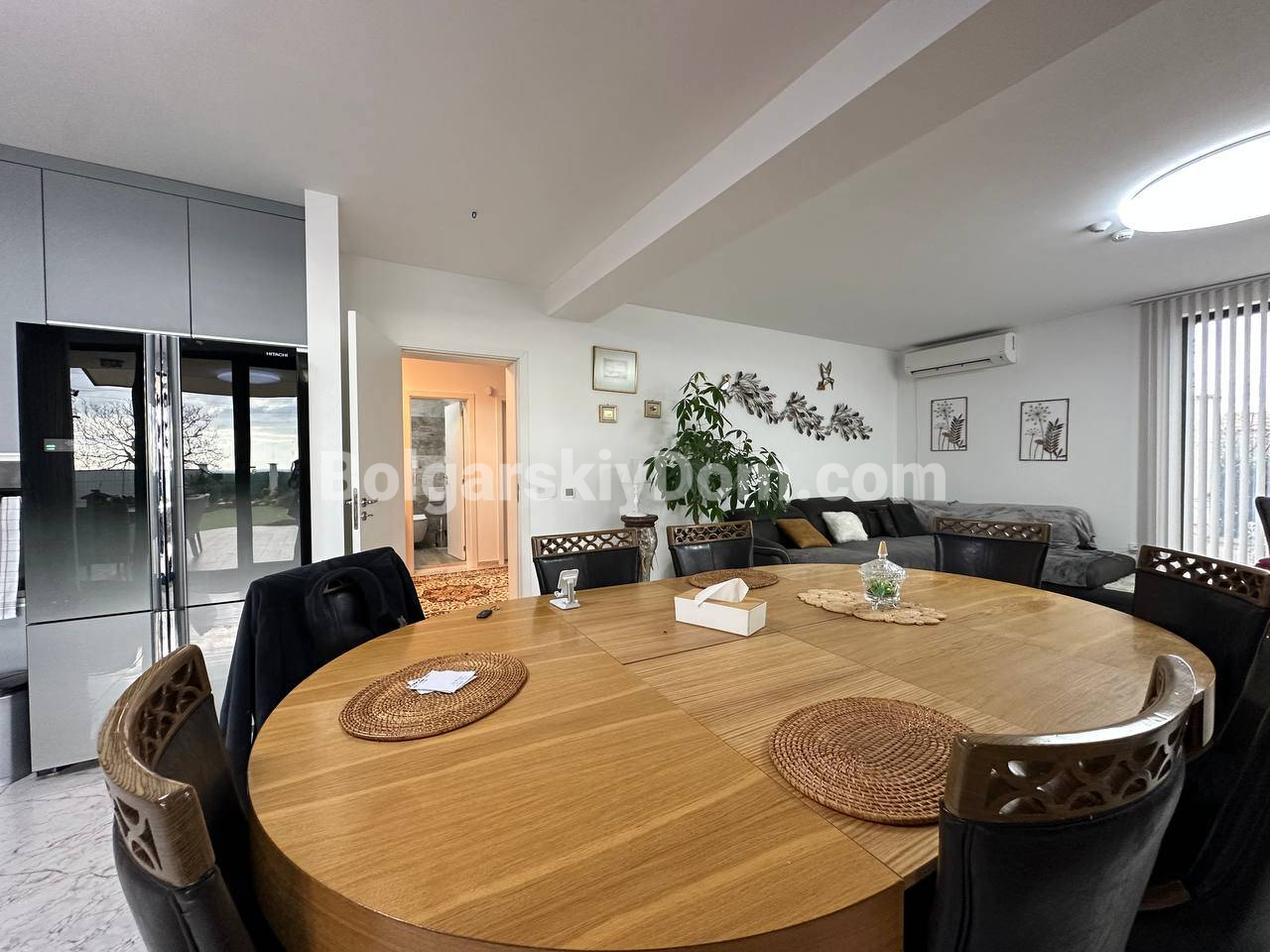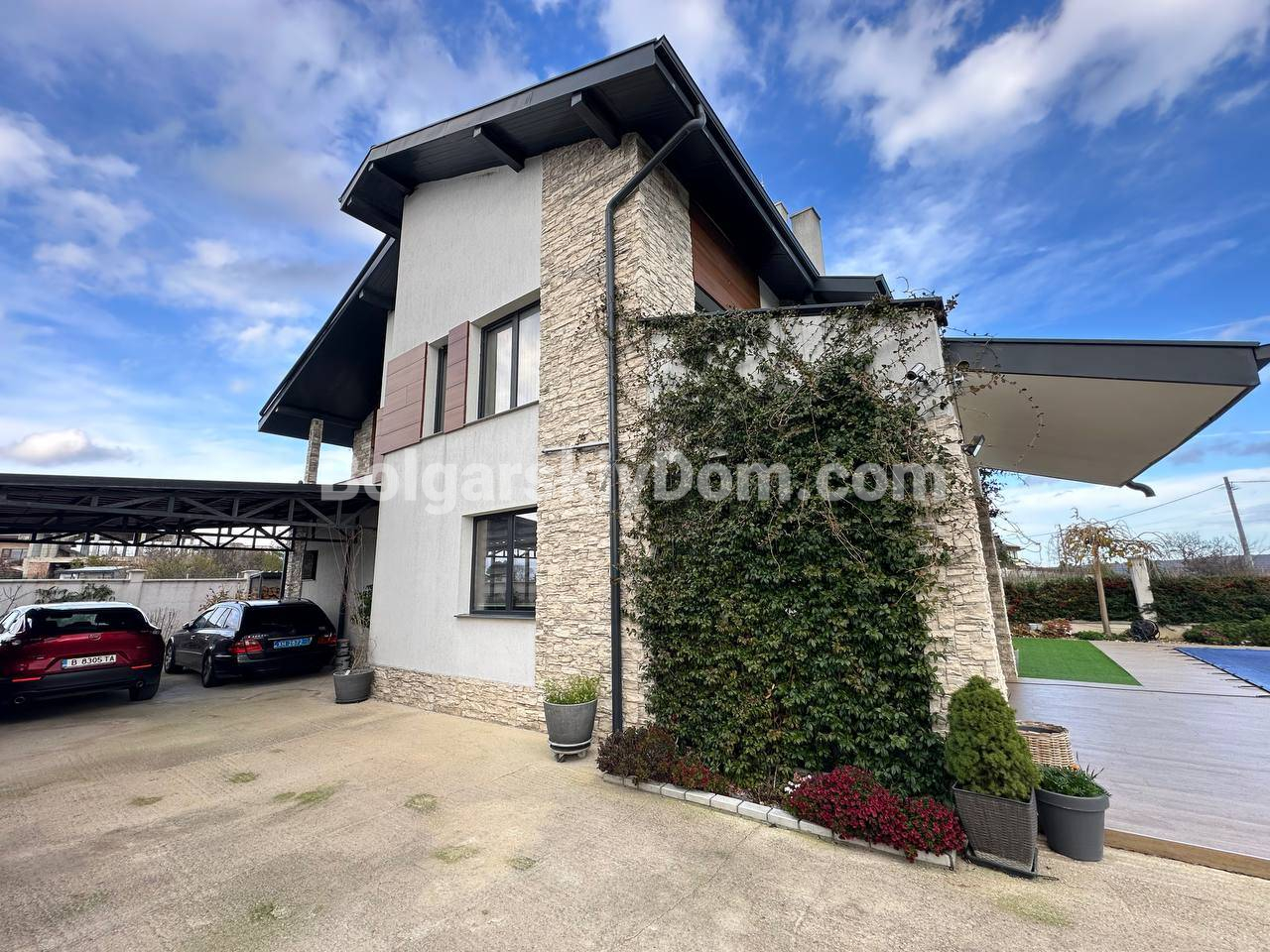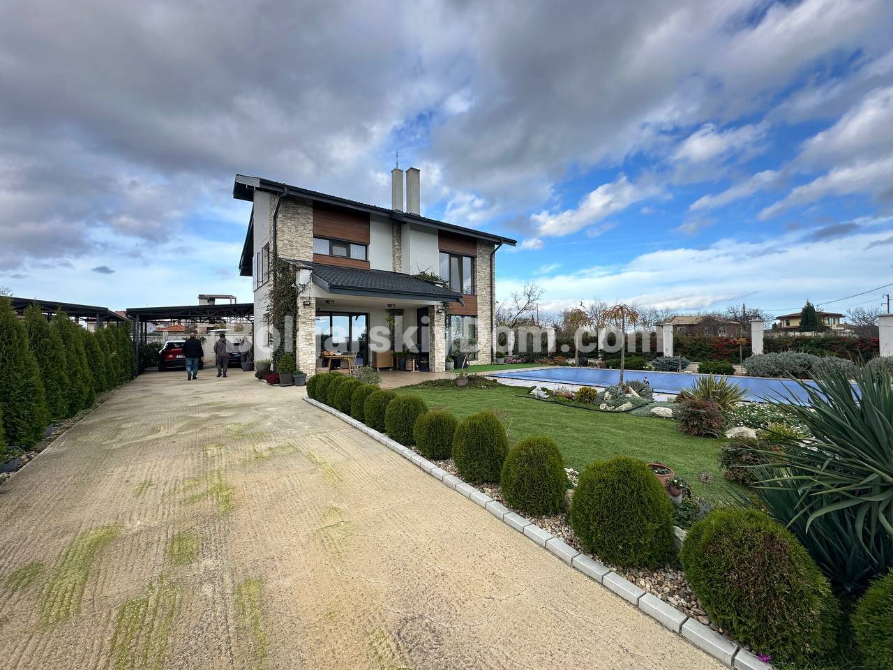 Новинка в каталоге автономной недвижимости! Современный дом 341 кв.м. с подогреваемым бассейном! Агентство Болгарский Дом предлагает в продажу недавно построенный (2020 г.) особняк в поселке Близнаци под Варной. Этот дом площадью 341 кв.м. про качество без компромиссов: впечатляющий дизайн и премиальные материалы, включая встроенное триплексное остекление. Комфорт в холодное время года обеспечивают теплые полы в гостиной и кухне, а также современный камин. В просторном дворе расположен бассейн с подогревом и энергосберегающим насосом, также есть навесо на два автомобиля.