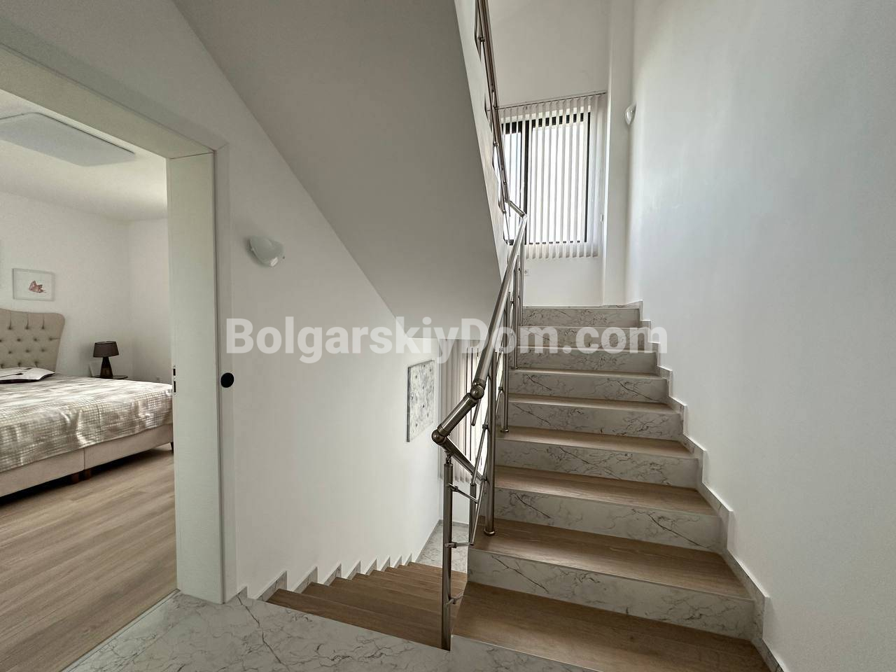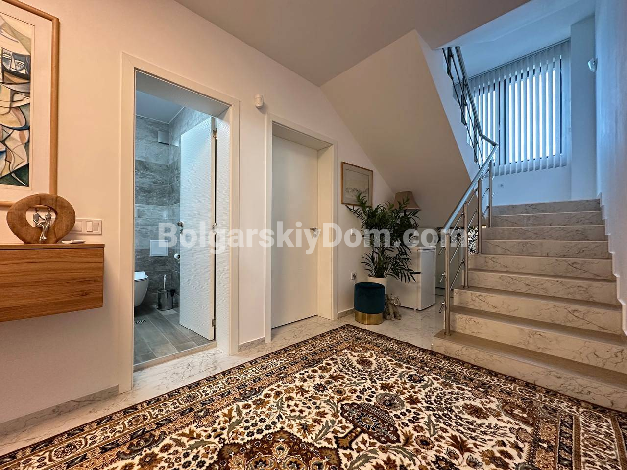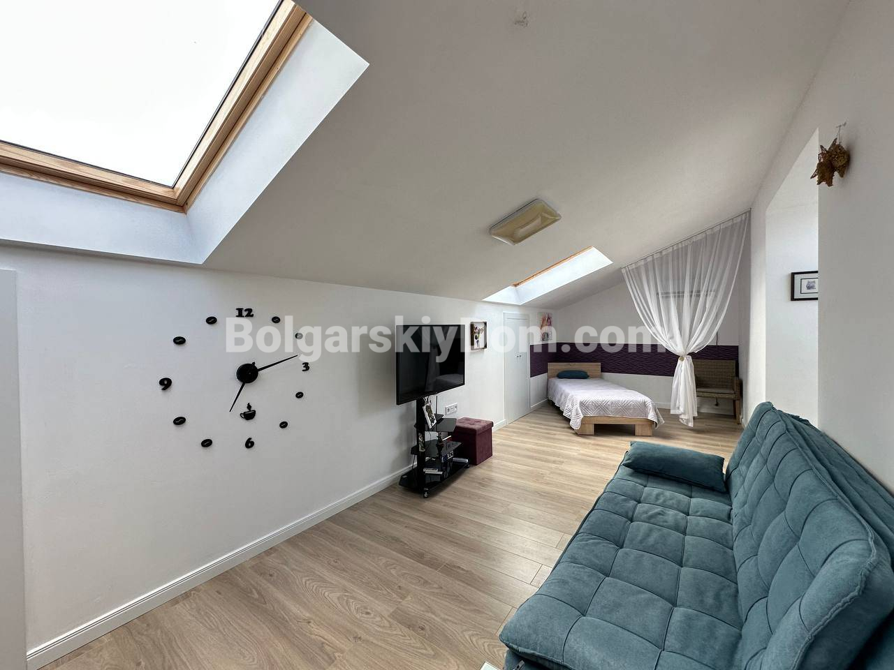Планировка особняка включает 7 комнат, 5 спален и 4 ванные комнаты, распределенные по трем функциональным этажам, включая многофункциональное пространство на верхнем уровне и просторную веранду с видом на бассейн и море. Поселок Близнаци это про идеальный баланс: уникальное спокойствие и чистая природа сочетаются с быстрым доступом к Варне. В шаговой доступности есть магазины и кафе, а вся необходимая коммерческая и медицинская инфраструктура находится в соседнем поселке Приселци (5 минут). Обращаем внимание на доступный прайс и ждем вашего звонка!