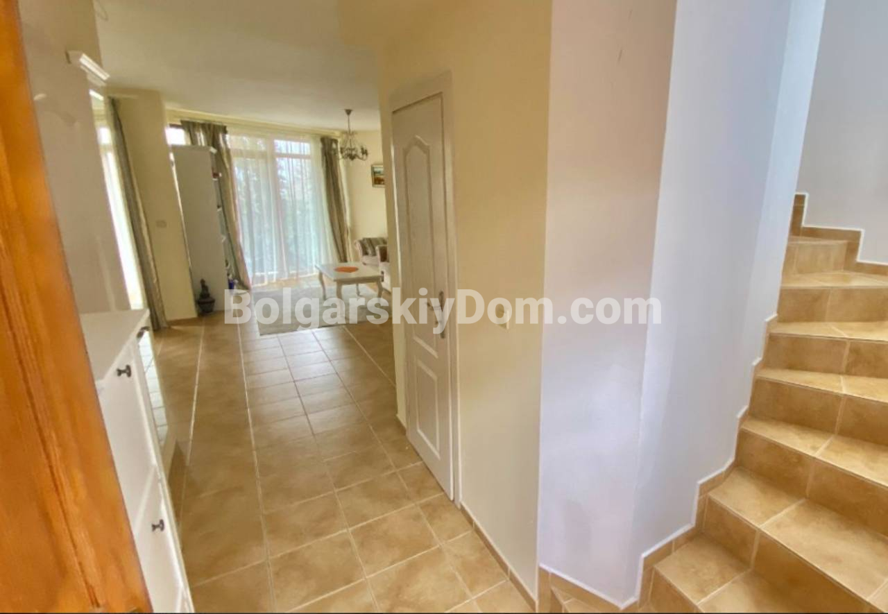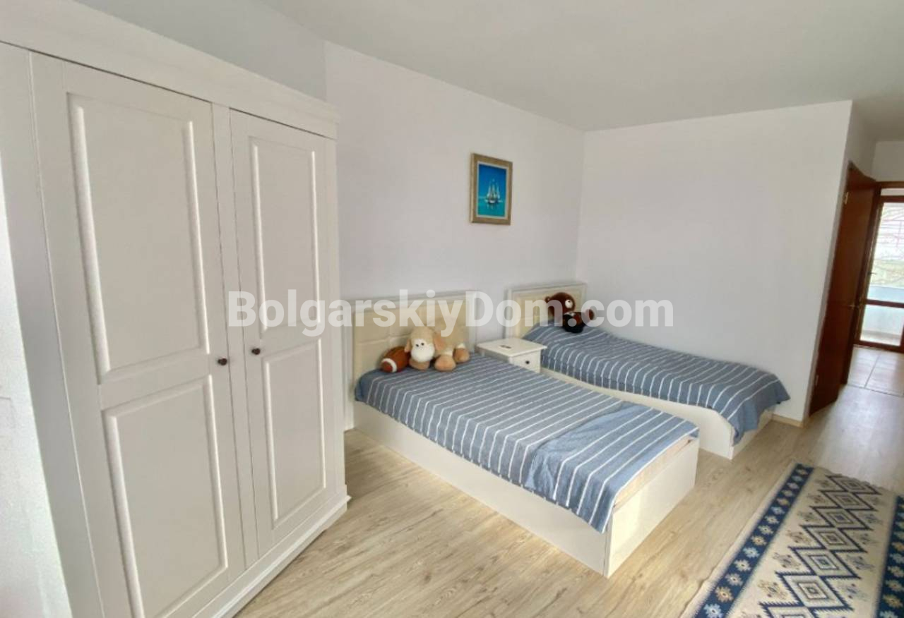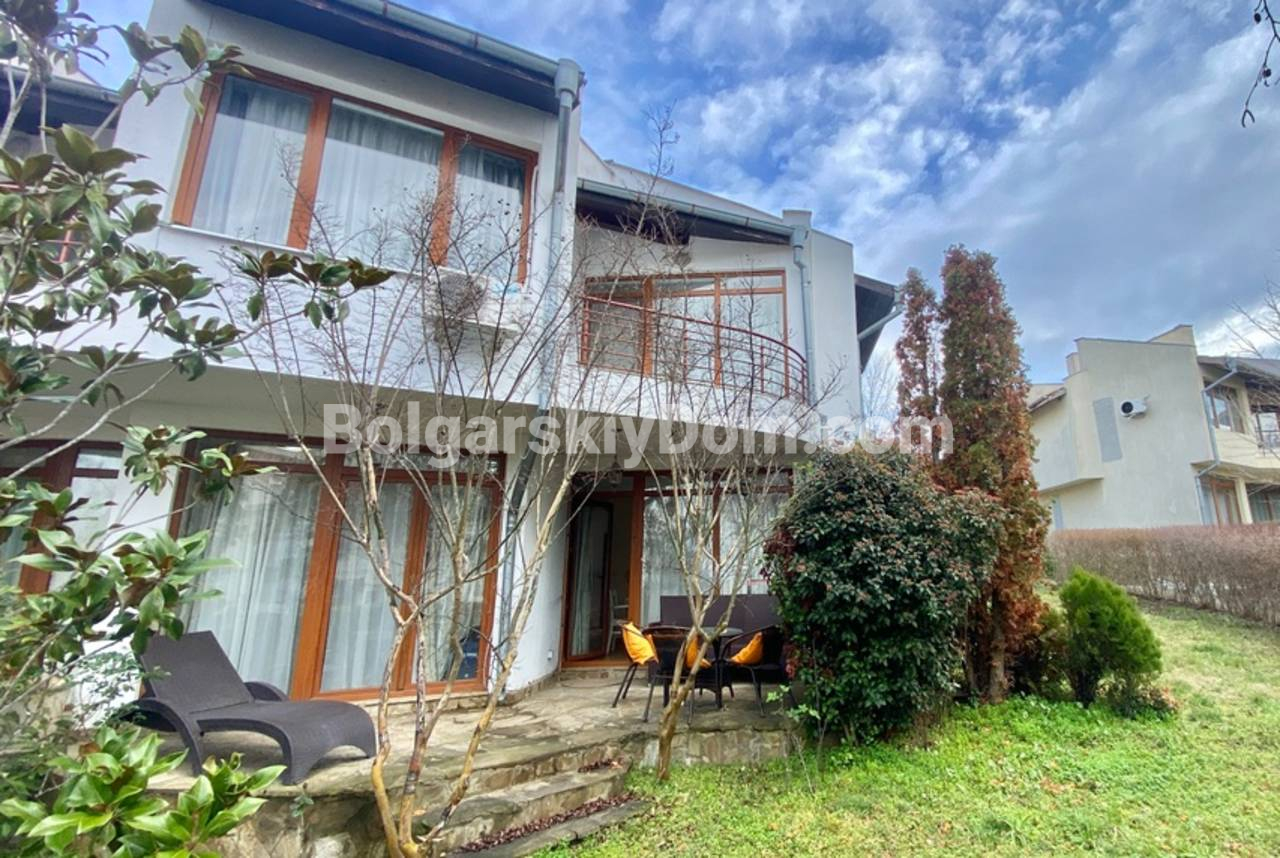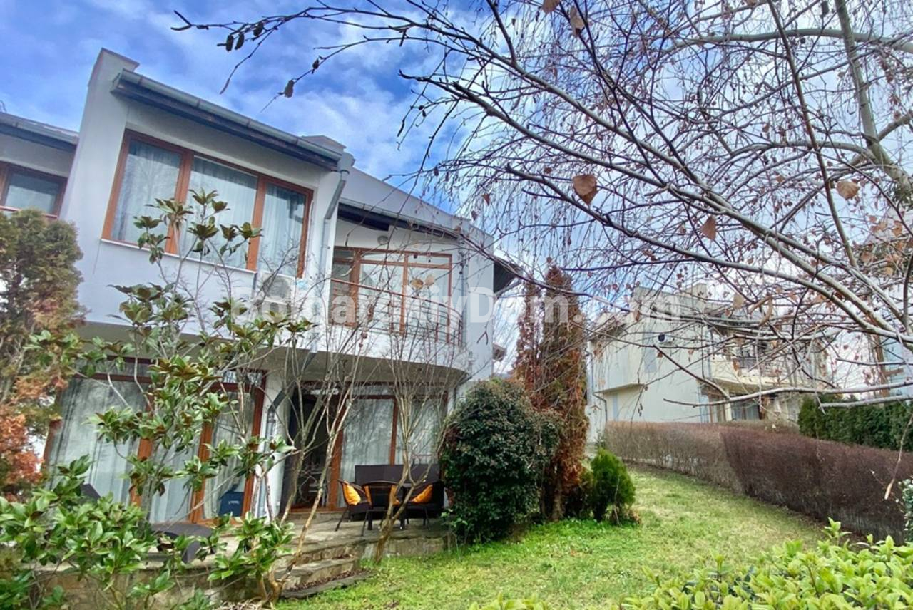 В каталоге появилась двухэтажная вилла в престижном комплексе Алмонд Хилл Виллас в Кошарице - просторный дом с хорошей ориентацией вдали от туристической суеты. Общая площадь 140 кв.м., угловое расположение позволяет использовать участок максимально эффективно. На первом этаже - просторная гостиная, кухонная зона, столовая и оборудованный санузел. Вдоль всего первого этажа тянется открытая терраса с видом на озелененный двор комплекса - розы, цветники, березы, ели и лаванду. Второй этаж - два отдельных спальных помещения, каждое со своей ванной и туалетом, две дополнительные террасы. Вокруг виллы зеленая зона отдыха с мебелью, качелями и зоной барбекю. Дом продается полностью обставлен и оснащен техникой, кондиционеры во всех комнатах. Южная ориентация окон. Построена в 2010 году, в 2023-м обновлён фасад. Акт 16.