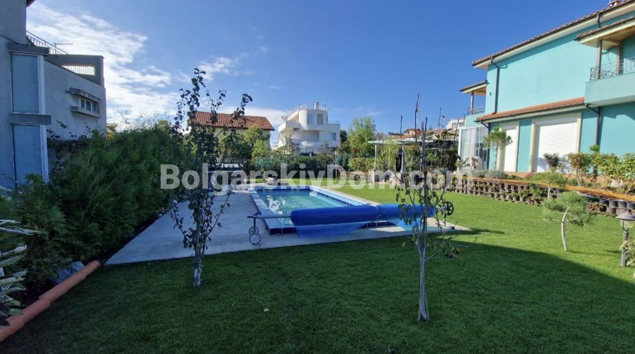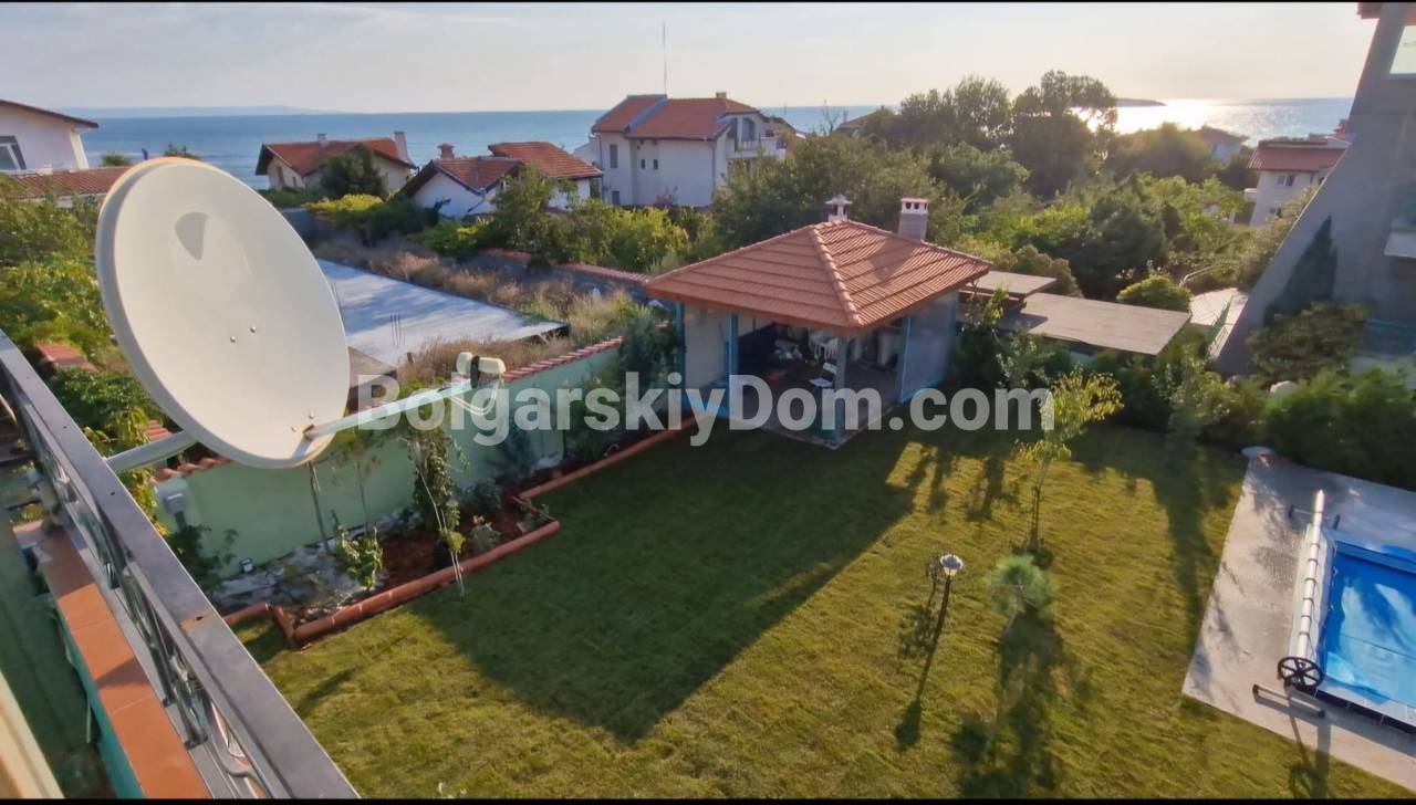 Встречайте уникальный объект в продаже! Автономный дом на второй линии моря в Черноморце - жилье с собственным подогреваемым бассейном и видом на два залива! Объект площадью 228 кв. м построен в 2022 году, имеет Акт 16 и подключен к бытовым тарифам на свет. На участке 850 кв. м разбит сад с автоматическим поливом, обустроена летняя кухня с барбекю площадью 30 кв. м. Инженерные системы здания: работает новая тепловая помпа Тошиба, солнечные панели для горячей воды и личная скважина с пятитонной цистерной. Внутренняя отделка выполнена из натурального дерева, в комнатах уложен массивный паркет. Первый этаж включает гостиную, отдельную столовую, кухню, прачечную и склад. Второй уровень отведен под три спальни. Камин мощностью 11 Квт в сочетании с подогревом пола создает уют в зимний период. Бассейн длиной 10 метров оснащен системой солевого электролиза для естественной очистки воды.