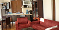 Уютный сад с оригинальным ландшафтным дизайном, общий для собственников комплекса, оснащен для игр в настольный теннис и приготовления барбекю. Есть несколько гамаков, шезлонги для загара и качели.