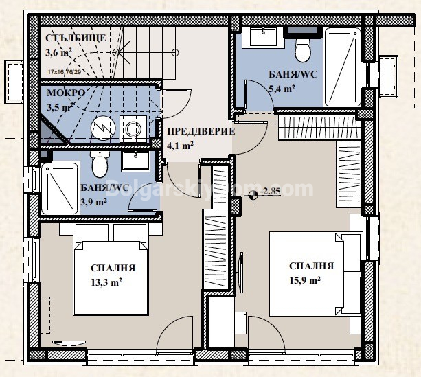 Предлагаем вам новый двухэтажный дом с тремя спальнями, расположенный в закрытом комплексе в Святом Власе. Планировка предусматривает три спальни, гостиную с кухонной зоной, балкон и вспомогательное помещение. Из окон открывается панорама леса и моря. Продажа осуществляется под ключ, без техники и мебели. Общая площадь недвижимости – 150 кв. м.