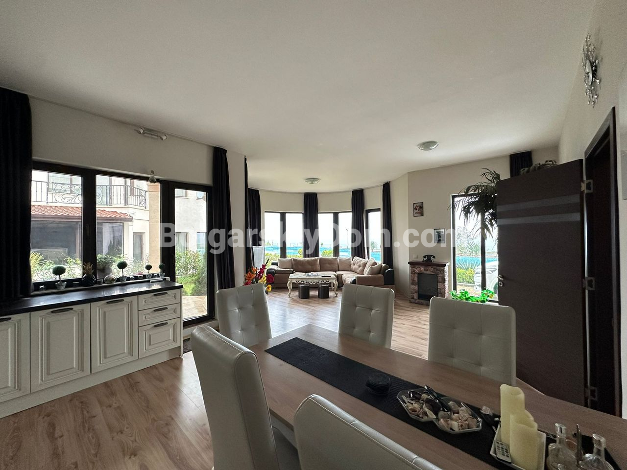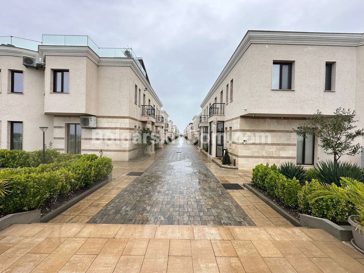 Курортная недвижимость в Болгарии, на 100% отвечающая запросам соискателей, ценящих комфорт, простор и шаговую близость к морю! Предлагаем трёхспальный таунхаус в Поморие, всего в 50 метрах от пляжа. Общая площадь - 152 кв. м, два уровня, продуманная планировка и впечатляющие панорамные виды на море.