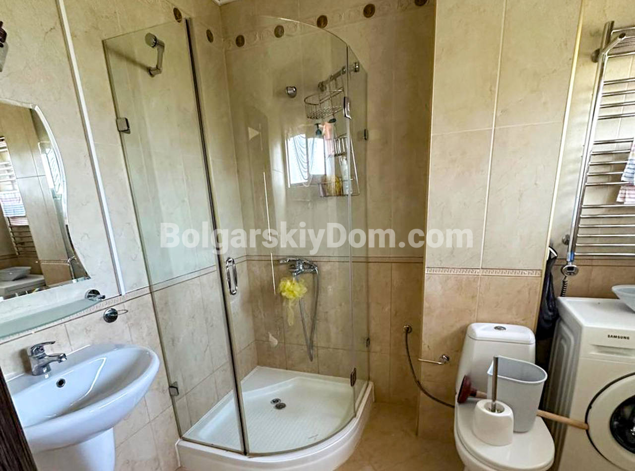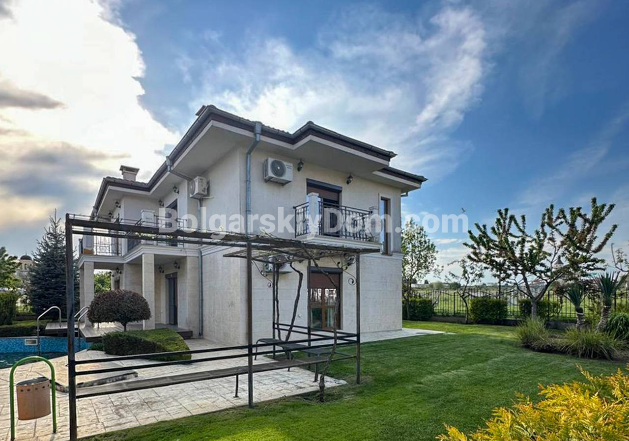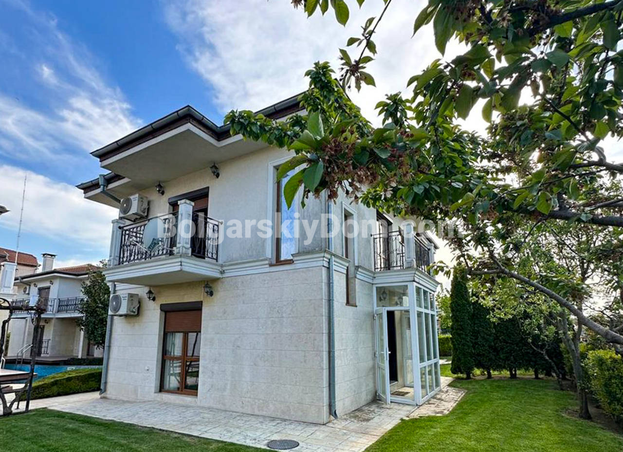 Топовое предложение от агентства Болгарский Дом - уютный таунхаус в жилом комплексе Элит 4, Равда, всего в 300 метрах от моря. Этот объект станет отличным выбором для тех, кто нацелен на комфорт, продуманное пространство и атмосферу уюта, и чтобы все это по хорошей цене. Общая квадратура 116 кв.м, на двух уровнях грамотно размещены две спальни, большая кухня-гостиная, два санузла, кладовая и балкон с выходом по лестнице прямо к бассейну. Всё в доме продумано для жизни: кондиционеры Panasonic, отдельная система отопления, камин, стильная плитка Versace в ванных комнатах, а во дворе — зелень и ощущение уединения. Продаётся с мебелью, полностью готов к проживанию.