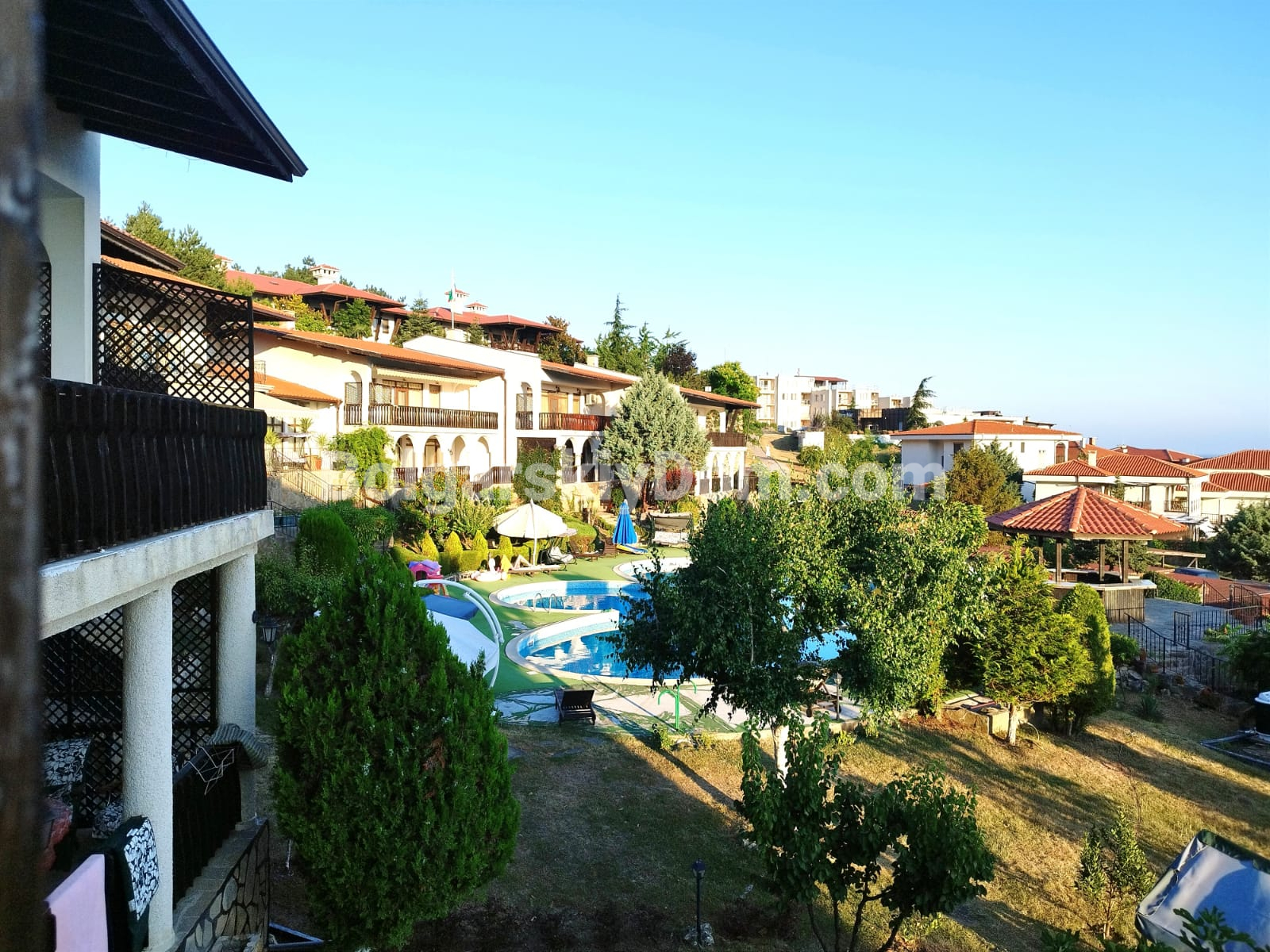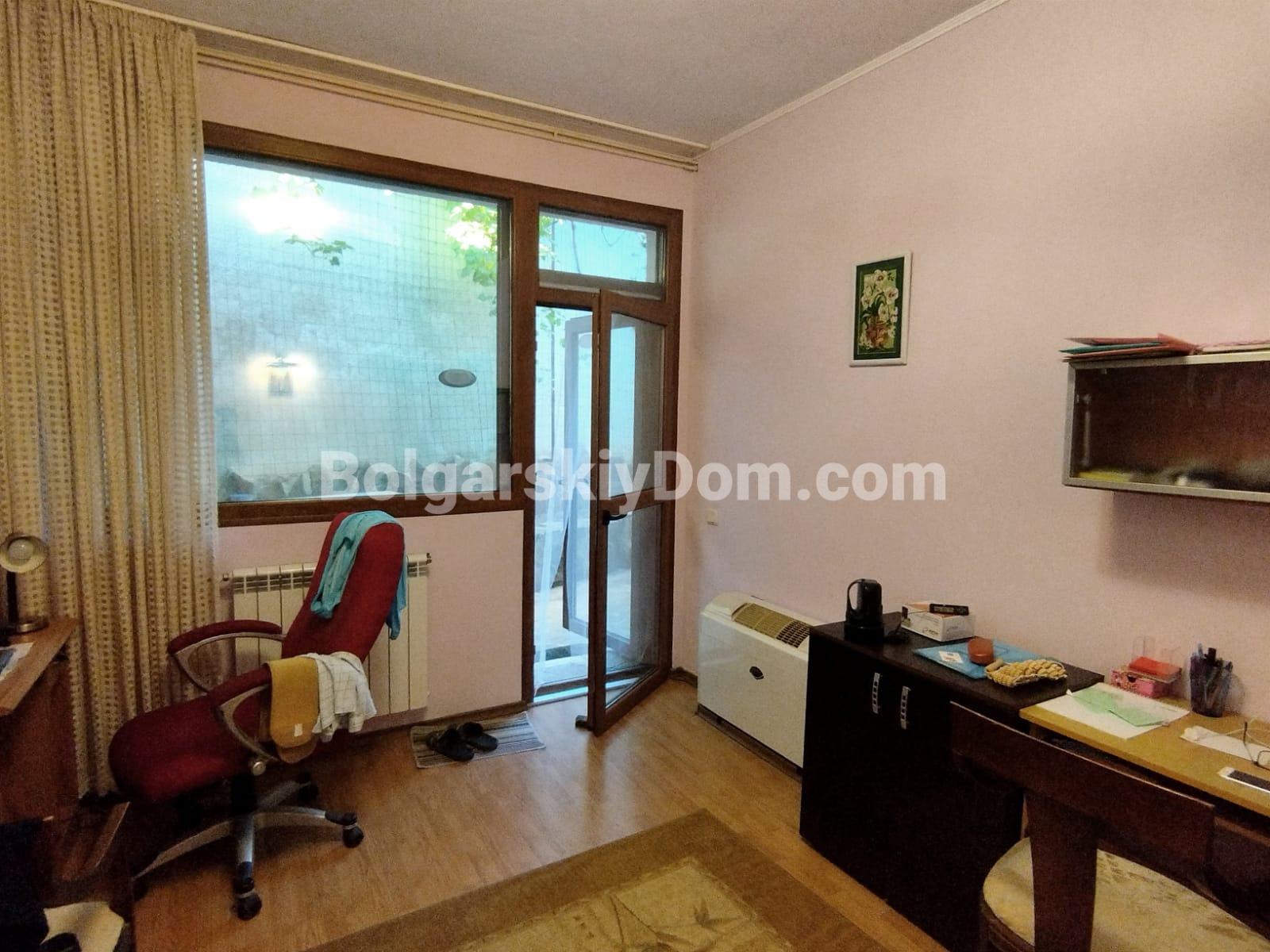 В ЖК закрытого типа, в ста метрах от пляжа Святого Власа, продается двухэтажный таунхаус в закрытом комплексе. Дом обустроен техникой и мебелью, есть электроотопление и кондиционеры, камин и система пеллетного отопления. Стены и окна утеплены. Первый этаж: гостиная, кухня, кабинет и кладовая, санузел. Второй: две террасы, три спальни, два санузла и кладовая/гардеробная. Английский дворик с большой верандой и барбекю, есть сад с фруктовыми деревьями и бассейн. Построен гараж с мастерской. После сделки мебель и техника остаются.