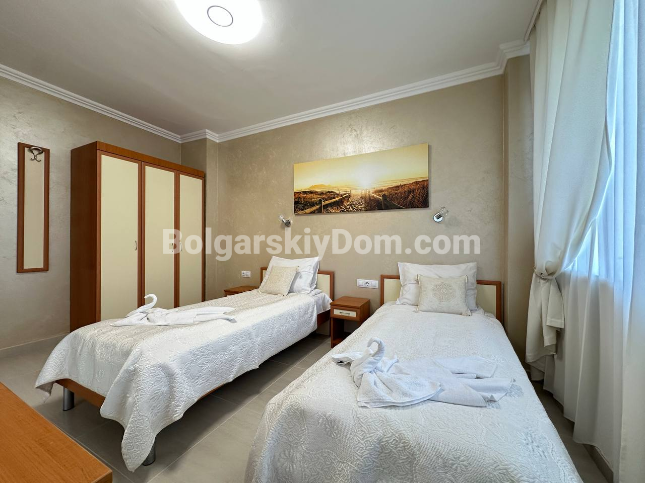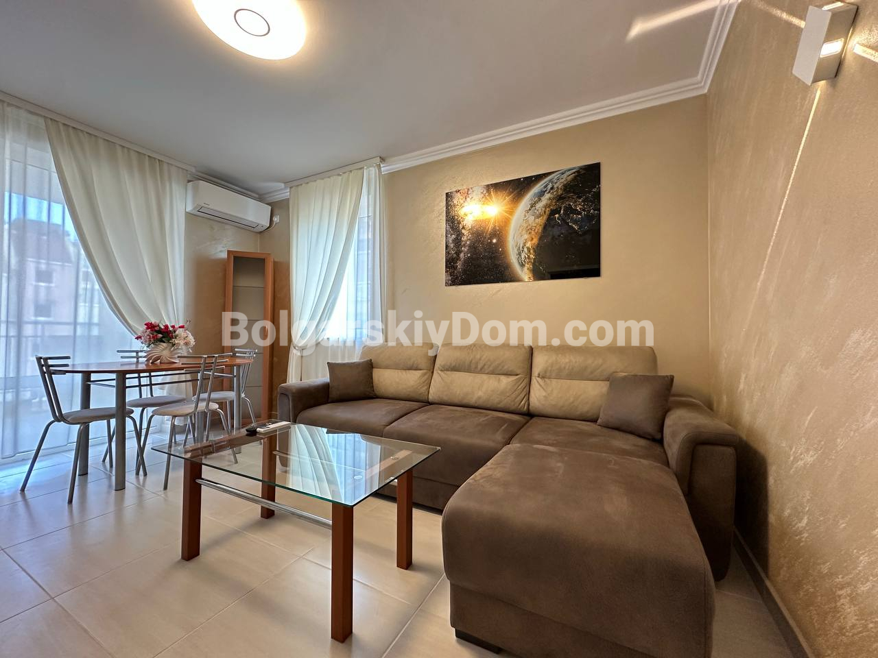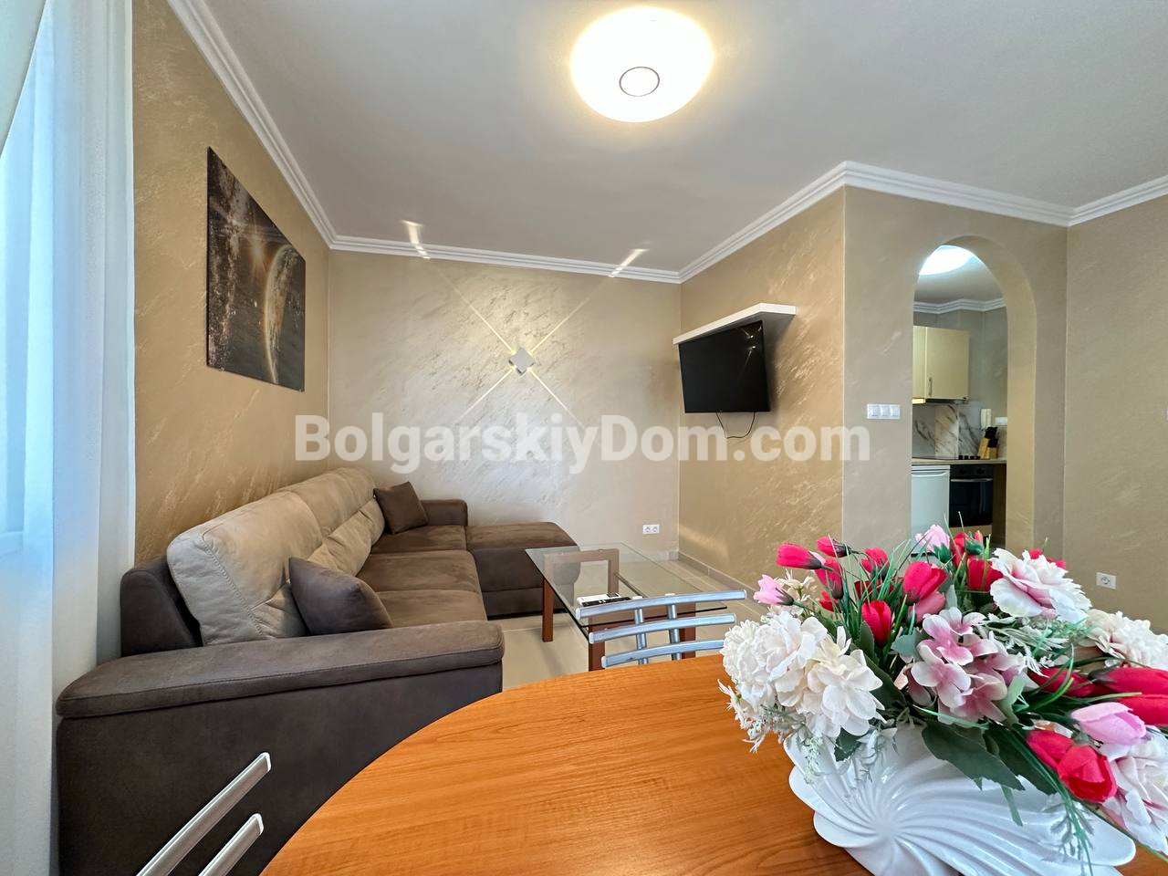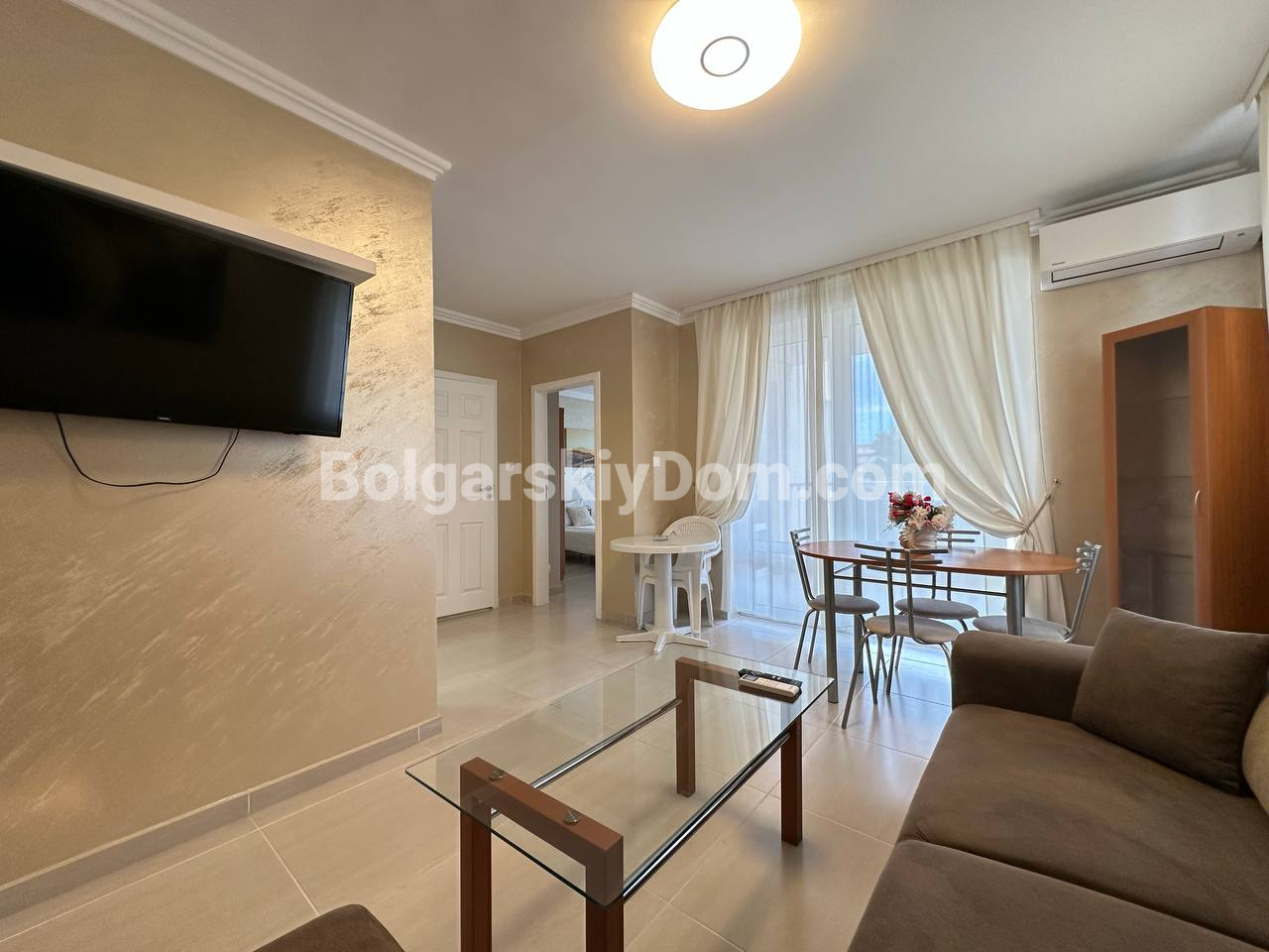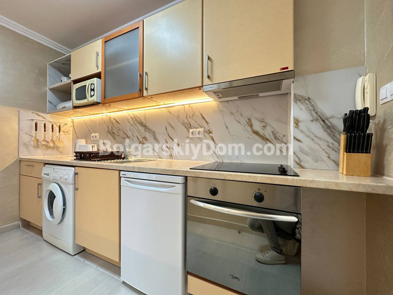 Достойная новинка в топовом курортном городе Болгарии, Солнечном береге! К сделке открыта двухкомнатная квартира в круглогодично работающем комплексе Си Дримс – с техникой, мебелью, удобной планировкой и в отличном техническом состоянии. Апартамент подойдет для длительного проживания: здесь удобная планировка с кухней, расположенной в отдельной нише (стиральная машина, духовка, плита, холодильник), автономной спальней с двумя кроватями, кондиционером и ТВ, и вместительной гостиной, распределенной на зону отдыха и столовую. Пятый этаж, общая площадь 63 кв. м. Договоритесь с агентами Болгарского Дома об удобном для вас времени осмотра.
