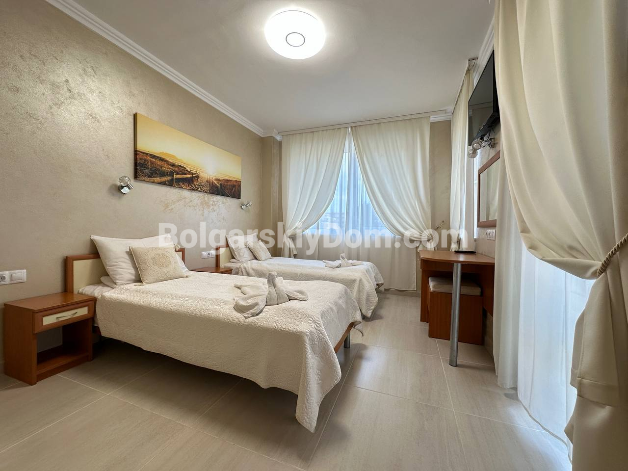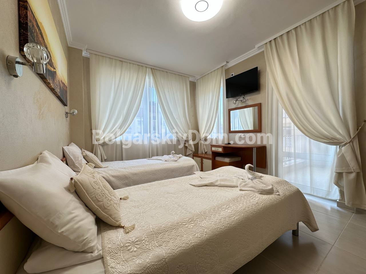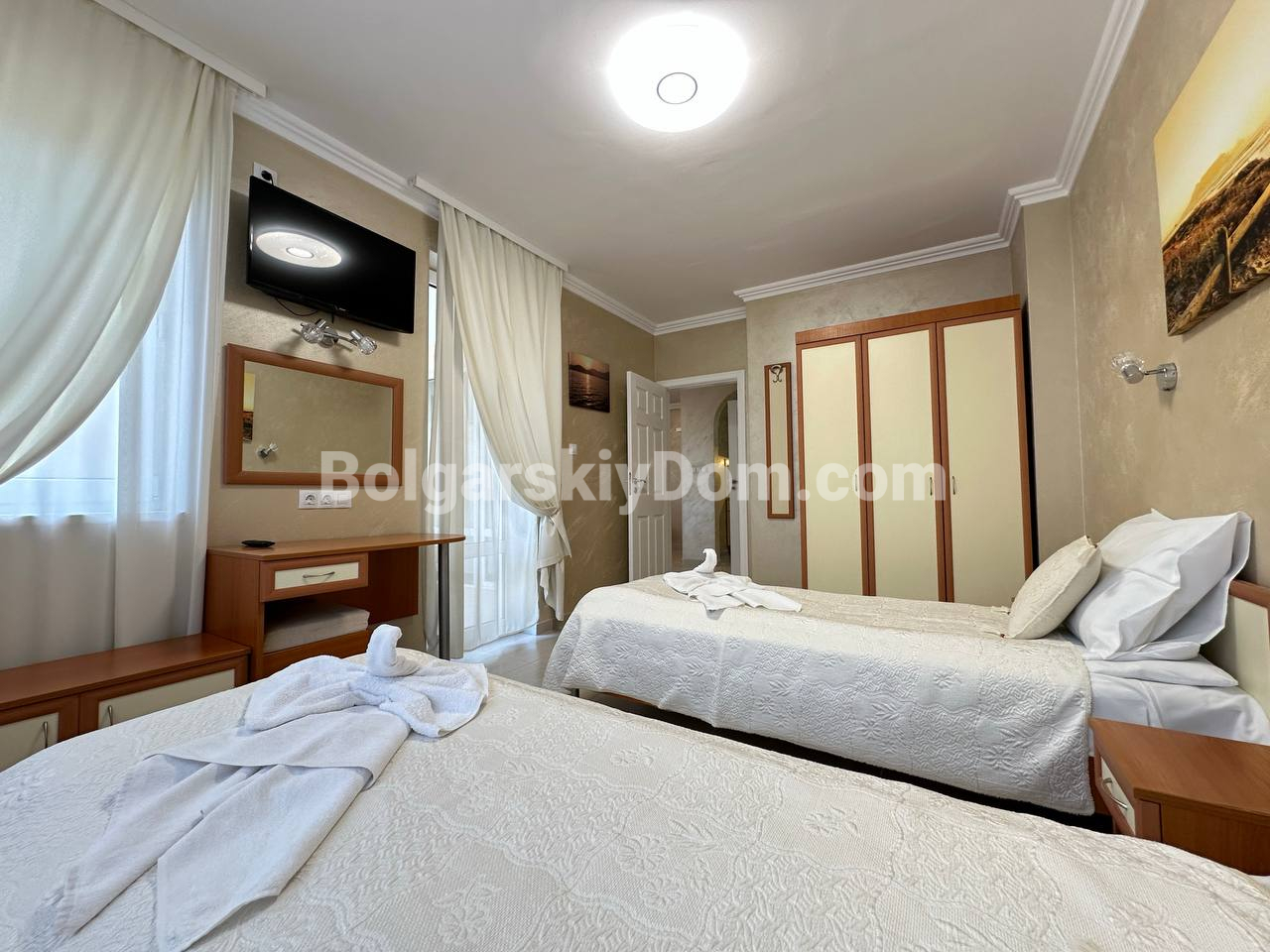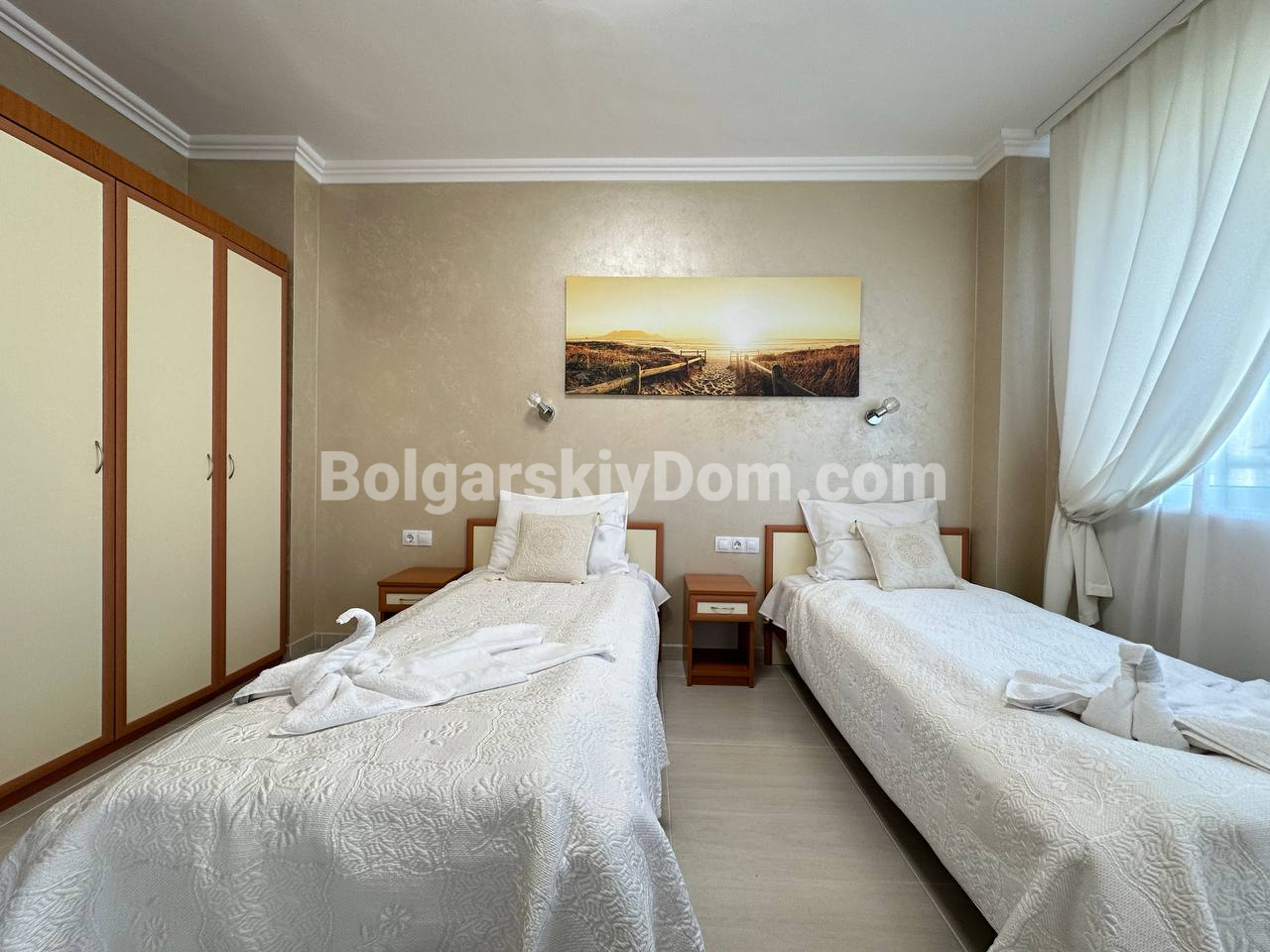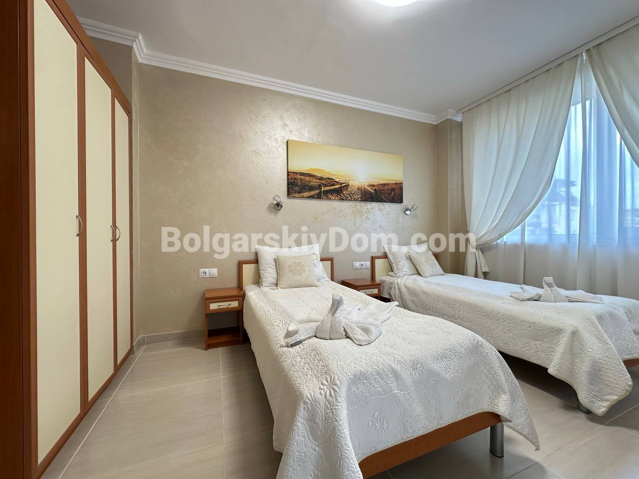 Достойная новинка в топовом курортном городе Болгарии, Солнечном береге! К сделке открыта двухкомнатная квартира в круглогодично работающем комплексе Си Дримс – с техникой, мебелью, удобной планировкой и в отличном техническом состоянии. Апартамент подойдет для длительного проживания: здесь удобная планировка с кухней, расположенной в отдельной нише (стиральная машина, духовка, плита, холодильник), автономной спальней с двумя кроватями, кондиционером и ТВ, и вместительной гостиной, распределенной на зону отдыха и столовую. Пятый этаж, общая площадь 63 кв. м. Договоритесь с агентами Болгарского Дома об удобном для вас времени осмотра.
