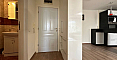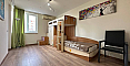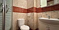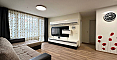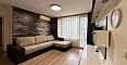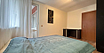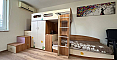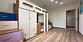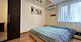 В главной спальне установлена большая кровать, организована рабочая зона. Вторая спальня оборудована как детская. В квартире два санузла: в одном установлена ванна, в другом – душевая кабина; есть стиральная машина.