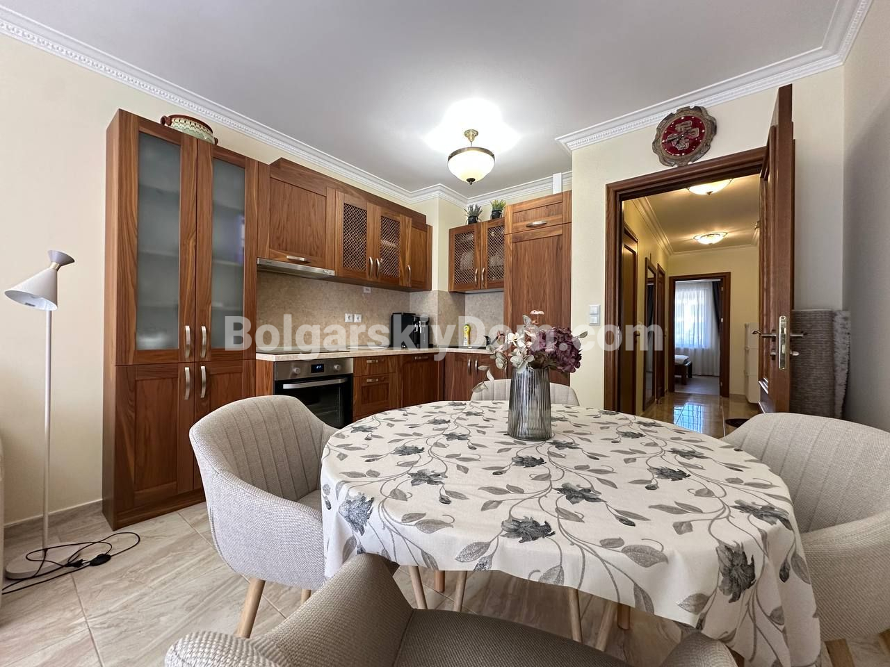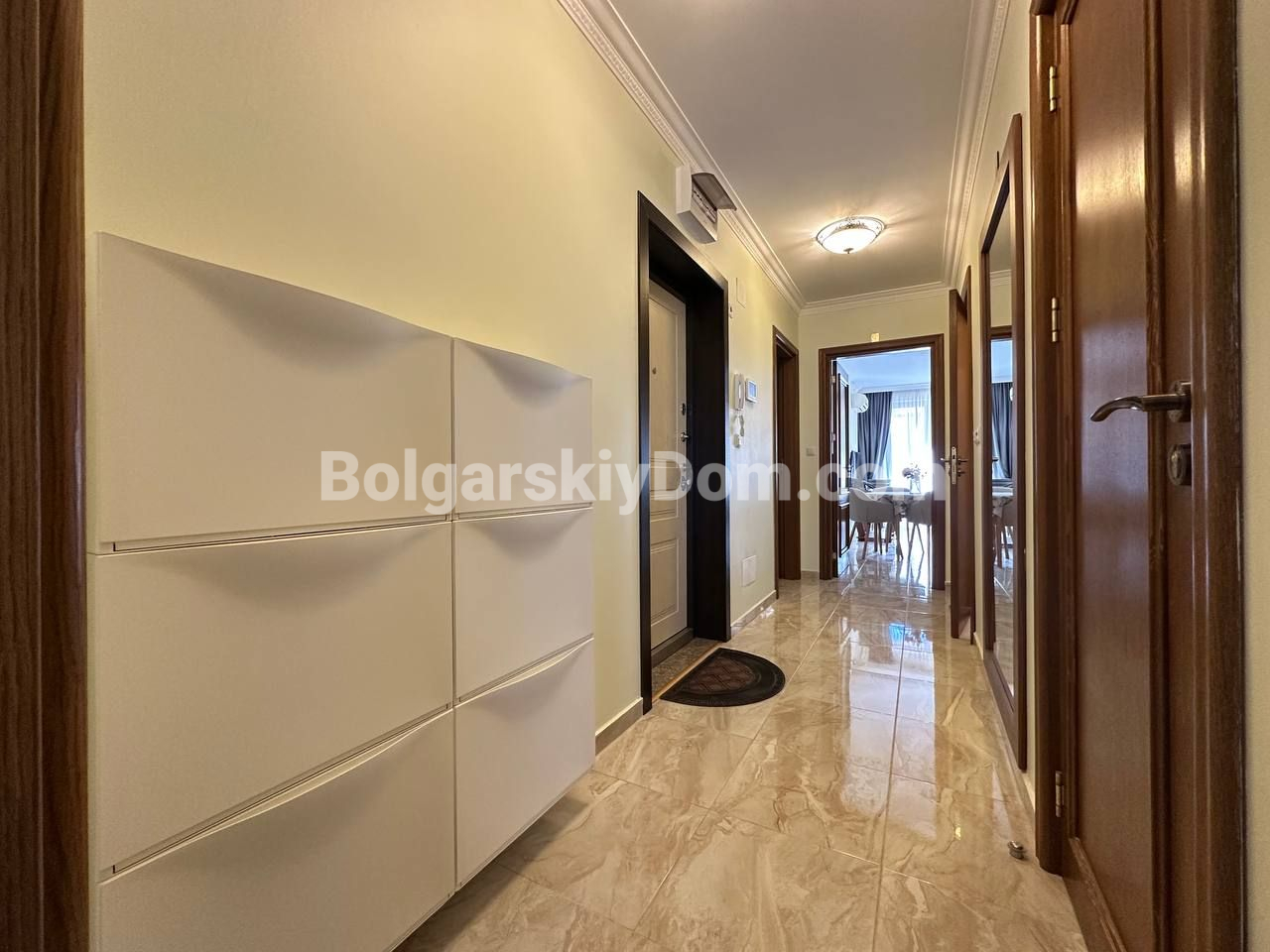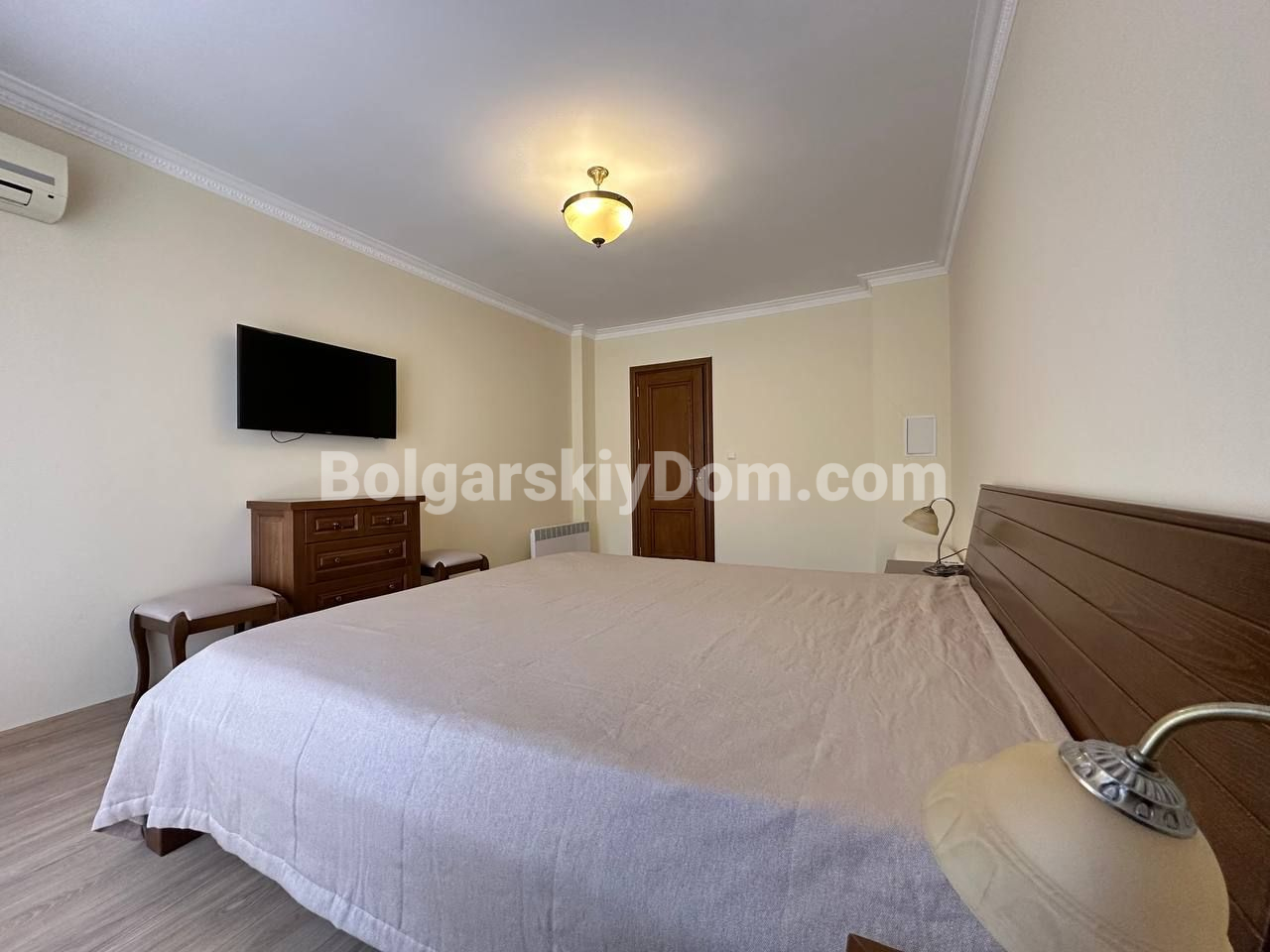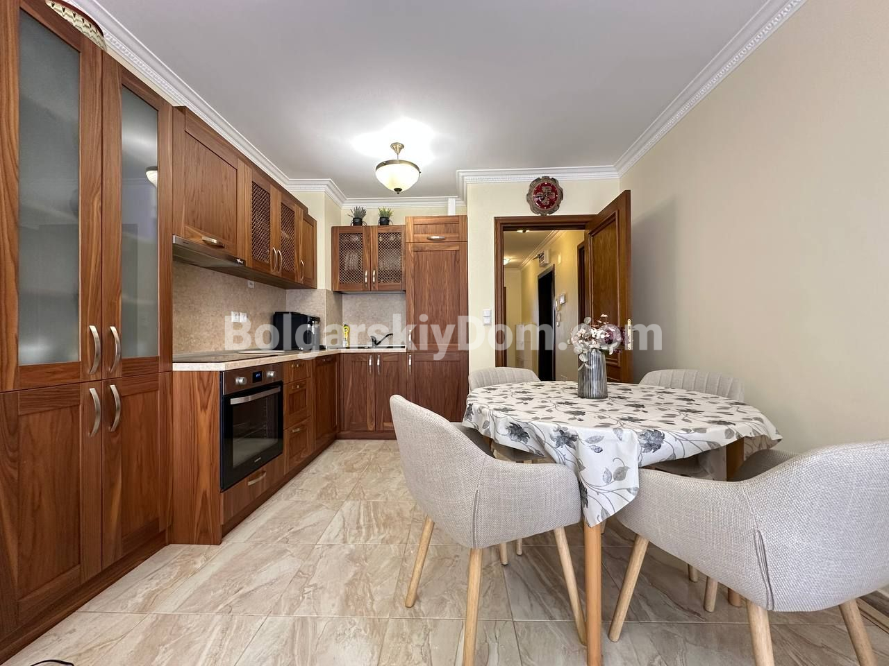 Шикарное предложение в курорте Святой Влас - просторная трехкомнатная квартира площадью 145 кв.м в фешенебельном комплексе на первой линии. В апартаменте сделан хороший ремонт. Качественные мебель и техника создают современный и функциональный интерьер. Кроме большой гостиной с функциональной кухней и двух отдельных спален, в апартаменте имеется два санузла, кладовка и уютная терраса.