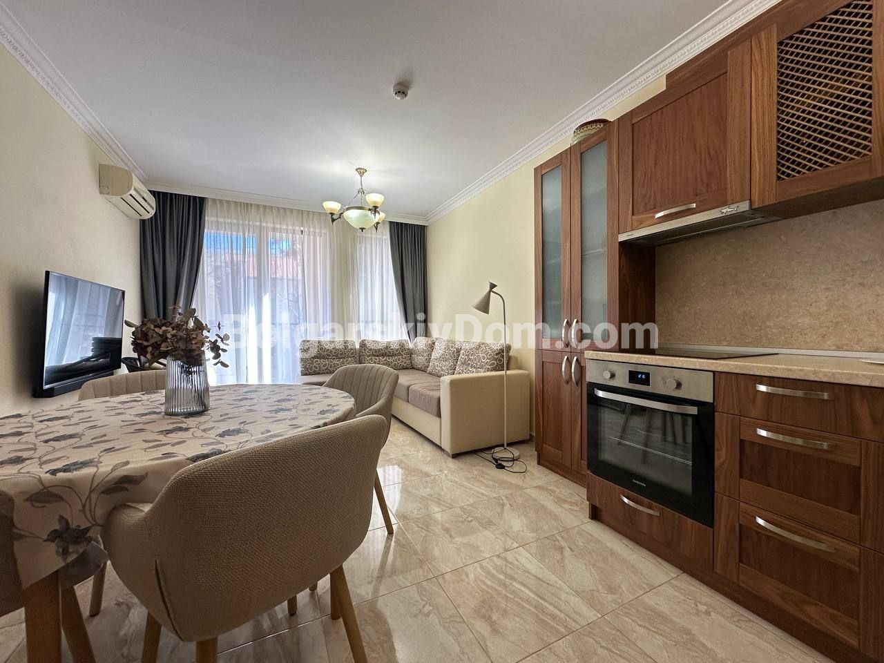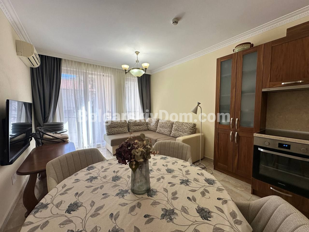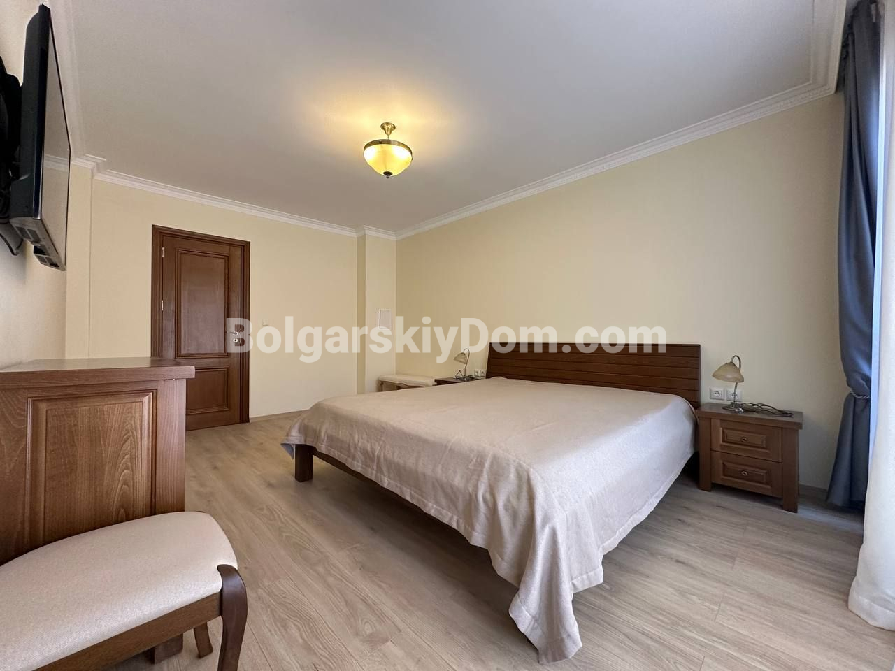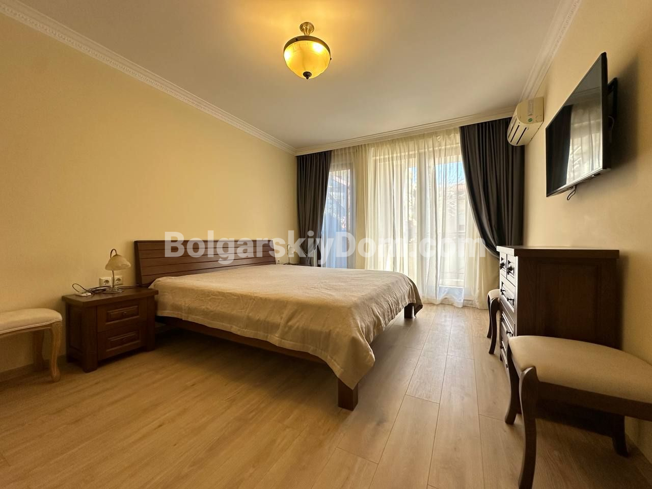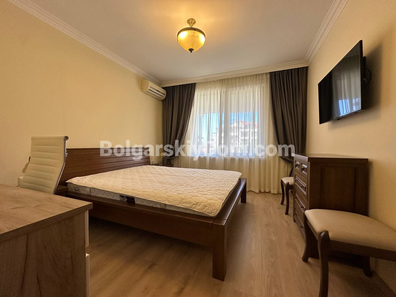Шикарное предложение в курорте Святой Влас - просторная трехкомнатная квартира площадью 145 кв.м в фешенебельном комплексе на первой линии. В апартаменте сделан хороший ремонт. Качественные мебель и техника создают современный и функциональный интерьер. Кроме большой гостиной с функциональной кухней и двух отдельных спален, в апартаменте имеется два санузла, кладовка и уютная терраса.