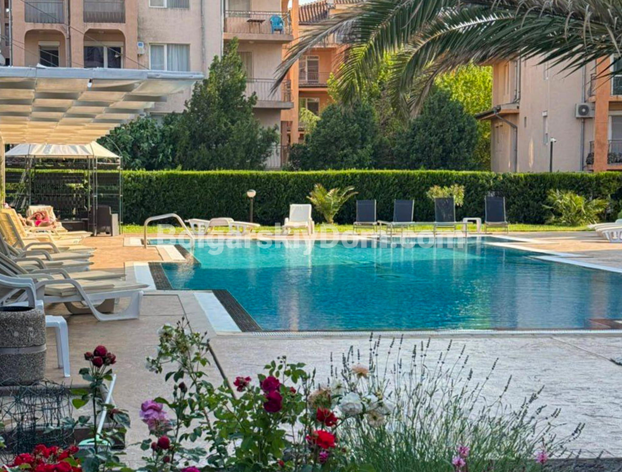 Готовый дом у моря без хлопот! Самый центр Солнечного берега: АН «Болгарский Дом» предлагает вам рассмотреть двухкомнатную квартиру площадью 64 кв. метра в ЖК «Вип Имидж» — просторное решение для жизни или инвестиций. На 4-м этаже (лифт в наличии) вас ждёт продуманная планировка: гостиная с кухней, спальня, терраса для отдыха и санузел. Квартира продаётся с мебелью и техникой — заезжайте и начинайте жить или сдавать. АКТ 16, отдельные коммунальные тарифы и закрытая территория с парковкой гарантируют спокойствие, а бассейны (взрослый и детский) на территории — курортный досуг без выхода за пределы комплекса. Такой формат редко задерживается на рынке!