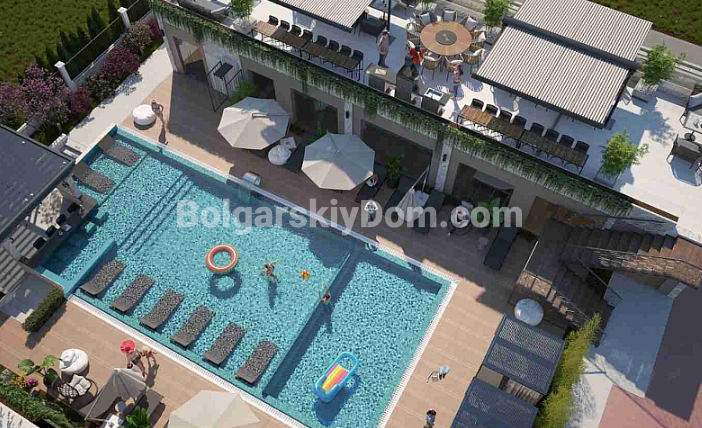 Одним из ключевых преимуществ является расположение комплекса. Sweet Homes 8 находится в популярном квартале Камелия, рядом с супермаркетом «Младост». В шаговой доступности расположены продуктовые магазины, банки, аптеки, рестораны и вся необходимая инфраструктура для комфортного проживания круглый год. На территории комплекса создана развитая инфраструктура для отдыха и релакса. К услугам собственников SPA-центр с крытым бассейном, два открытых бассейна, фитнес-зал и специальные зоны отдыха. Для семей с детьми предусмотрены детская комната с видеонаблюдением и детская площадка. Также на территории есть рецепция, парковка и просторная зона барбекю на крыше SPA-центра с профессиональным оборудованием. В таксу обслуживания включен полный комплекс сервисных услуг, обеспечивающих комфорт и безопасность проживания в течение всего года. Предусмотрен профессиональный менеджмент комплекса, круглогодичное обслуживание общих зон, охрана и видеонаблюдение, система противопожарной безопасности, бесплатный Wi-Fi в зоне бассейнов, а также кабельное телевидение и интернет.