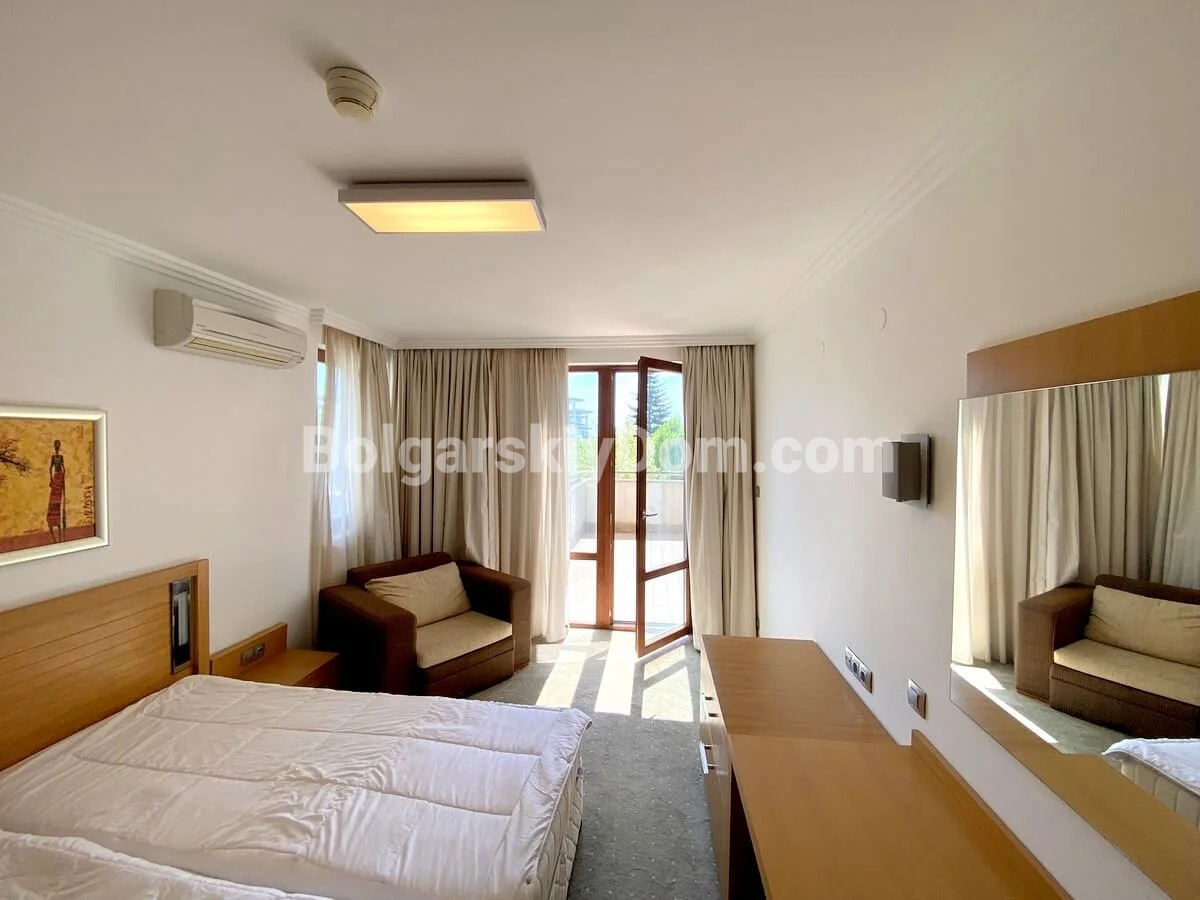 Комплекс Эмеральд Резорт - это роскошное во всех отношениях место для жизни и отдыха. Он находится в Равде, всего в 200 метрах от моря, то есть вы получаете автоматом легкий доступ к пляжу: 5-7 минут пешком. На территории есть все для комфортного проживания, а высокий уровень сервиса подтверждает такса поддержки в 30 евро. Этот апартамент - отличная инвестиция во всех отношениях.