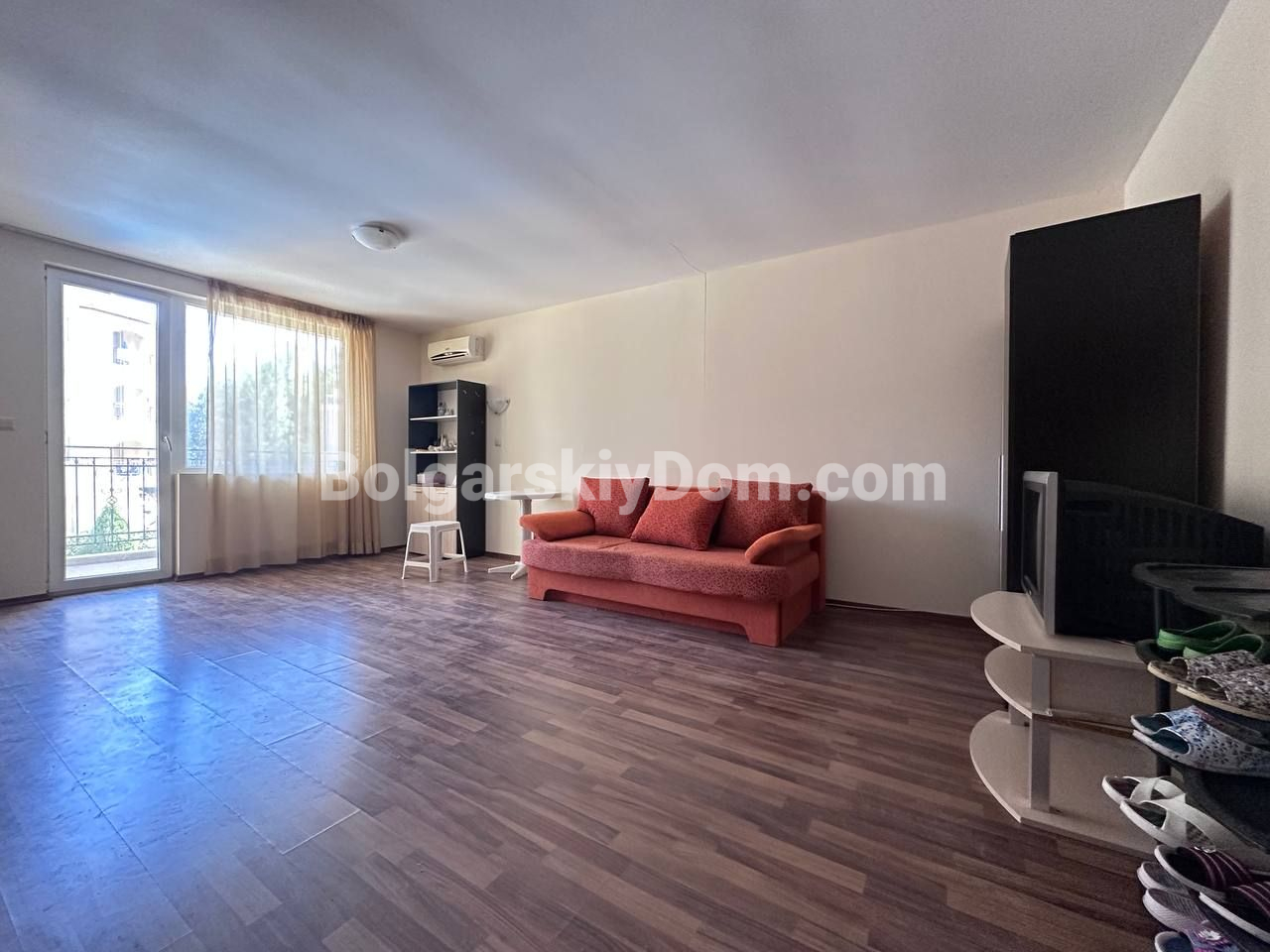Недорогое решение с удачным расположением — студия с видом на бассейн, всего в 700 метрах от пляжа! Компактная квартира с балконом на 2 этаже, площадью 43 кв.м. Установлена небольшая кухня, есть диван, кондиционер, обустроен санузел с душевой частью. Пространство зонировано удобно, без перепланировок. Мебель и техника включены в стоимость — можно сразу заселяться или сдавать в аренду. Из окна открывается приятный вид на бассейн.