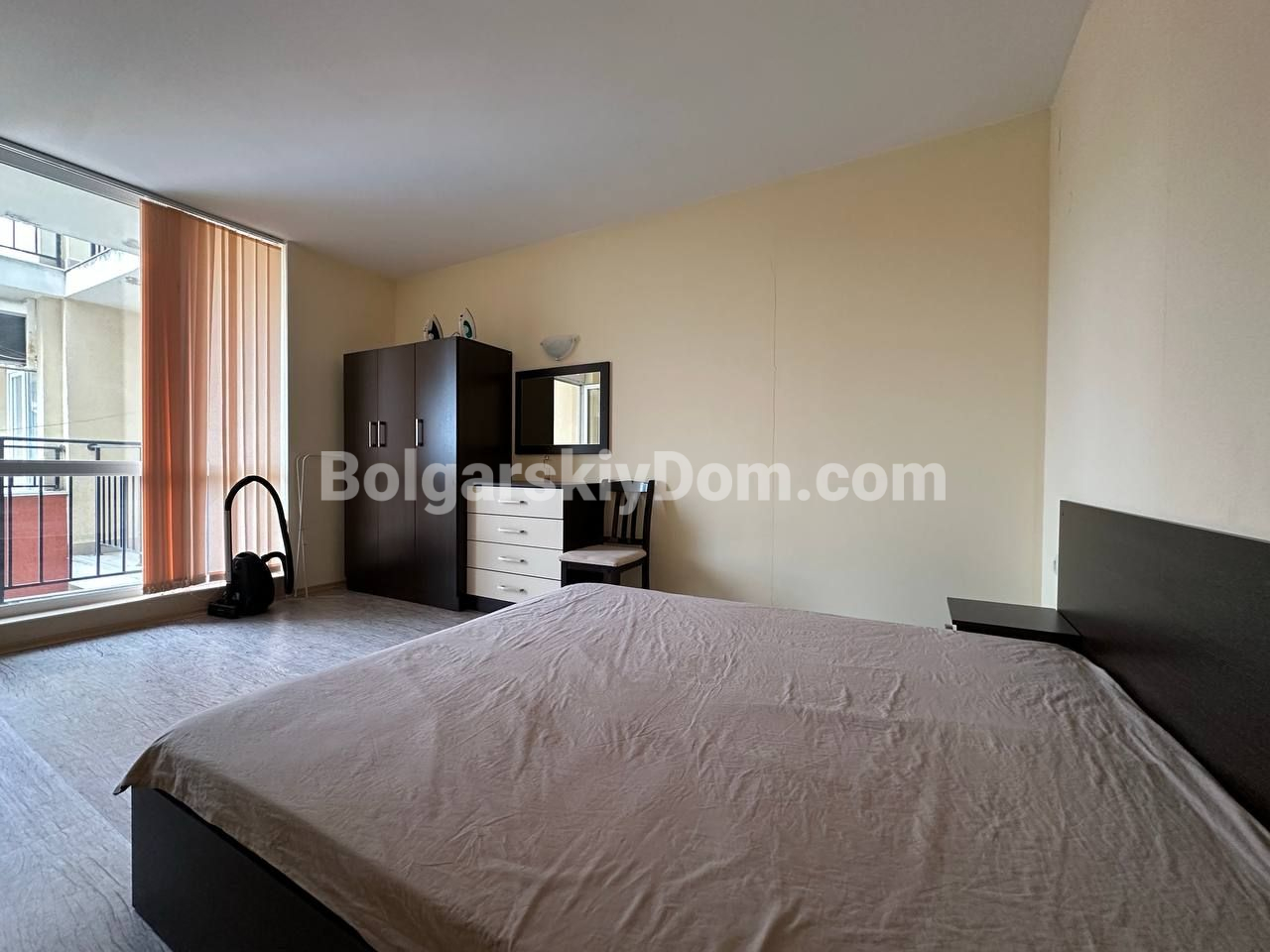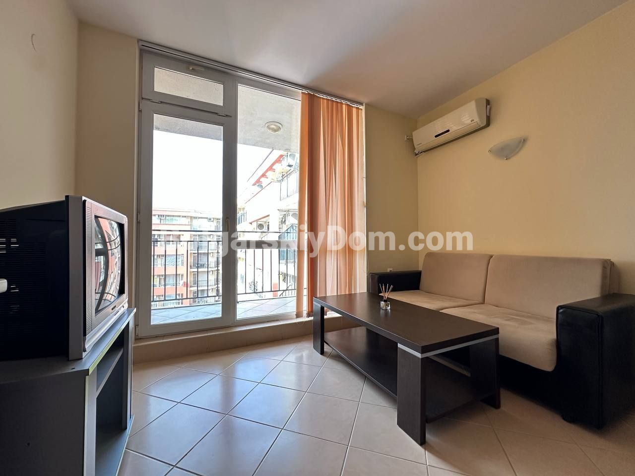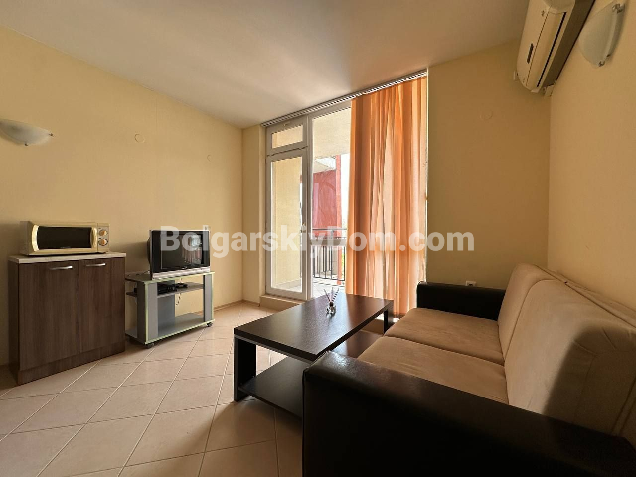 Болгарский Дом подбирает для вас только ликвидные и стоящие внимания предложения! Недорогое и практичное решение у моря — отличный вариант как для отдыха, так и для сдачи в аренду: меблированная двухкомнатная квартира площадью 59 кв.м. расположена на пятом этаже жилого комплекса Sunset Beach 3, который находится всего в 700 метрах от пляжа. Планировка стандартная, и потому универсальная - она предусматривает светлую гостиную с кухней и обеденной зоной, отдельную спальню, ванную комнату с туалетом и террасу. Интерьер простой, но функциональный, есть базовая мебель, а значит — квартиру можно сразу использовать без необходимости дополнительных вложений.