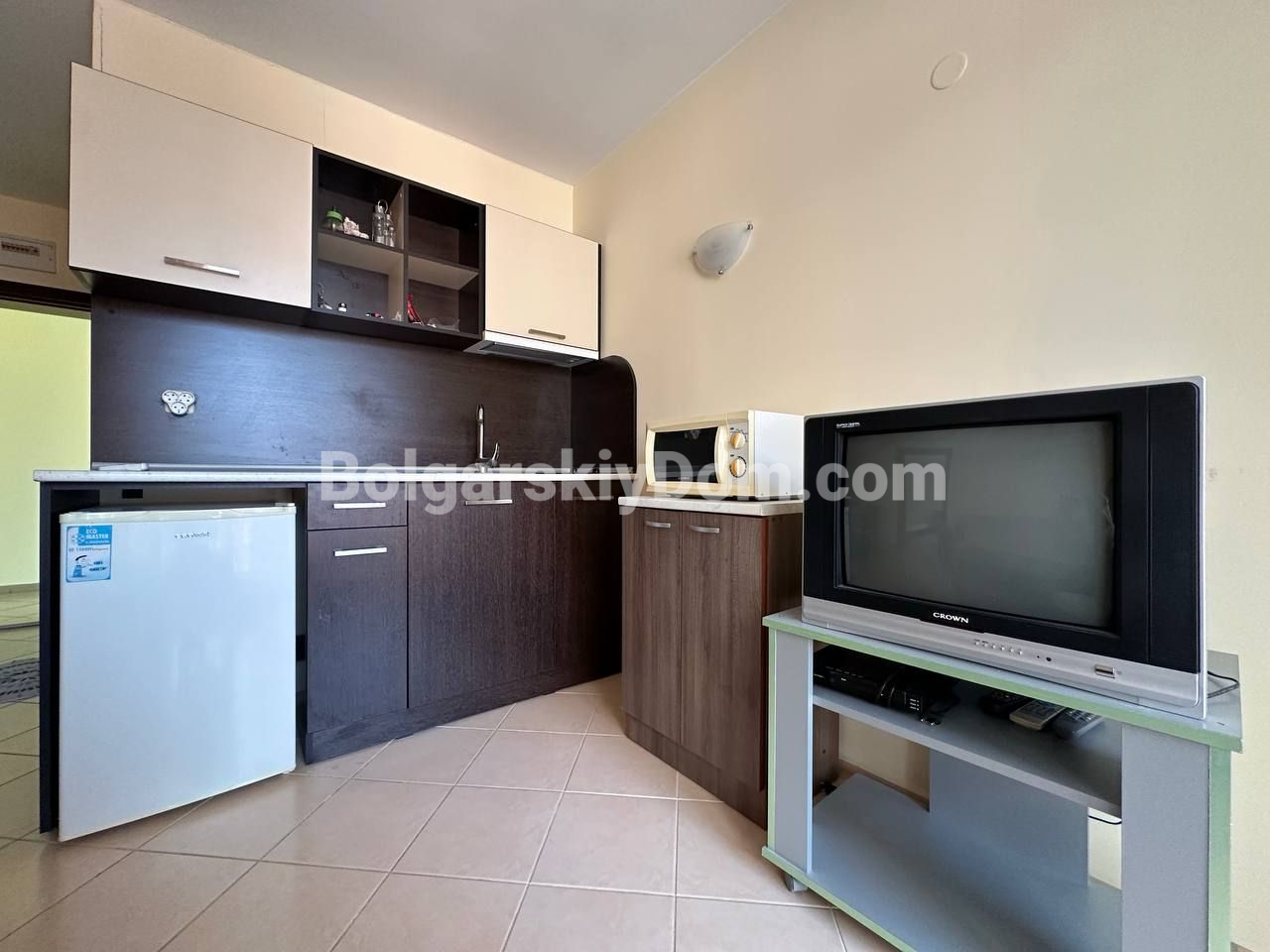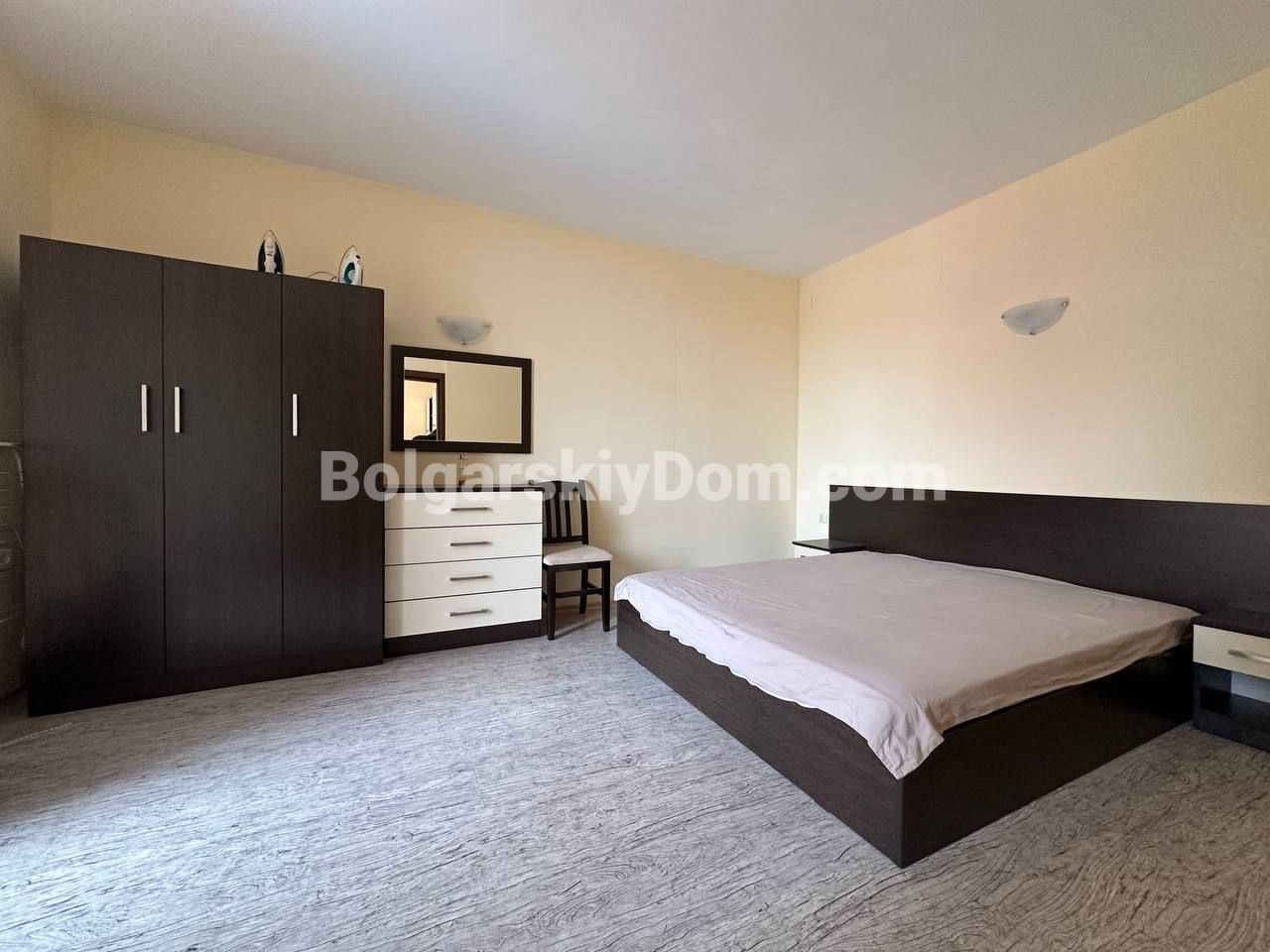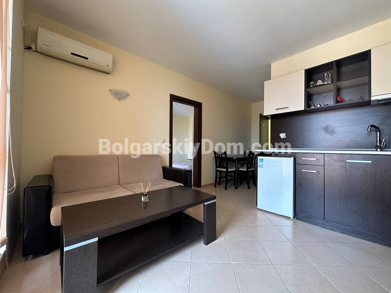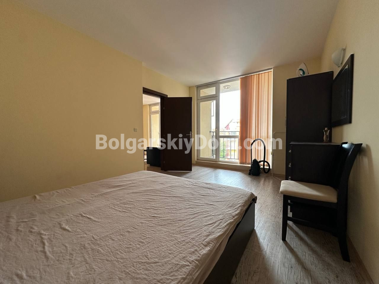 Болгарский Дом подбирает для вас только ликвидные и стоящие внимания предложения! Недорогое и практичное решение у моря — отличный вариант как для отдыха, так и для сдачи в аренду: меблированная двухкомнатная квартира площадью 59 кв.м. расположена на пятом этаже жилого комплекса Sunset Beach 3, который находится всего в 700 метрах от пляжа. Планировка стандартная, и потому универсальная - она предусматривает светлую гостиную с кухней и обеденной зоной, отдельную спальню, ванную комнату с туалетом и террасу. Интерьер простой, но функциональный, есть базовая мебель, а значит — квартиру можно сразу использовать без необходимости дополнительных вложений.