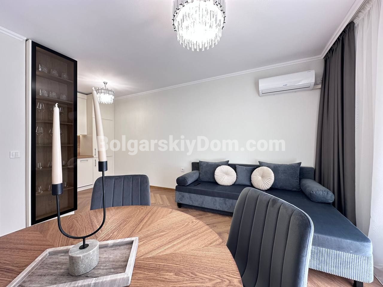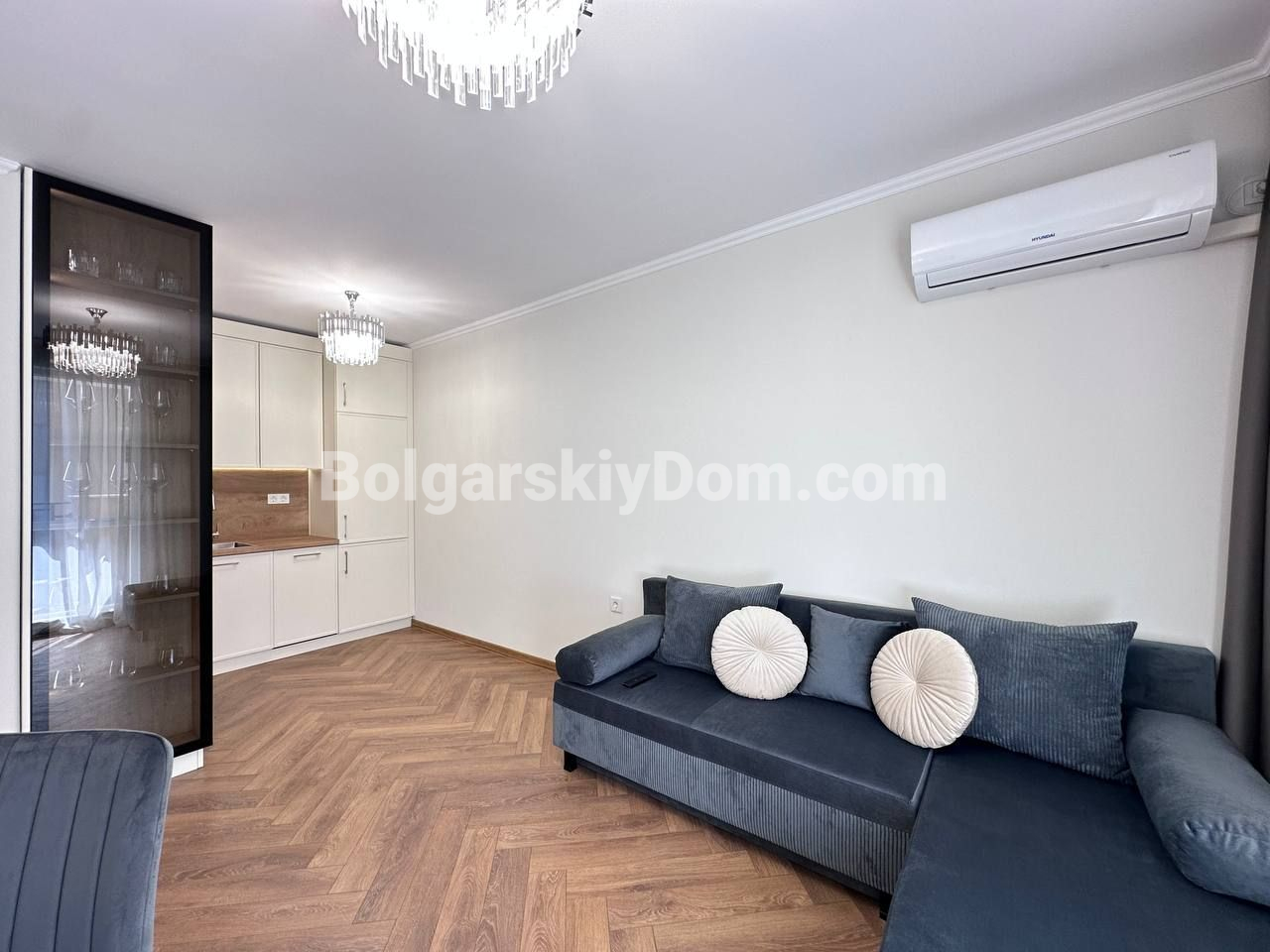 Видовый апартамент под ключ с максимальной ликвидностью! Предлагаем апартамент с одной спальней и видом, который действительно заслуживает внимания — море и Старый Несебр прямо перед глазами. Квартира расположена на втором этаже, площадь — 62 кв.м. Продуманный ремонт: в каждой комнате установлены кондиционеры, полы с подогревом, качественный ламинат. Просторная терраса соединяет гостиную и спальню, а внутри — вся необходимая техника, включая посудомоечную и стиральную машины, встроенная кухня, шкаф-купе и удобный диван. Обстановка свежая, функциональная, всё готово к заселению или сдаче в аренду.