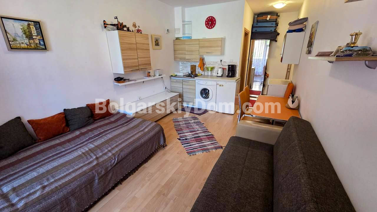 Недорогой старт в Болгарии вместе с агентством недвижимости Болгарский Дом возможен! Открываем продажу новинки, это — студия в комплексе Санни Дей 6, которая уже готова к проживанию. Уютная квартира площадью 31 кв.м расположена на первом (партерном) этаже и порадует вас практичной планировкой: светлая комната, кухонная зона, санузел и балкон с видом на бассейн и внутреннюю территорию. Обстановка включена в стоимость: мебель, техника — всё есть, чтобы сразу переехать или начать получать прибыль от аренды.