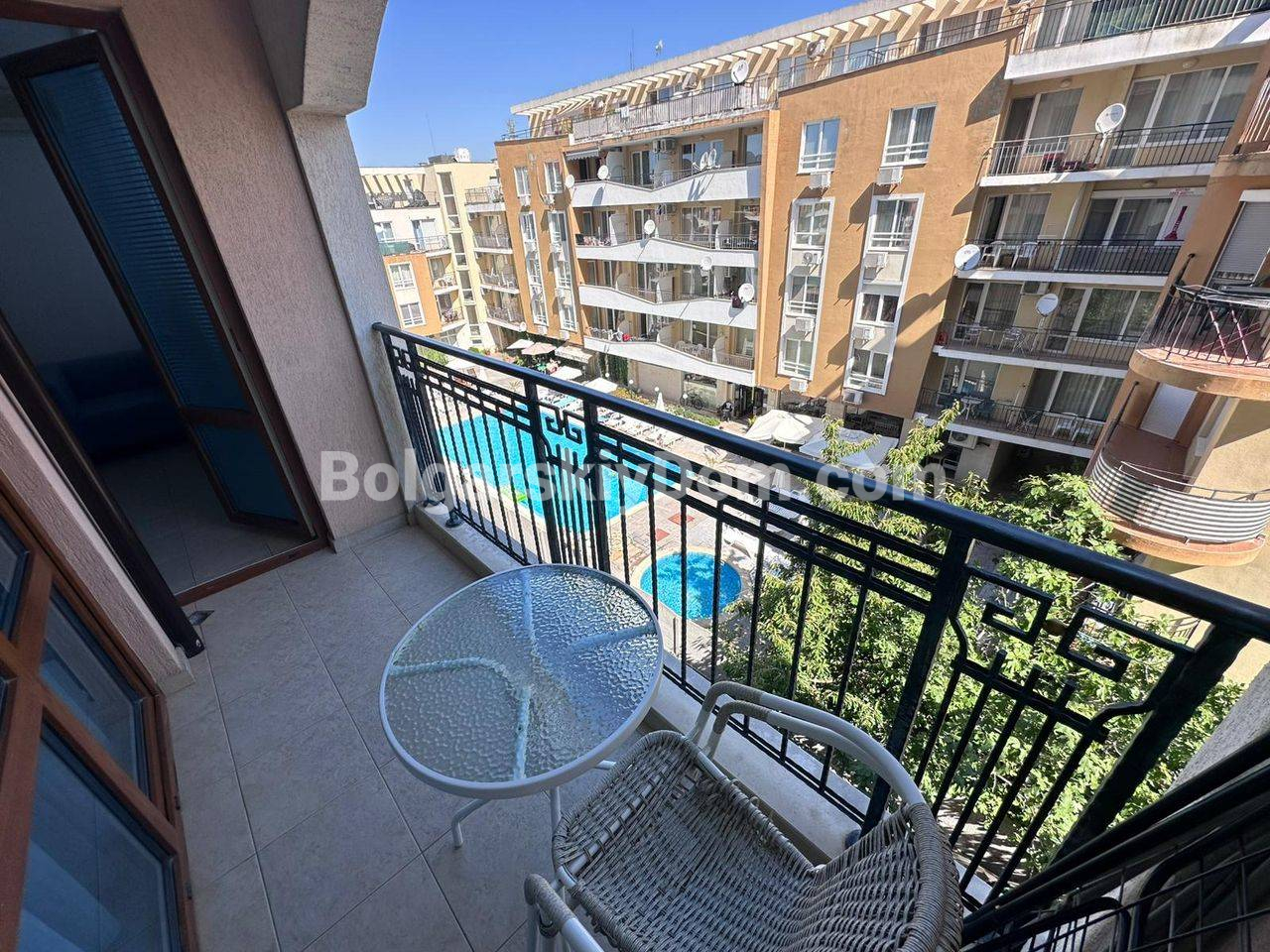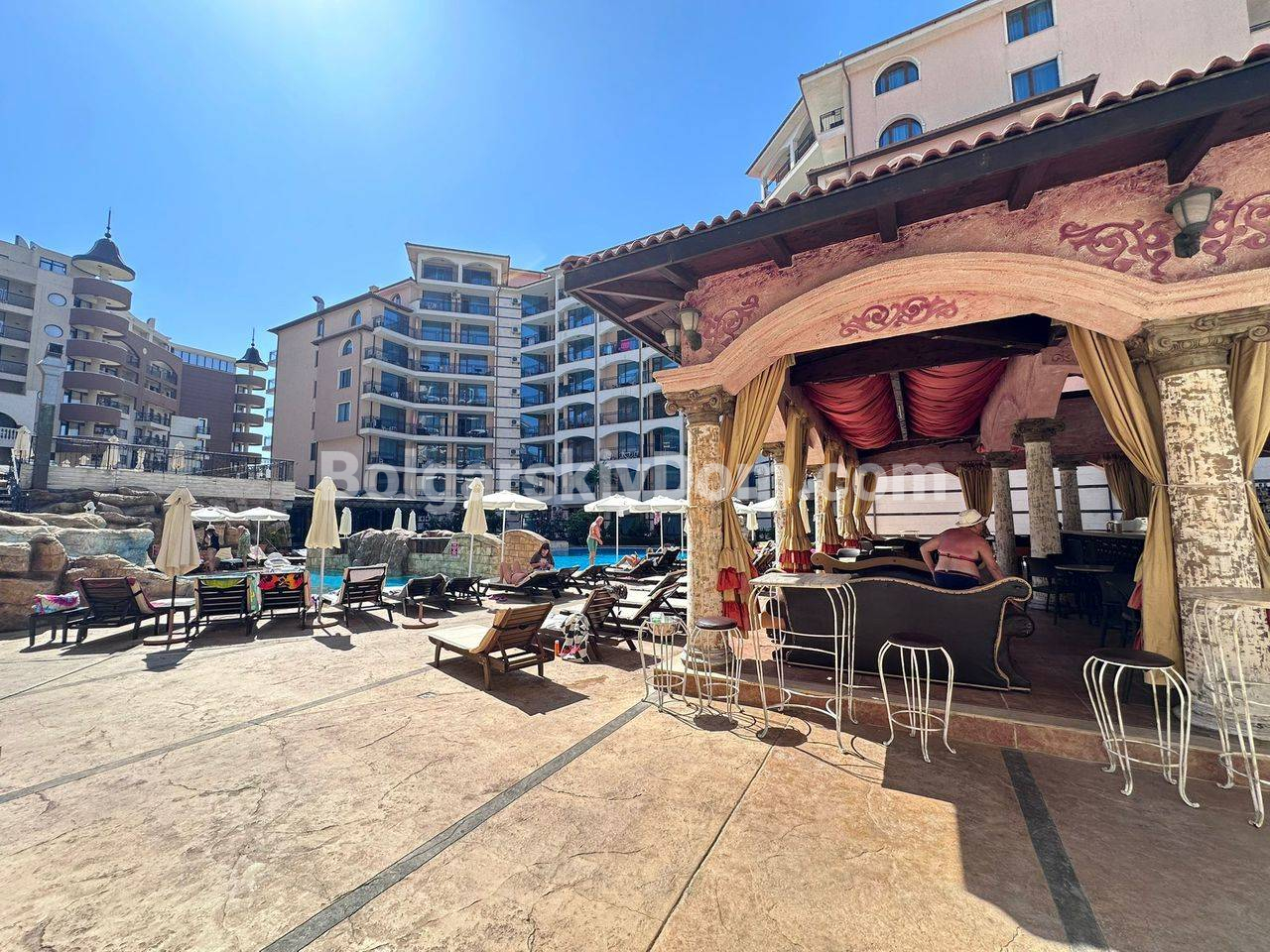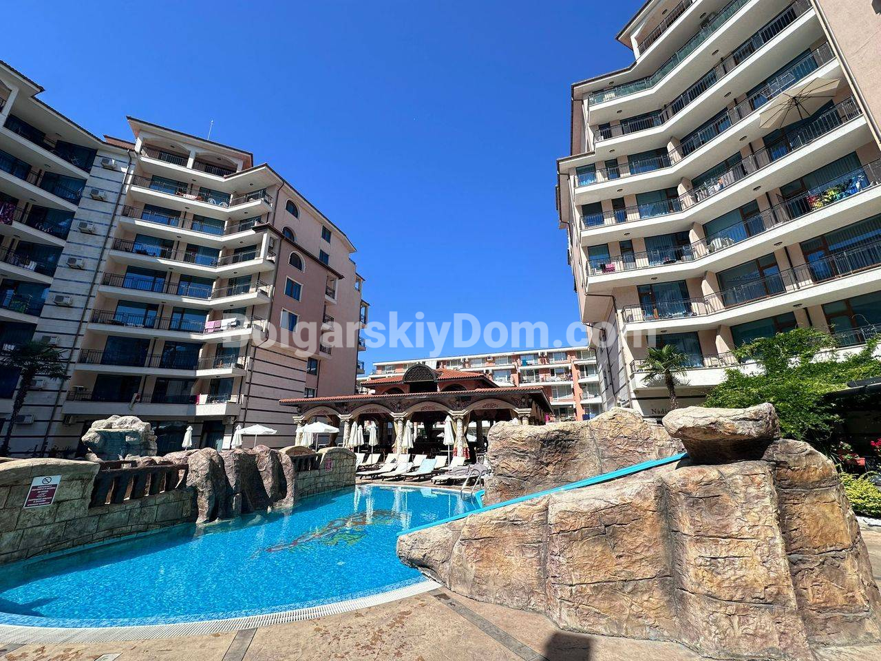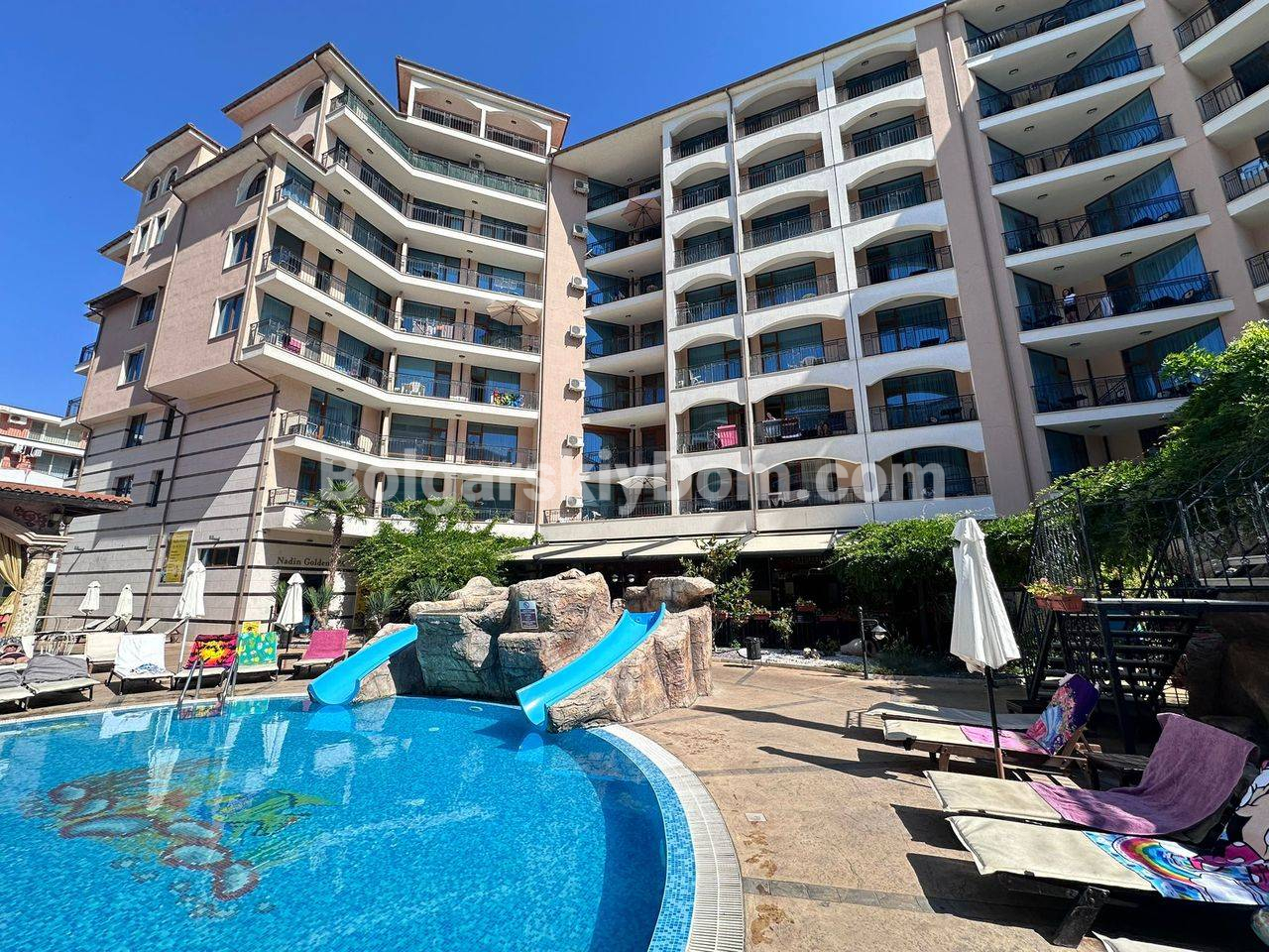 Комплекс «Каролина» - это качественный жилой объект с круглогодичной охраной и отличной локацией. Здесь есть большой открытый бассейн, ресторан с летней террасой, бар, салон красоты, минимаркет, зона для отдыха, ухоженные аллеи с ландшафтным дизайном. В 5 минутах пешком автобусная остановка, аптека, продуктовые магазины, банкомат, недорогие кафе и супермаркет. До Старого Несебра буквально 15–20 минут приятной прогулки по набережной. Такса обслуживания 10 евро/кв.м. Безусловно отличный формат для семейного отдыха и инвестиций в арендный бизнес.
