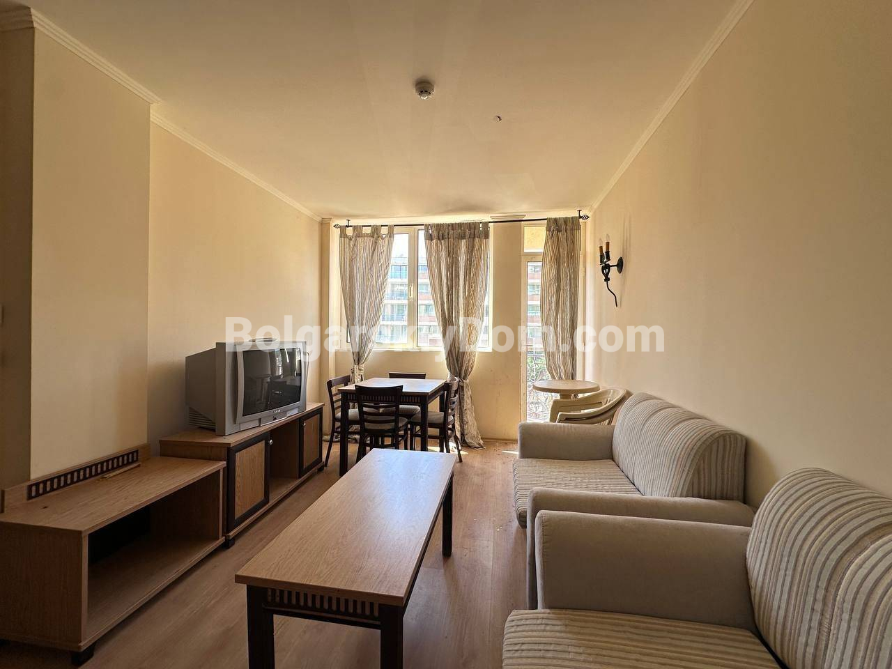 Ловите новинку от Болгарского дома! Прекрасный вариант для отдыха у моря - двухкомнатная квартира с видом на море и горы в комплексе Атриум Бич, который находится в уединенном оазисе Елените. Апартамент площадью 55 кв.м. расположен на втором этаже и полностью меблирован. Планировка включает светлую гостиную, спальню, ванную комнату с ванной и балкон с отличным обзором окрестностей, морской глади и поистине незабываемыми черноморскими закатами. Жильё готово к проживанию или аренде - всё, что нужно для комфортного начала сезона, уже здесь есть. Свяжитесь со своим агентом для бронирования времени осмотра!