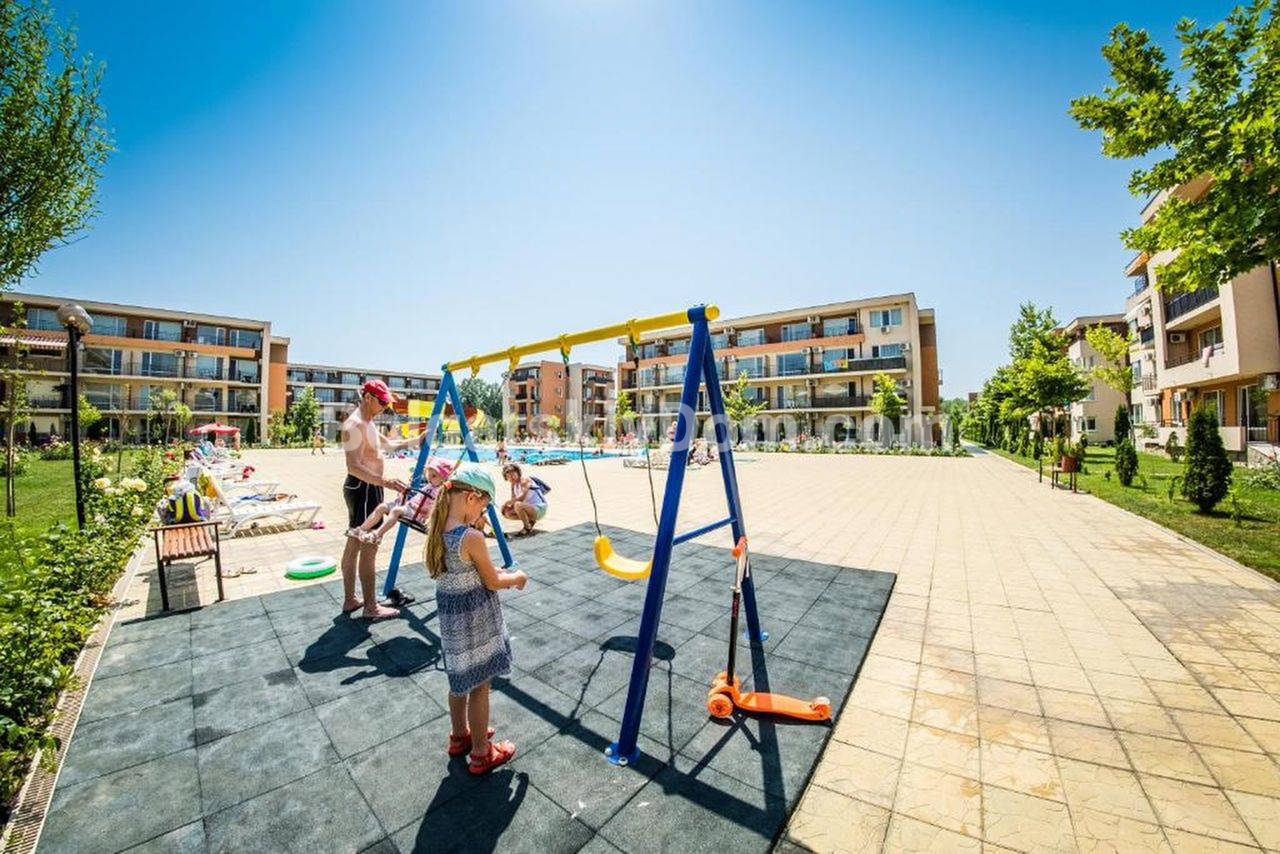 Жилой комплекс Орхид Форт Гарден входит в топ самых зелёных и обустроенных в районе. Бассейны, шезлонги, ресторан, бар, детские площадки, теннисные столы, парковка и охрана - застройщиком и управляющей службой всё предусмотрено для комфортного отдыха и жизни. Возможна круглогодичная эксплуатация. Рядом аквапарк Action, супермаркеты, кафе и до центра Солнечного берега 10 минут пешком.