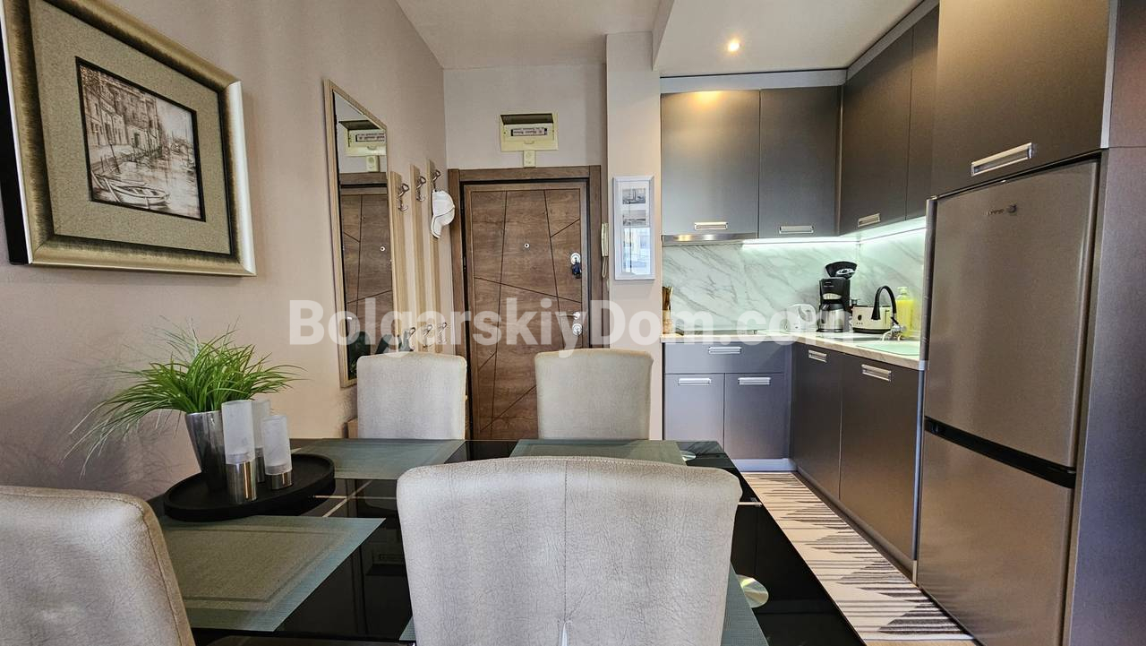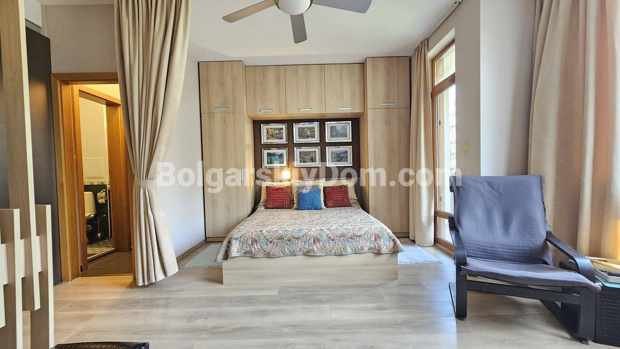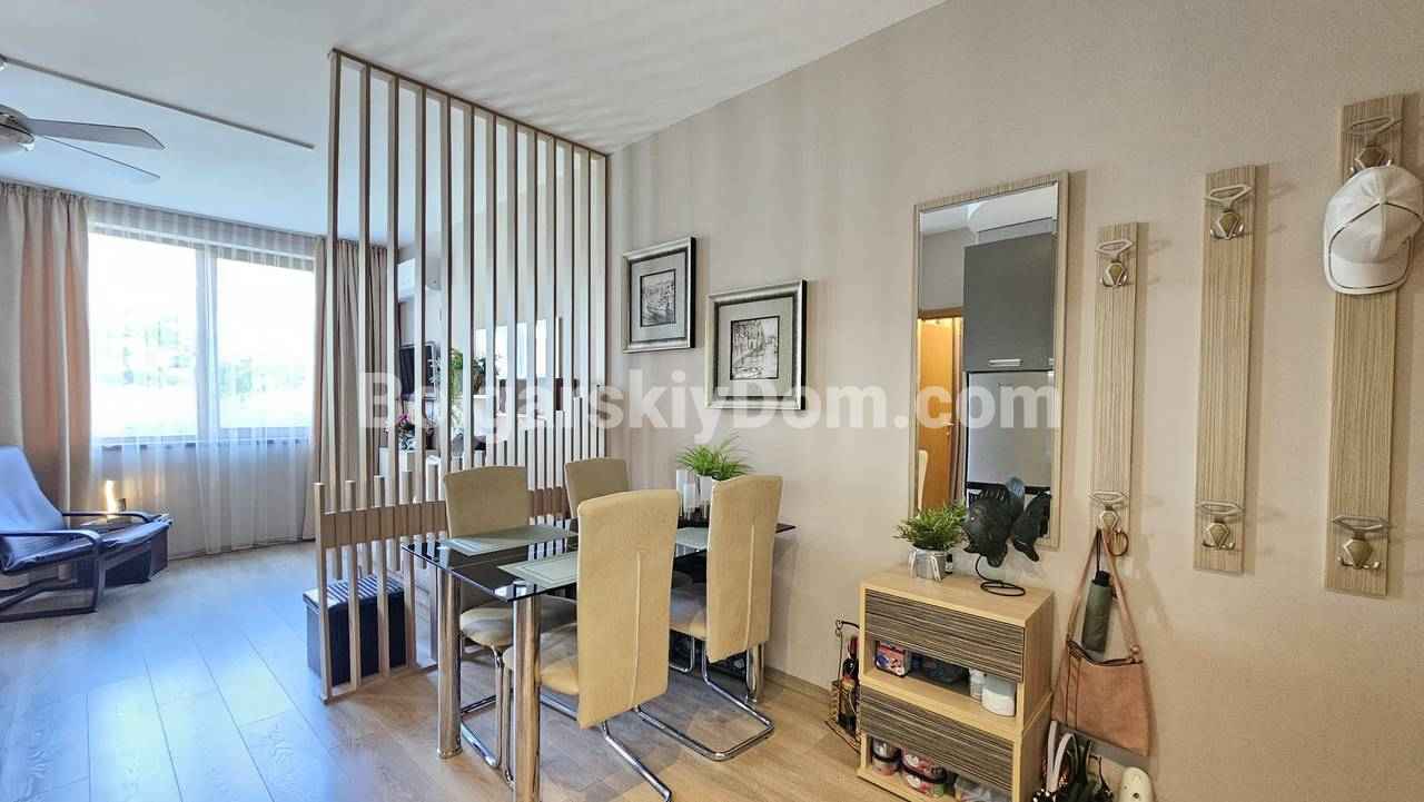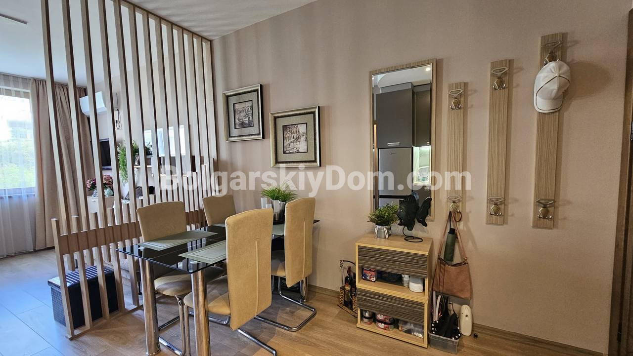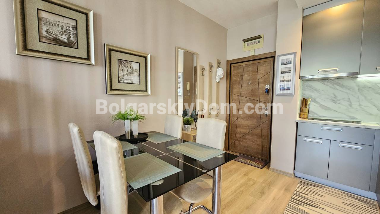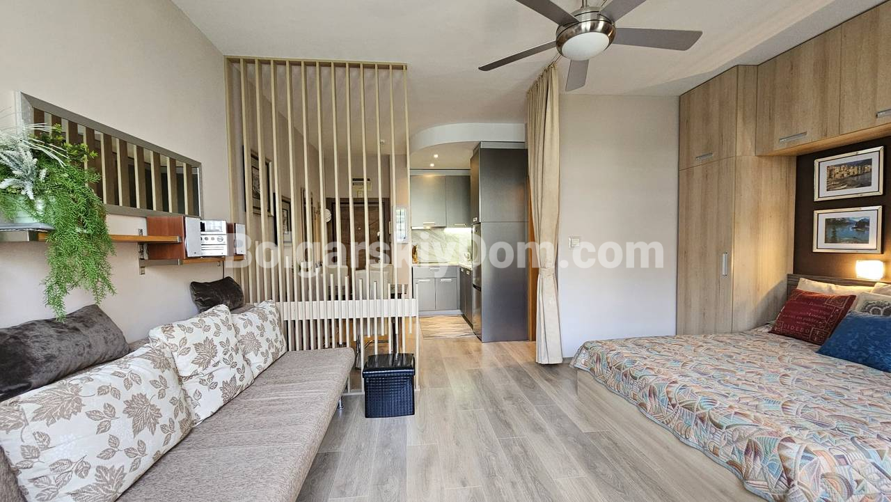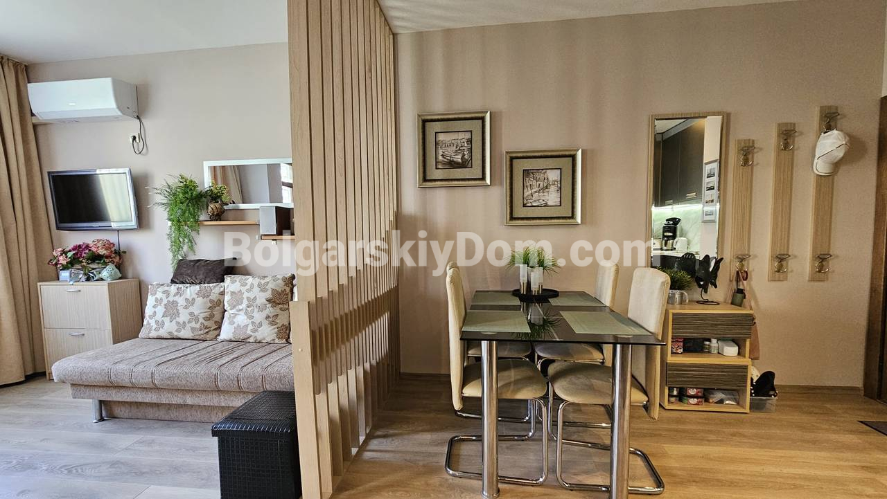 Топ-локация от Болгарского Дома и самый продаваемый формат, спешите! Уютная меблированная студия в комплексе Райский Сад, всего в 50 метрах от моря! Метраж 44,7 кв.м., 3 этаж, приятный вид на ухоженную территорию. Функциональная планировка: гостиная зона с кухней, место для сна, ванная с душем и балкон. Всё готово к проживанию или сдаче — установлен кондиционер, есть мебель и техника. Без лишних деталей и необходимости вложений, ждем вашего звонка!