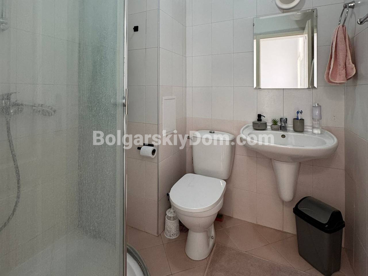 Встречайте, отличная новость от Болгарского дома - на продажу появилась двухкомнатная квартира в комплексе Флорес Парк на Солнечном Береге, и это реальный топ-вариант! Площадь 80,3 кв.м на шестом этаже: просторная зала с кухонным уголком, уютная спальня, санузел с душем и большая терраса с видом на горы, где можно отдохнуть с чашкой кофе или даже приготовить барбекю. Квартира полностью меблирована, с кондиционером, и готова к жизни или быстрой сдаче в аренду, поскольку все ее параметры говорят о высокой рентабельности. До моря всего 400 метров, коммунальное обслуживание управляющей службы 14,2 евро/кв.м в год.