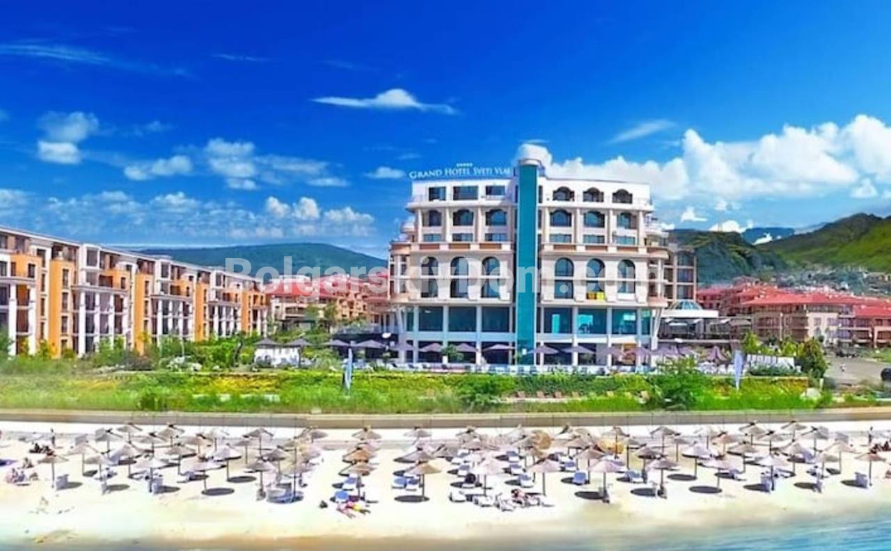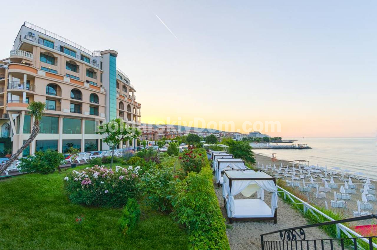 Комплекс Гранд Хотель, выполненный в современном средиземноморском стиле, расположен на первой линии всего в 30 метрах от моря в районе Юрта, Святой Влас. Жильцам и гостям доступна многоуровневая и тщательно поддерживаемая инфраструктура: собственный песчаный пляж, бассейн с детским сектором, зоны для загара с шезлонгами и зонтами, бары и рестораны, детские площадки и центр, площадка для волейбола, фитнес-зал, спа-центр с сауной и хамамом, закрытый бассейн, а также круглосуточная охрана. Важно: в таксу не входит бассейн. Комплекс подходит для круглогодичного проживания и успешной аренды. Обращайтесь для организации просмотра!