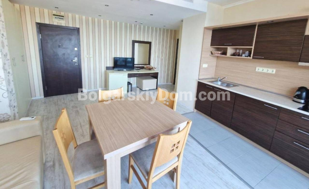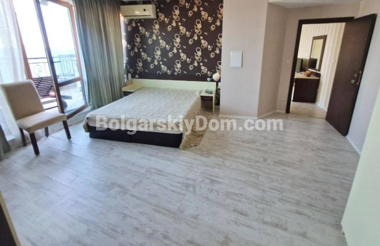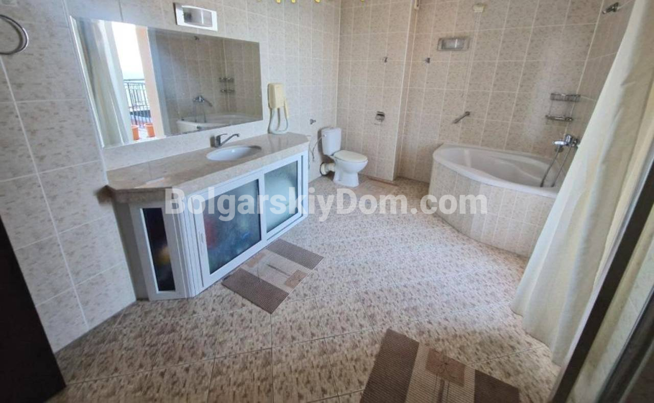 Видовая новинка в каталоге! Вашему вниманию просторная квартира с одной спальней в престижном комплексе Гранд Хотель в живописном Святом Власе, открыта к продаже от Болгарского дома! Апартамент площадью 111 кв.м расположен на шестом этаже шестиэтажного здания с лифтом и включает коридор, гостиную, спальню, современный санузел и террасу с видом на море. Объект с АКТ 16 полностью готов к заселению, покрывая полностью все потребности в комфортном и современном жилье. Такса поддержки составляет 40 евро/кв.м в год.