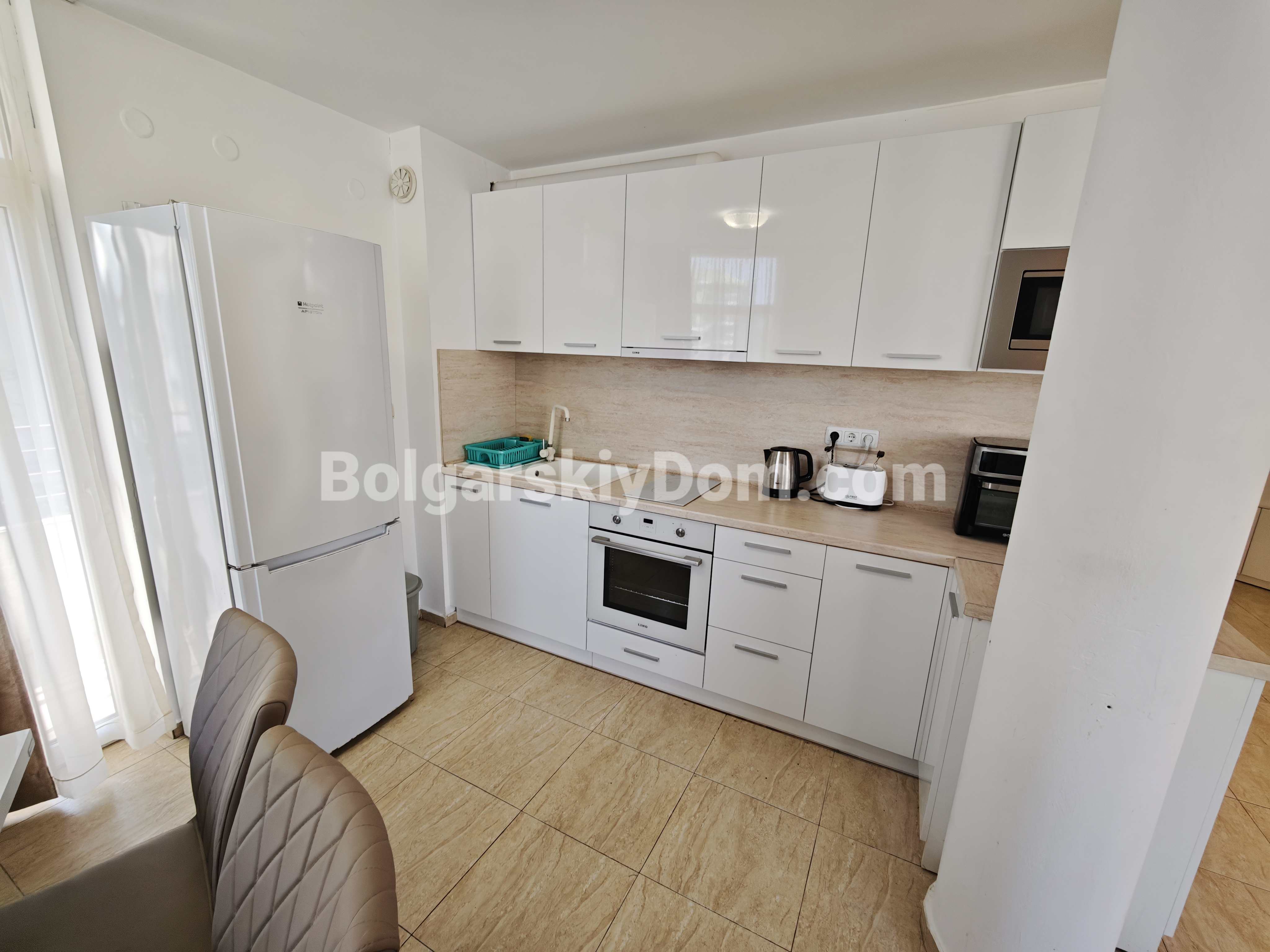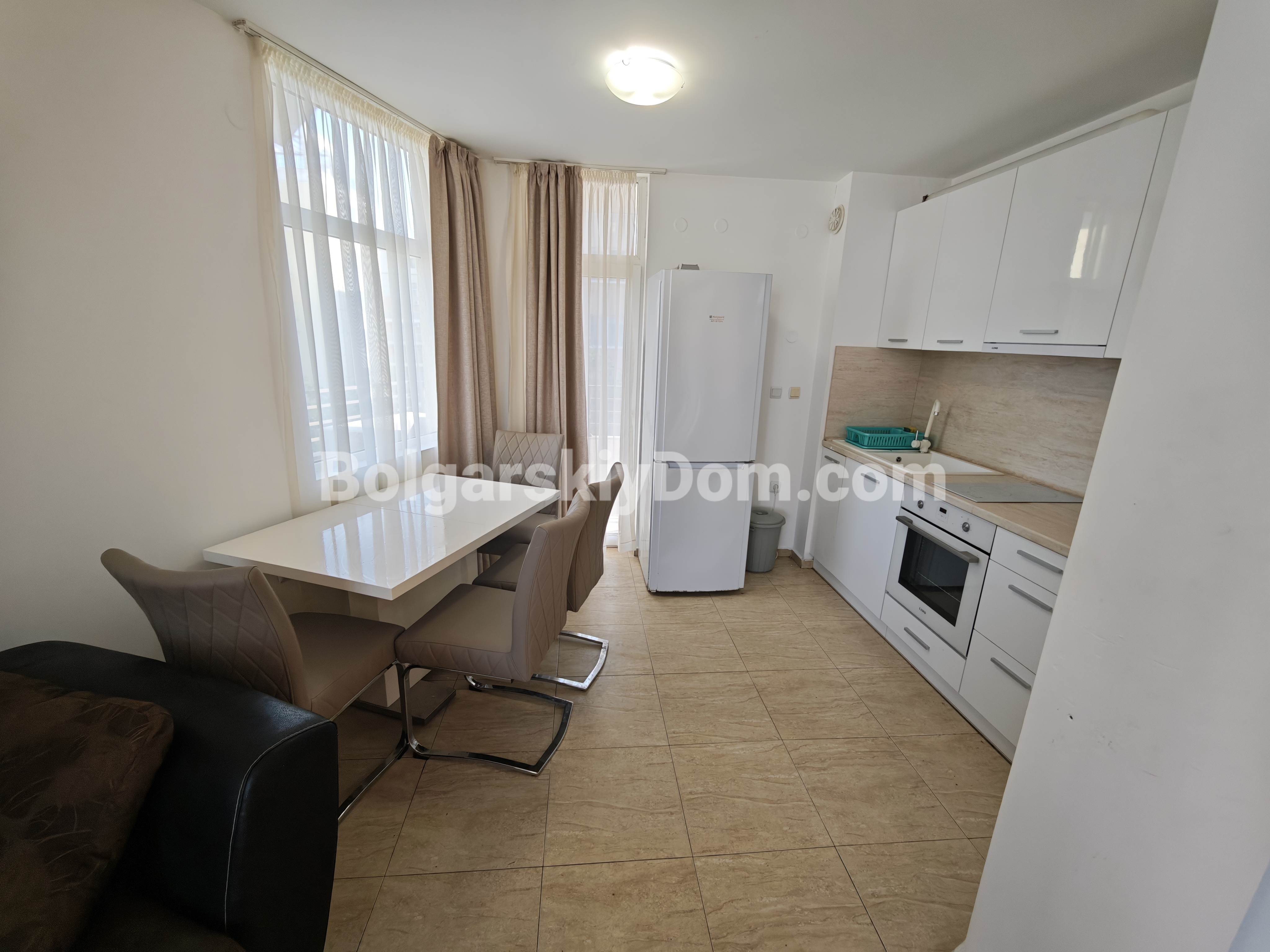 Новинка! Представляем вашему вниманию просторную трехкомнатную квартиру в комплексе Сан Вилладж на Солнечном Береге, практически в самом эпицентре курортной жизни! Расположена она на третьем этаже шестиэтажного дома, занимает 101 кв.м и точно порадует новых собственников свежим ремонтом, стильной мебелью и всей необходимой техникой. С балкона открывается живописный вид на бассейн, где можно наслаждаться утренним кофе или вечерним отдыхом. Квартира полностью готова к заселению, а такса обслуживания всего 8 евро в год делает ее еще привлекательнее, согласитесь. До моря отсюда всего 650 метров.