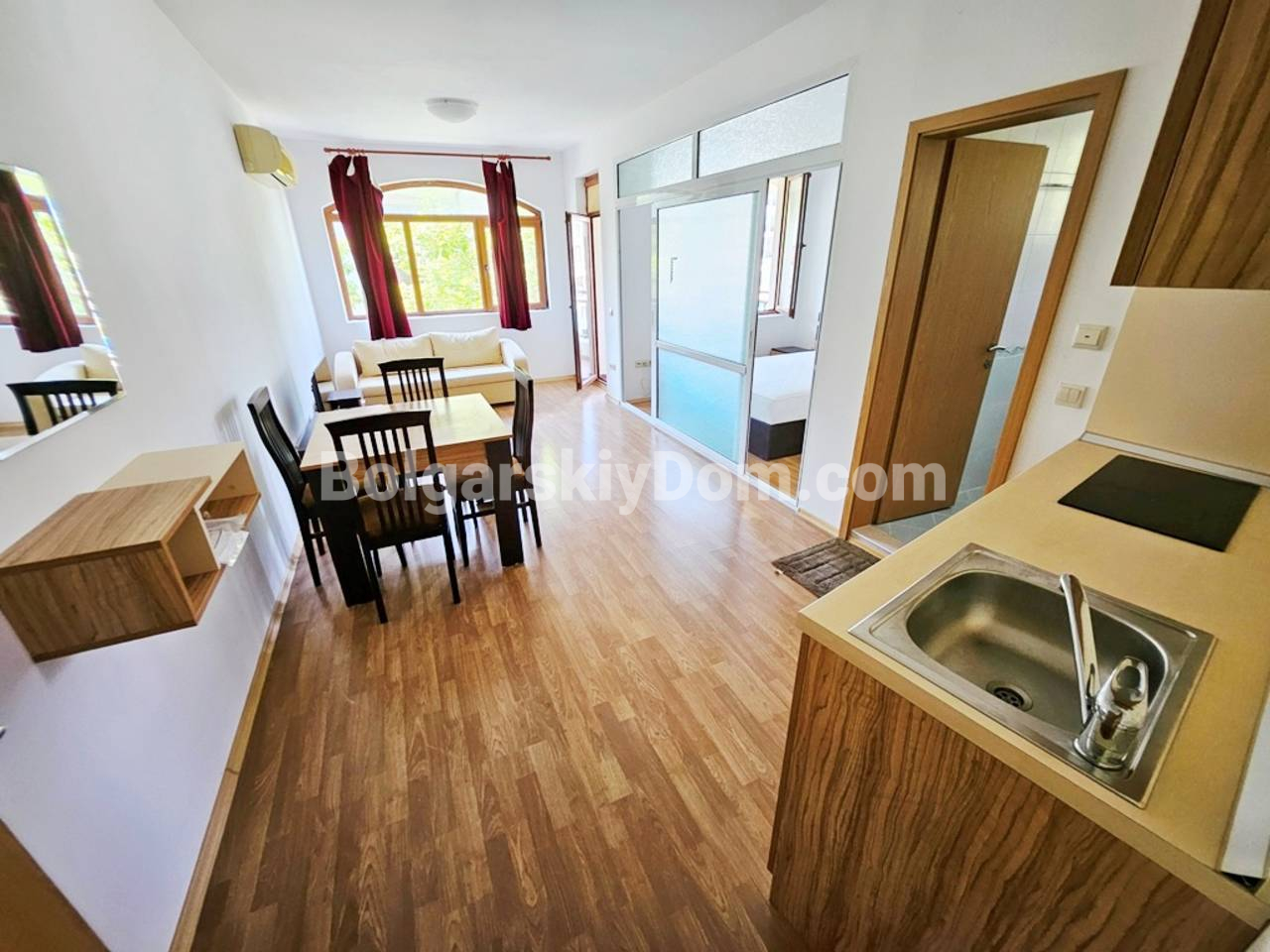 Новый объект, стоящий вашего внимания! Каталог Болгарского дома пополнила уютная двухкомнатная квартира с новым ремонтом в комплексе Винярдс - настоящий оазис для ценителей спокойной эко-атмосферы в укромной части курортной Болгарии! Апартамент квадратурой 45 кв.м расположен на втором этаже, планировка предполагает просторную гостиную с кухонной зоной, спальню, санузел и большую террасу с мебелью, идеальную для отдыха и созерцания бескрайних просторов зеленых равнин. Квартира полностью меблирована и готова к заселению. Такса обслуживания составляет 600 евро в год.