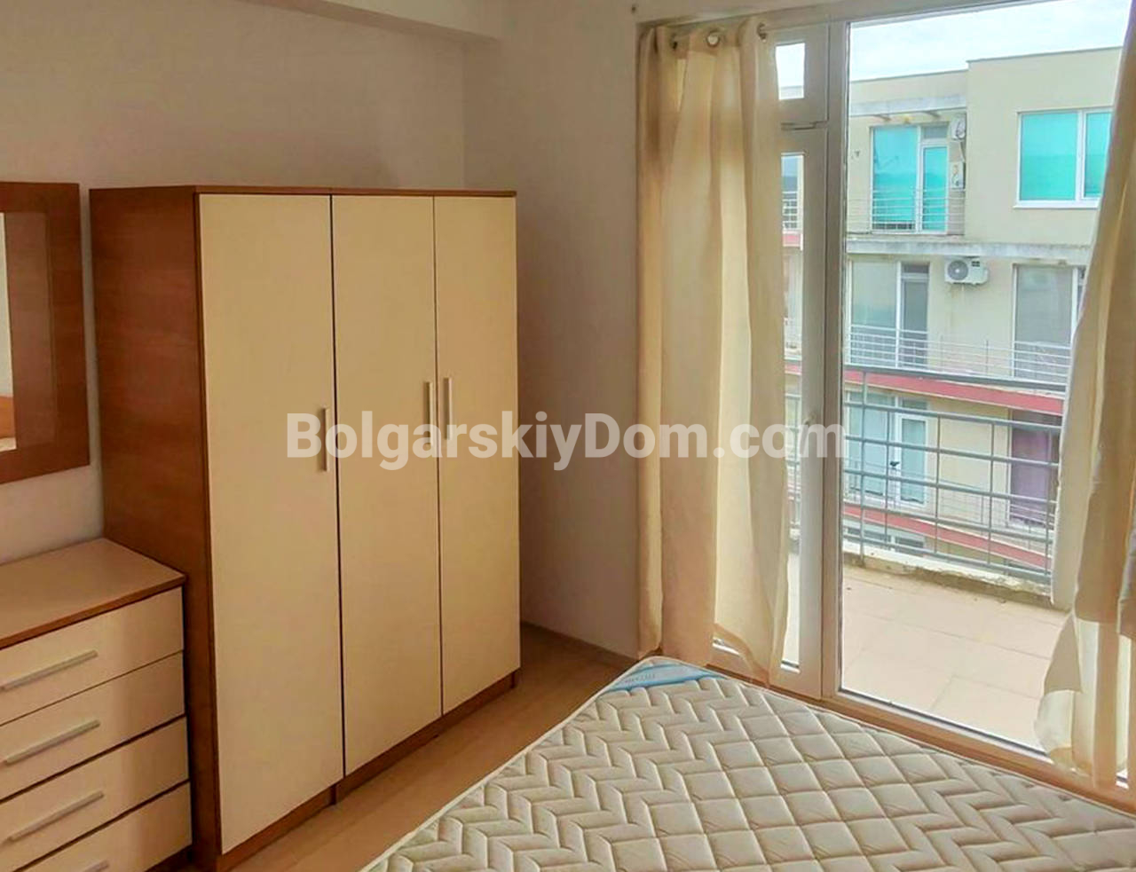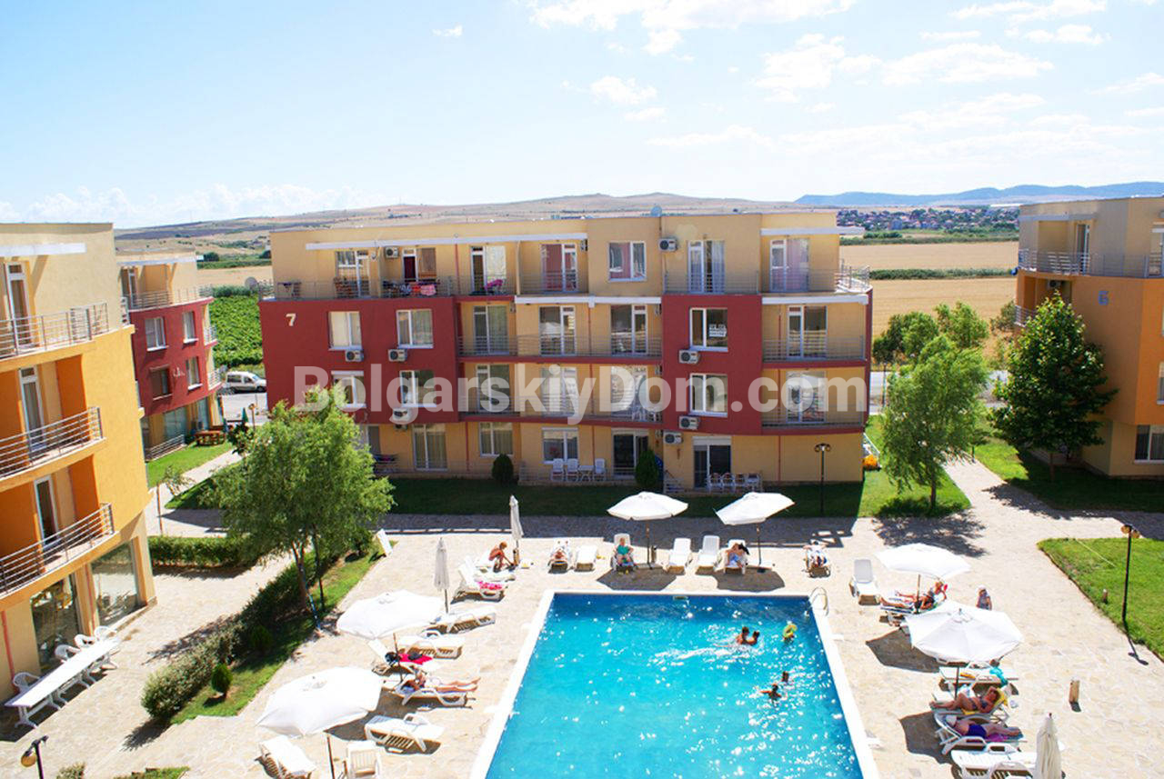 Квартира расположена в комплексе Санни Дей 5 на Солнечном берегу. В ЖК закрытая территория с круглогодичной охраной и парковкой. Комплекс аккуратный, с зеленой зоной и бассейном. Расстояние преодолевается за несколько минут, рядом автобусная остановка. Такса всего 580 евро в год. Отличный бюджетный вариант в обжитом жилищном комплексе с возможностью круглогодичного проживания.