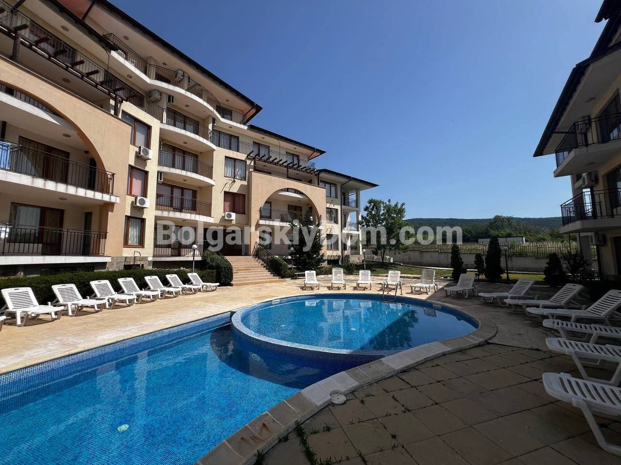 Болгарский Дом уже проводит показы, открыта новая продажа! Ультравыгодная студия для тех, кто хочет всё обустроить под себя! Просторный метраж в 42 кв.м., открытая планировка, полноценный санузел и балкон с видом на бассейн - отличная основа для создания уютного жилья по вашему вкусу в уютном и зеленом поселке Кошарица. Квартира без мебели, но с проведенными коммуникациями, можно сразу начинать обустройство, поскольку базовый чистовой ремонт выполнен. С балкона красивейший вид на горы!