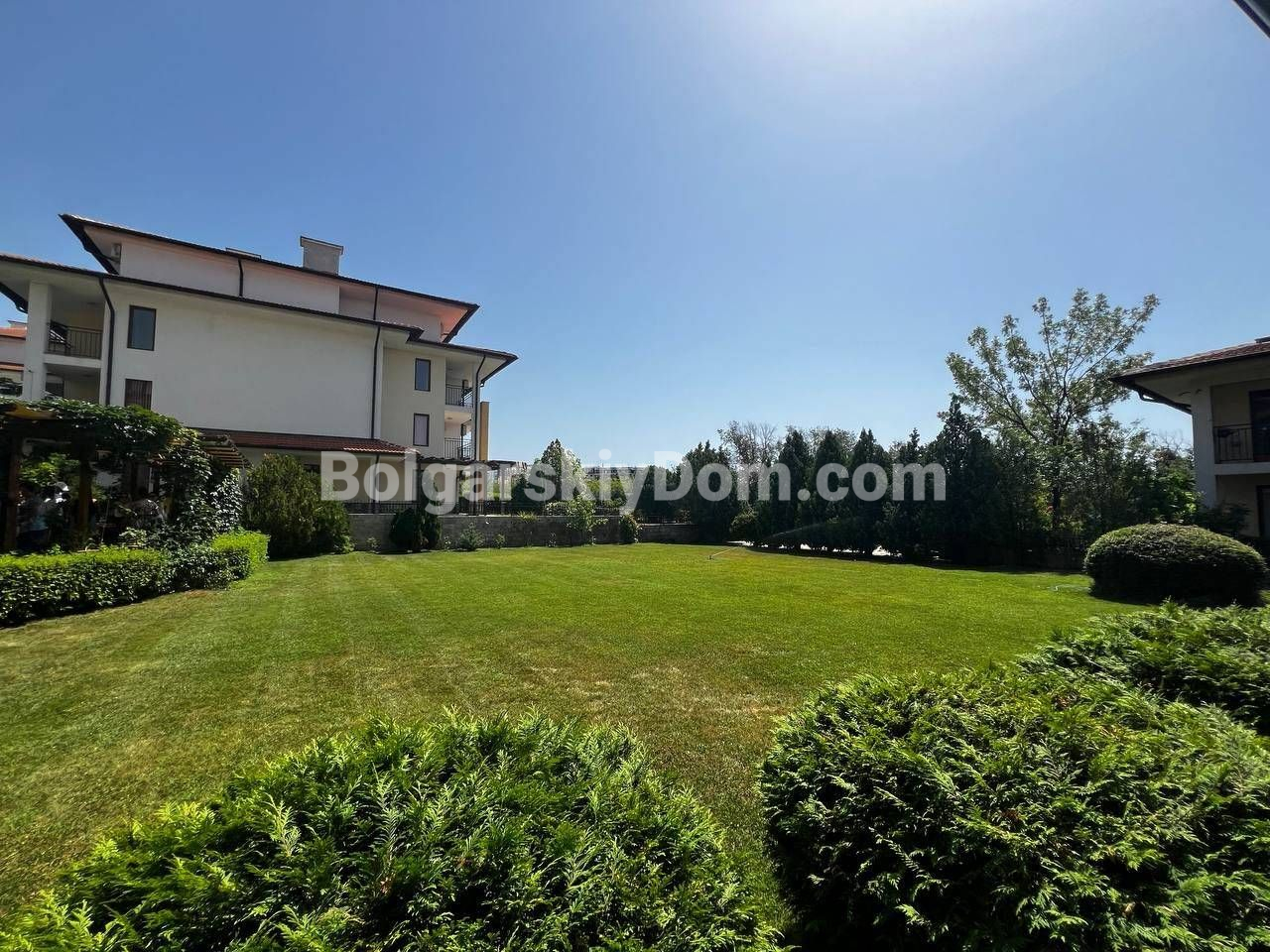 Комплекс Арките находится в тихой, приятной зоне Кошарицы, всего в 2 км от пляжей Солнечного берега. На территории ухоженный двор, открытый бассейн, зона отдыха и удобный паркинг. Здание малоквартирное, всего три этажа, объект расположен на среднем, втором. Такса 600 евро в год. Отличный вариант как для сезонного отдыха, так и для рентных инвестиций.