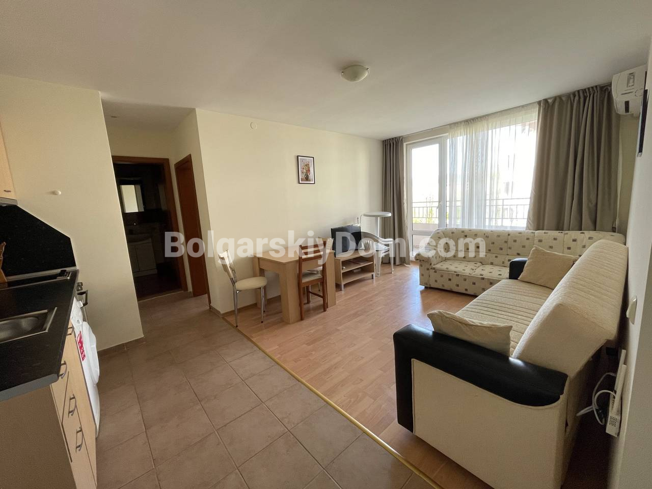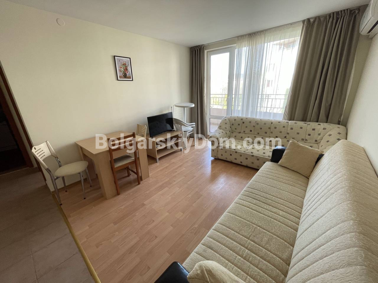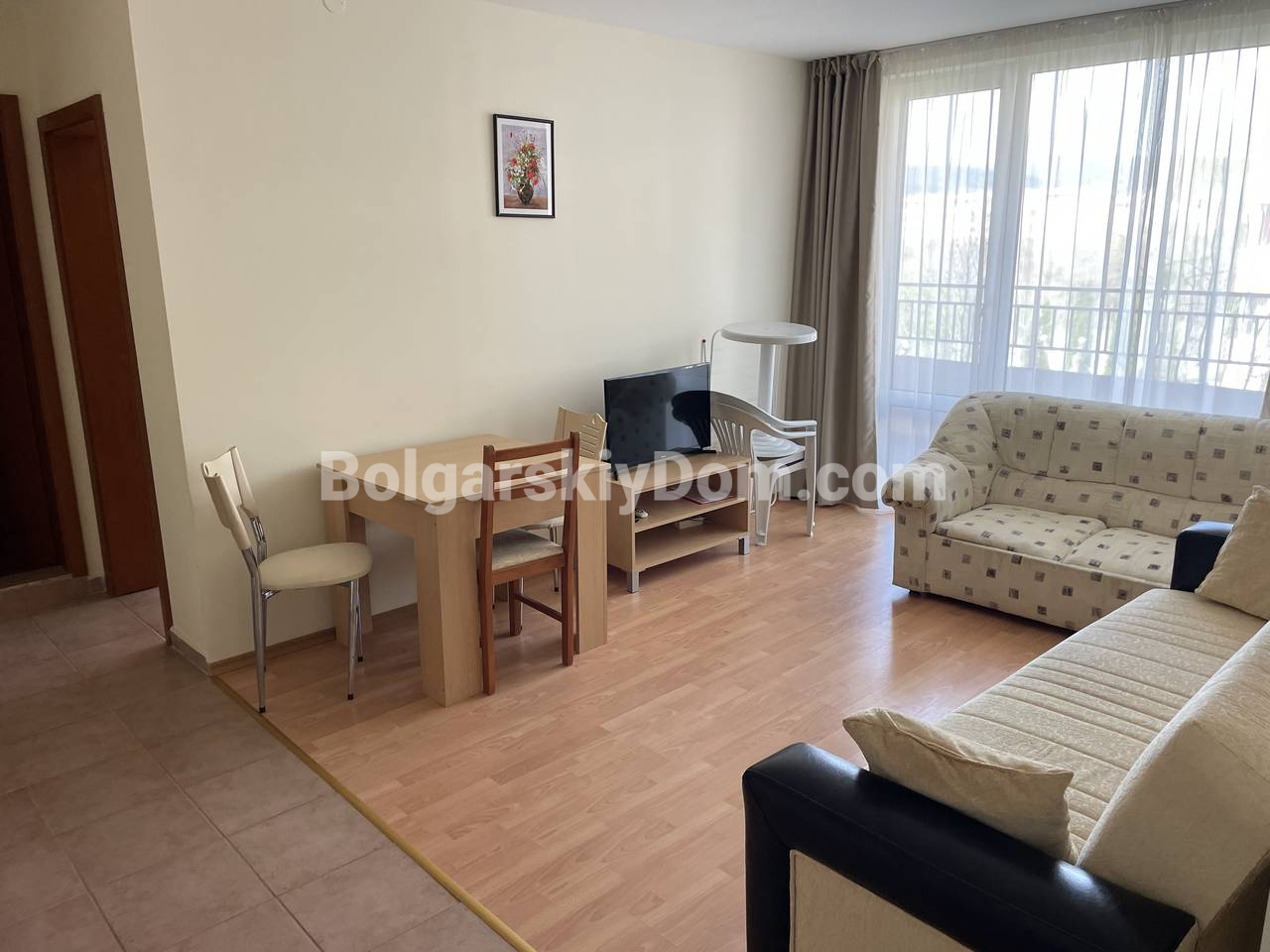 Для ПМЖ, длительного отдыха и рентной инвестиции, встречайте новое предложение: двухкомнатная квартира с мебелью в комплексе Несебр Форт - удачный вариант для любых целей. Площадь 64 кв.м., второй этаж из четырех. Просторная зала с интегрированной кухонной зоной, отдельная спальня, ванная комната с душем, уютная терраса составляют планировку. В квартире есть вся необходимая мебель, бытовая техника, кондиционер, проведены вода и электричество, хорошее жилое состояние. Планировка удобна как для пары, так и для небольшой семьи.