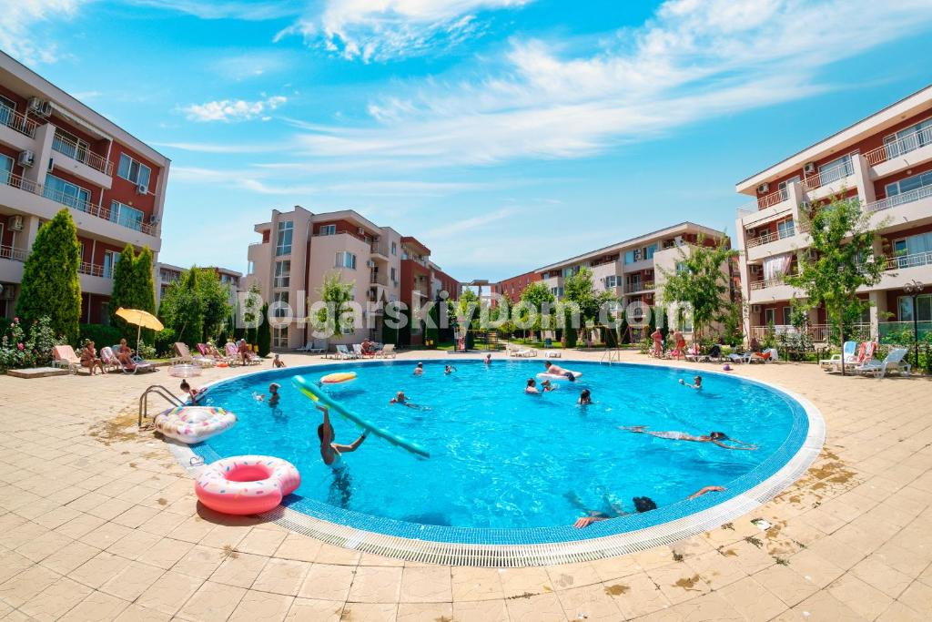 Одно из основных преимуществ ЖК Несебр Форт Клуб в том, что он находится рядом с аквапарком Action и всего в 900 метрах от пляжа, до которого можно дойти пешком буквально за 10 минут. Территория закрытая, с охраной и отличной инфраструктурой: несколько бассейнов, ресторан, кафе, магазины, теннисный корт, спортивные и детские площадки. Годовая такса обслуживания равна 13 евро/кв.м. Район подходит для круглогодичного проживания, здесь будет удобно и вам, и вашей семье: выверенные курортные удобства и типовые городские.