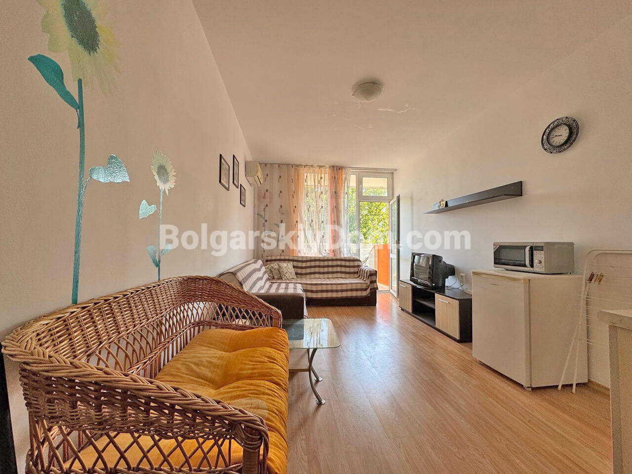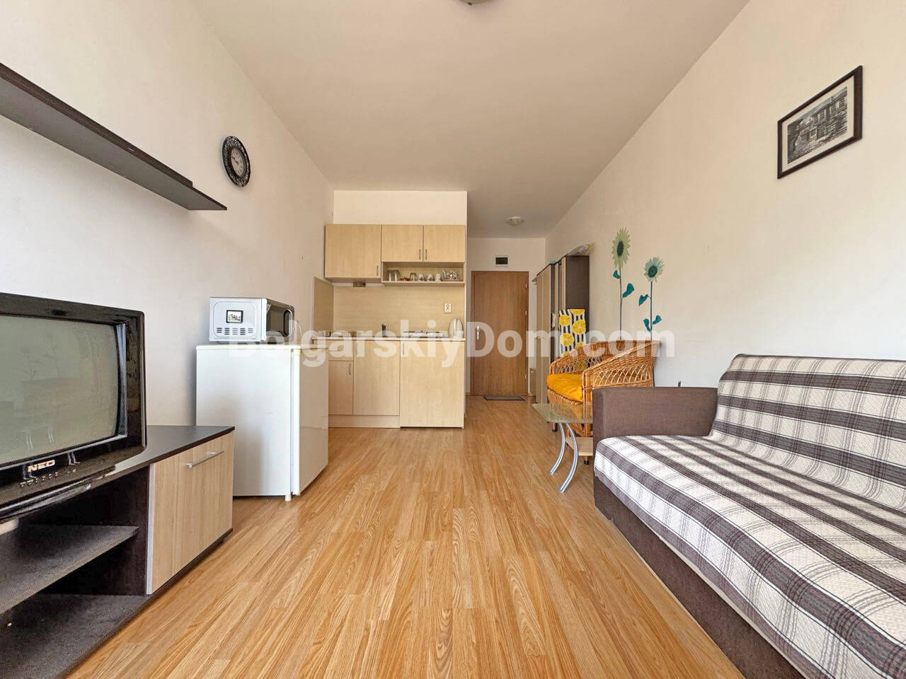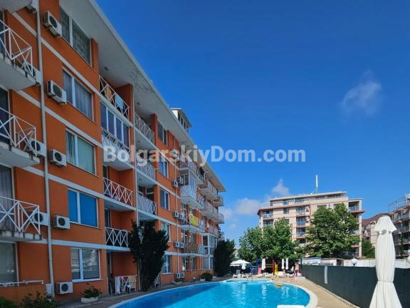 Комплекс расположен в тихой части Солнечного берега, в 800 метрах от моря. Благодаря уровню обслуживания, географии и спектру удобств, этот ЖК пользуется стабильным спросом у туристов и инвесторов. Здесь есть бассейн, охрана, зеленые зоны, детская площадка и парковка. Такса поддержки всего 12 евро/кв.м., что делает объект особенно привлекательным для запланированного бюджета.
