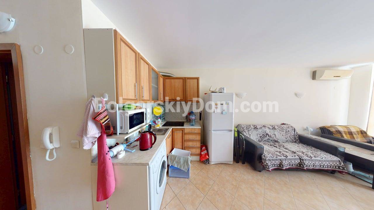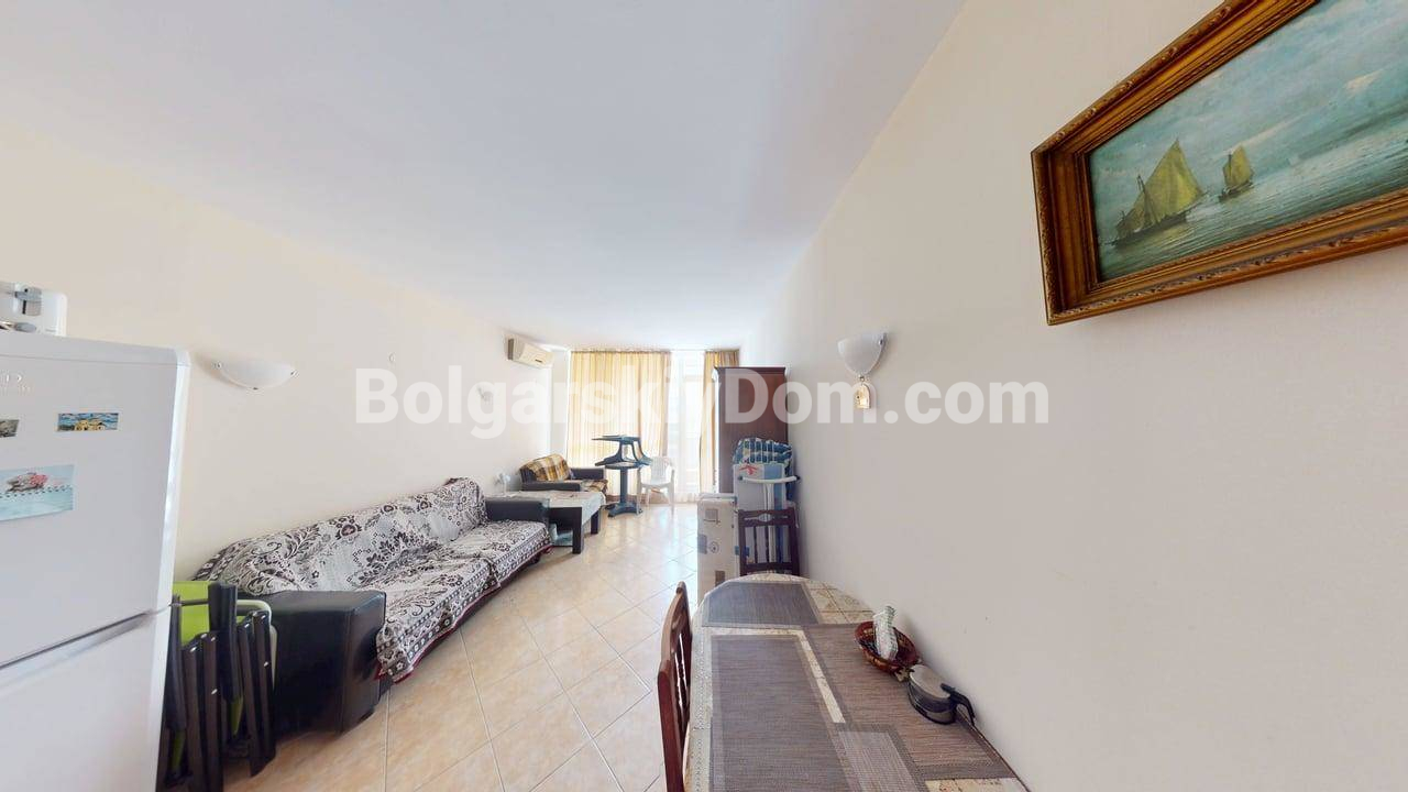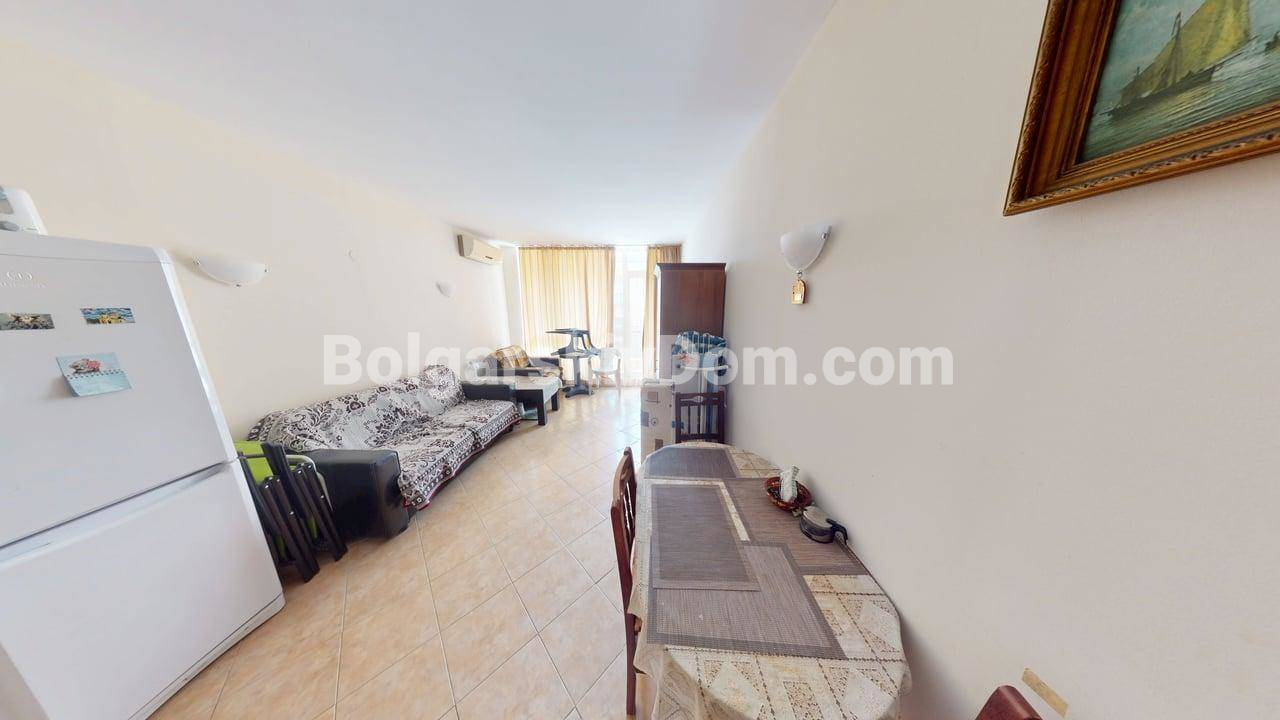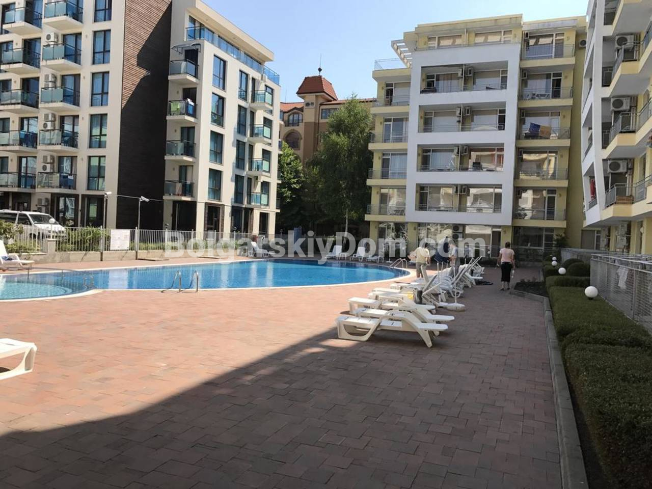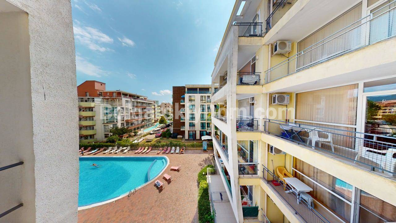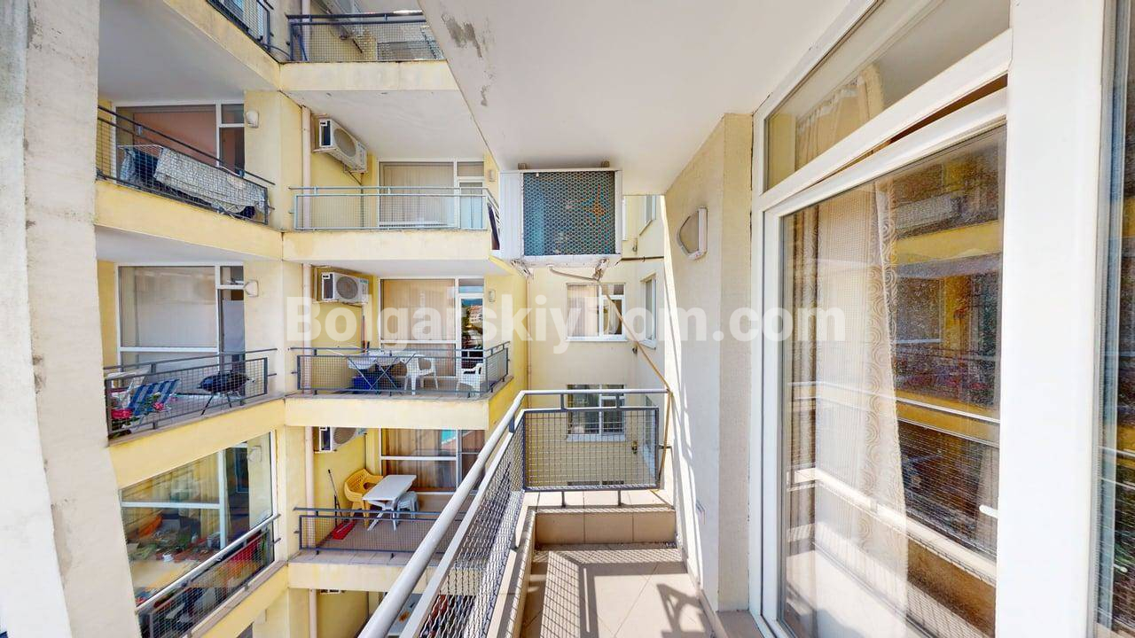 Супердоступный прайс! Обращение к тем, кто ценит возможность жить у моря без лишних затрат: остановите свой выбор на этой просторной двухкомнатной квартире квадратурой 74 кв.м. в комплексе Сансет Бич 2. ЖК работает весь год и расположен в самом центре Солнечного берега, всего в 600 м от пляжа. Находится на четвертом этаже из шести. Внутри — мебель, техника, оборудованная кухня и санузел, центральные коммуникации. Вы получаете практически готовый вариант к переезду или аренде без дополнительных вложений. Любите центр, но устали от шума и высоких такс? Здесь стоимость обслуживания всего 9 € за кв.м. в год, и это одна из самых низких в центральной зоне.