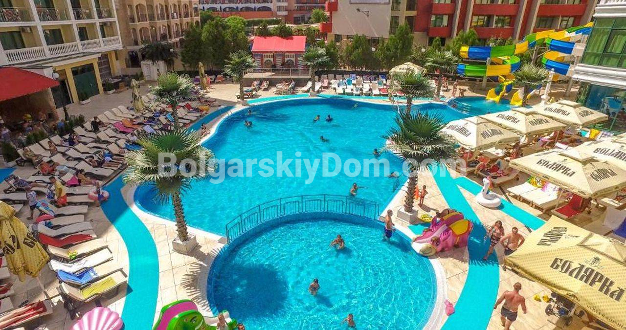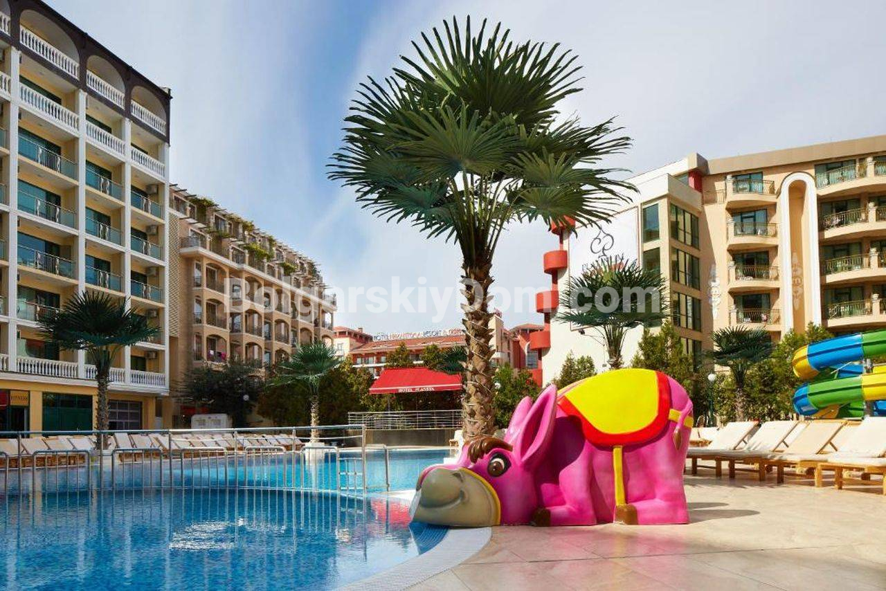 Комплекс Планета это отельный формат с полным набором удобств, но при этом с очень низкой таксой обслуживания - всего 5 евро за кв.м в год. До моря 250 метров, вокруг рестораны, магазины, прогулочные зоны. Отличный вариант, если хотите быть в центре курортной жизни, но при этом иметь свой тихий и уютный уголок.
