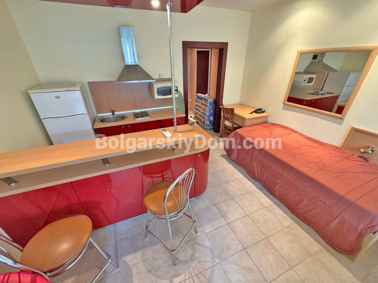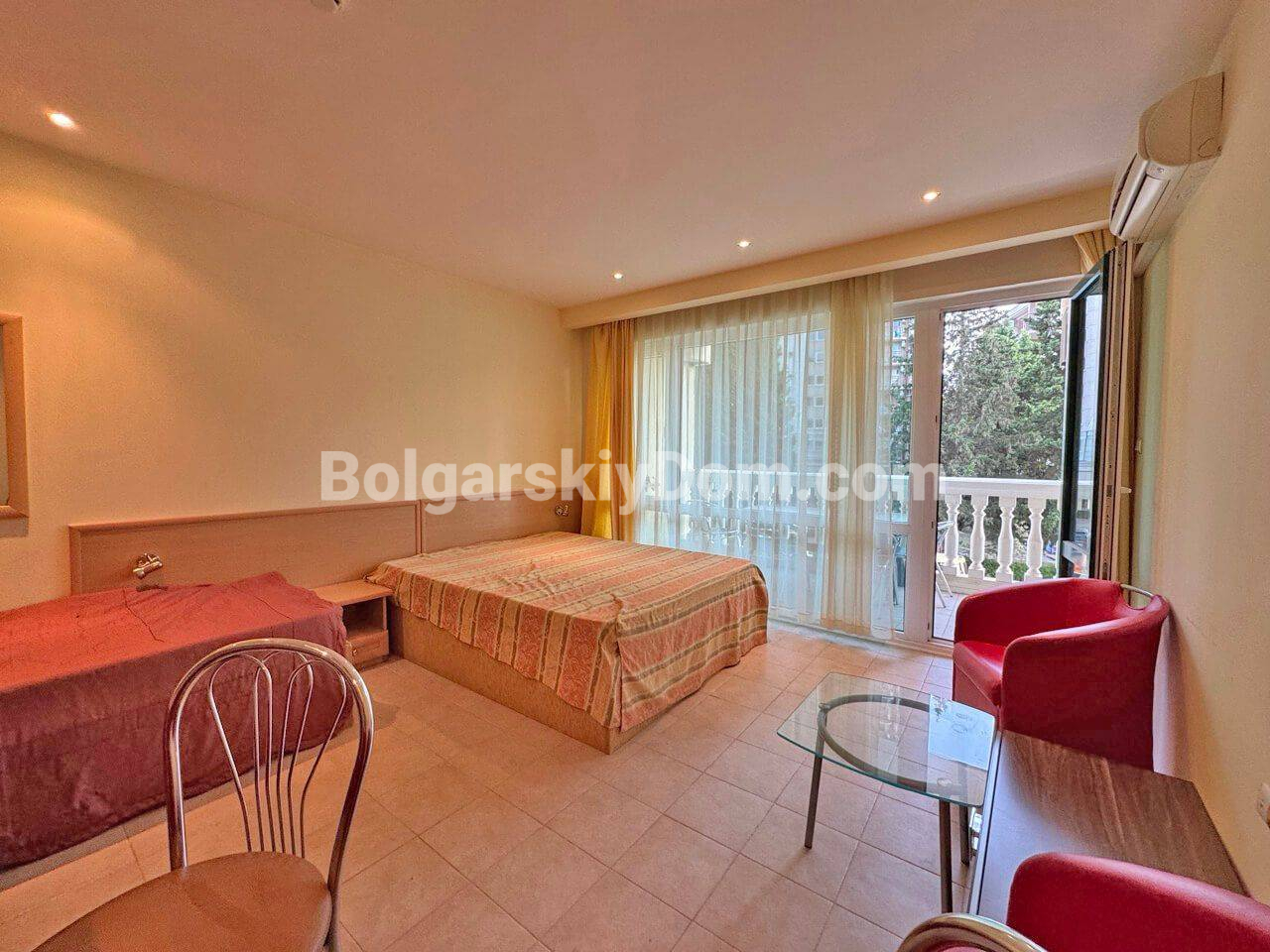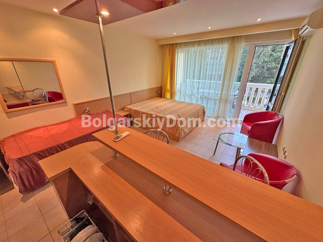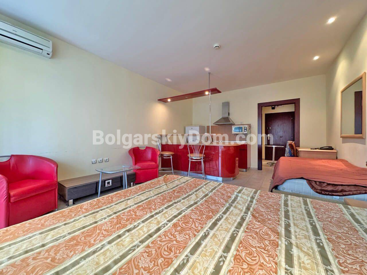 Представьте: вы выходите из дома, и всего через пару минут уже на пляже. Эта студия в комплексе Планета как раз из таких типов недвижимости, и компания Болгарский Дом с радостью представляет ее как нашу новинку сезона! 51 кв.м уюта и продуманного пространства: кухонная зона, удобная двуспальная кровать, ванна в санузле и просторная лоджия закрытого типа, где можно пить утренний кофе и наблюдать за жизнью курорта. Комната грамотно зонирована, поэтому здесь легко создать ощущение отдельной спальни и гостиной.